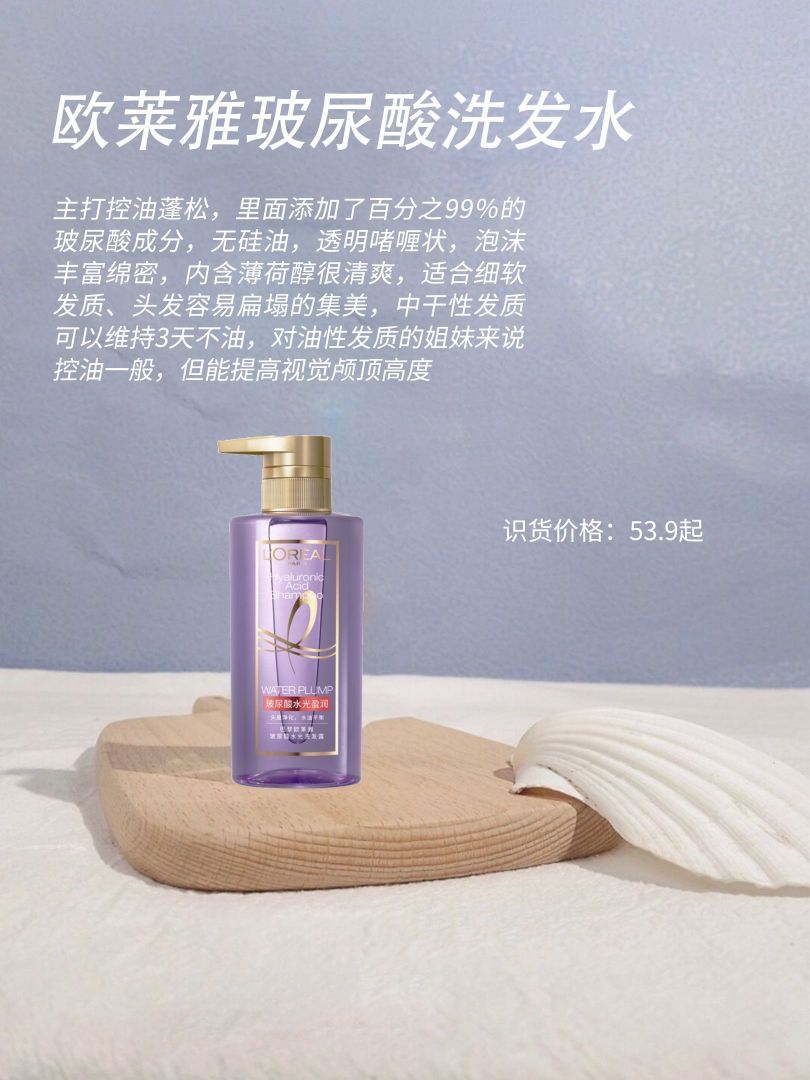 集美们想拥有一头飘逸不油腻的秀发的都看过来哦,这次的洗发水绝对会成为你们的心头爱! 1⃣欧莱雅 紫安瓶玻尿酸水光洗发水 识货价格:53.9起 使用体验:主打控油蓬松,里面添加了百分之99%的玻尿酸成分,无硅油,透明啫喱状,泡沫丰富绵密,内含薄荷醇很清爽,适合细软发质、头发容易扁塌的集美,中干性发质可以维持3天不油,对油性发质的姐妹来说控油一般,但能提高视觉颅顶高度hh 2⃣Selsun 无硅油...