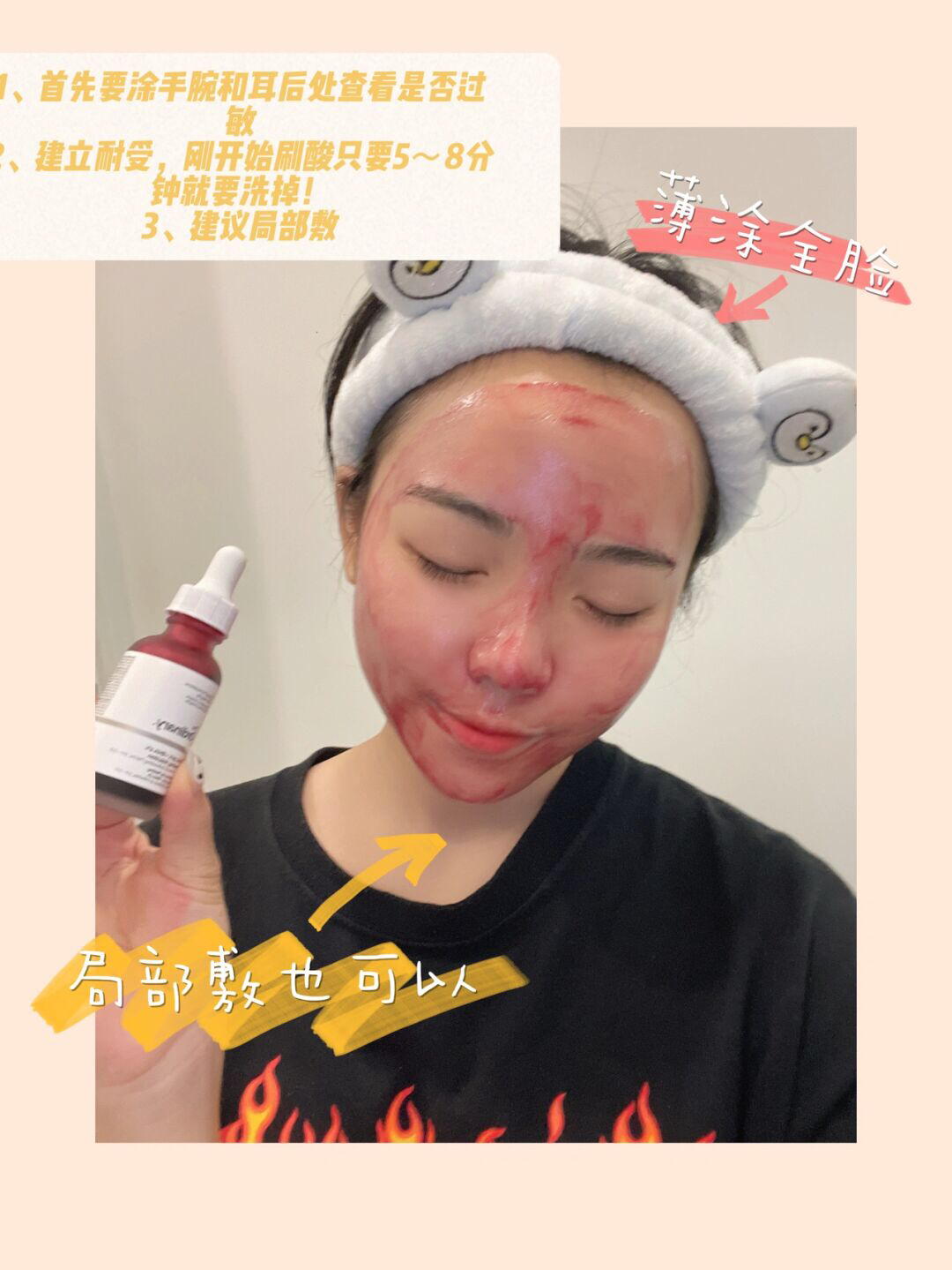 告别烂脸👋告别黑头闭口痘印👌🏻 👉🏻最近the ordinary30%果酸风刮的很大,很多妹子都开始用刷酸产品了。最近熬夜➕吃了很多热气的东西,导致我额头、脸颊、下巴、嘴周都长了超多痘痘,加上长期🈶️黑头闭口的困扰,一直用不到好用的护肤品。根据网上很多美妆博主的知道,和小红书的推荐,就买了the ordinary家的30%果酸。 - 根据网上的教学 以下步骤👇 第1⃣️步:查看自己是否过敏,在手腕...