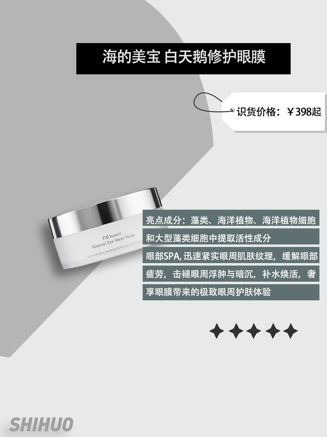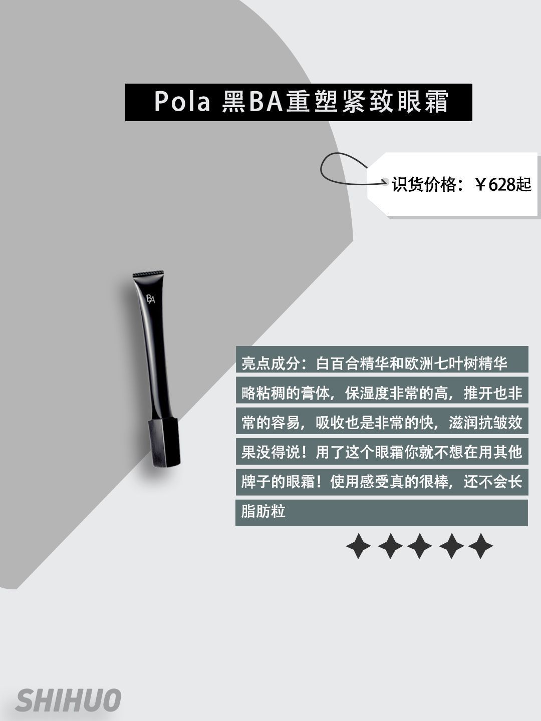 眼周护肤分享|让眼周肌肤柔嫩如18岁 年轻的朋友们用眼霜越早效果越好,不要等眼部肌肤各种问题显现出来才开始用眼霜啊!个人觉得眼霜更多的作用是预防和防护。一款好的眼霜也是作用巨大,缓解衰老 1.Pola 黑BA重塑紧致眼霜 识货价格:¥628起 亮点成分:白百合精华和欧洲七叶树精华 保湿度非常的高,推开也非常的容易,吸收也是非常的快,滋润抗皱效果没得说!用了这个眼霜你就不想在用其他牌子的眼霜!使用感...