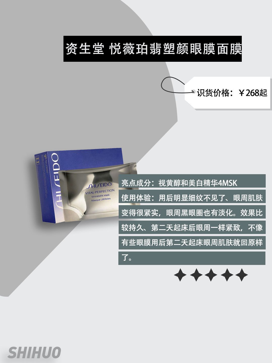 本篇笔记关联了Shiseido/资生堂 悦薇珀翡塑颜眼膜面膜 水润提亮、韩束 金刚侠眼膜贴 改善黑眼圈眼袋 活效 提拉紧致 10片、Pola 黑BA重塑紧致眼霜 正装等商品,为用户提供真实的使用体验和购买参考。