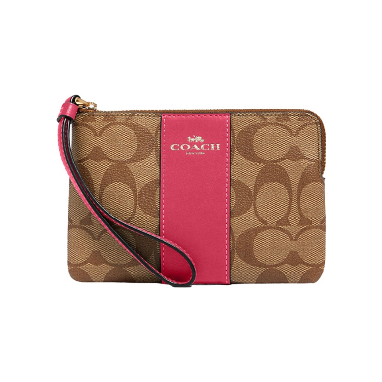 本篇笔记关联了Coach Corner Zip 16 小号 品牌徽标帆布配皮短款老花PVC角拉链开合手拿零钱腕包麻将包钱包 玫粉拼棕 等商品,为用户提供真实的使用体验和购买参考。