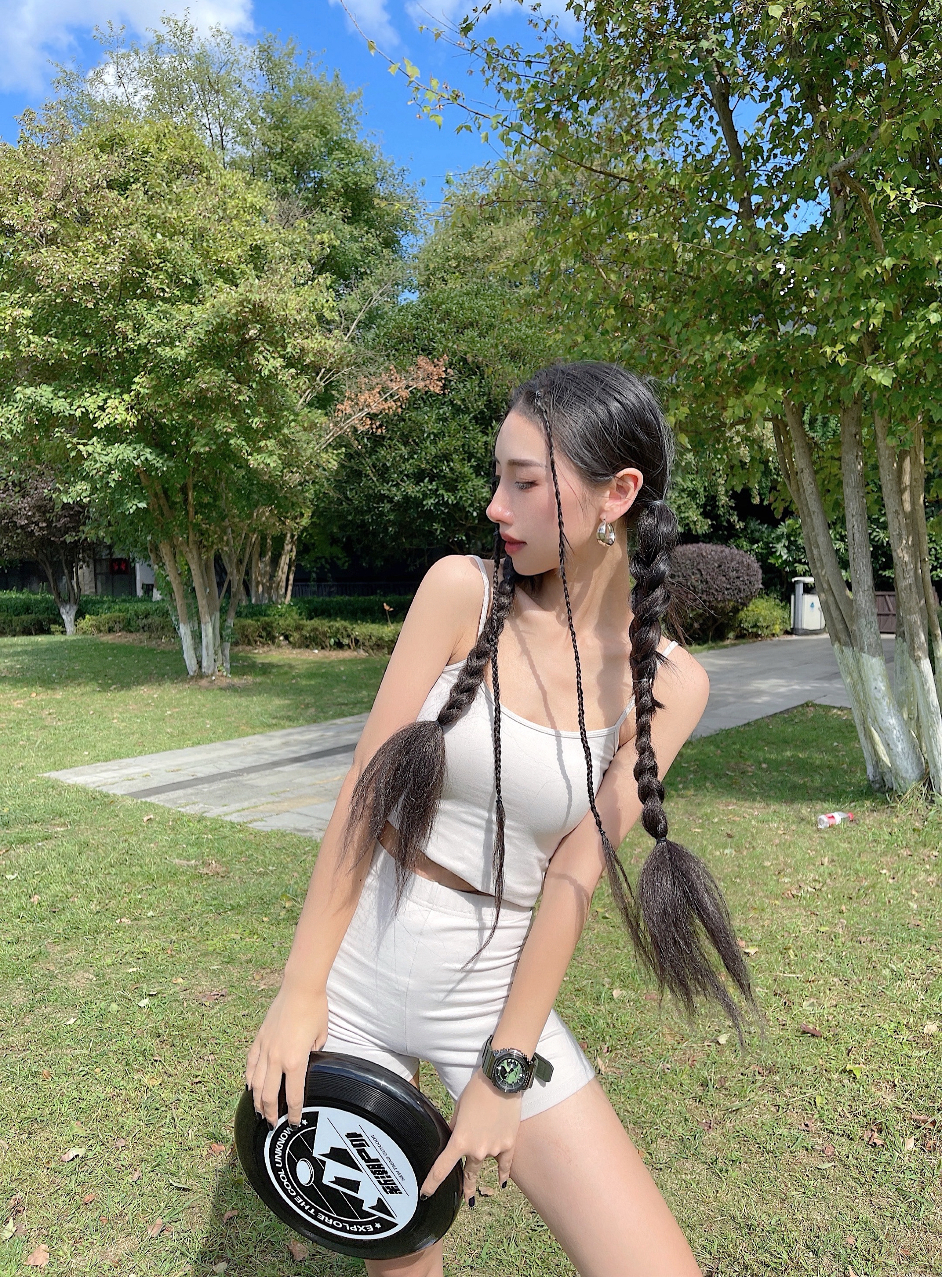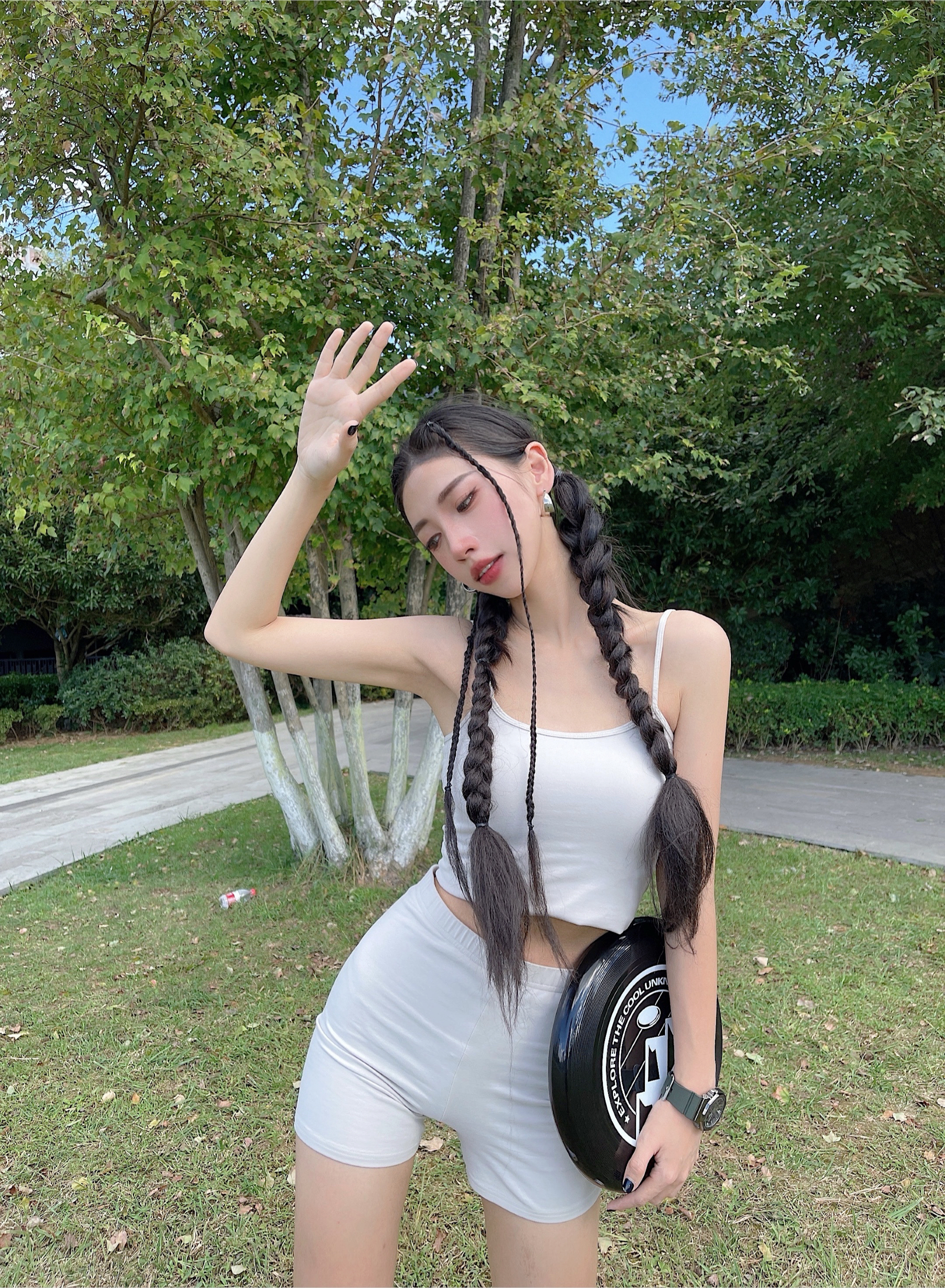 今天很认真的扎了头发 羡慕那些“发包头”发量多的姐妹 这套是延伸之前🎾女孩夏日outfit 👕变成吊带套装 也是ig博主里经常出现的变式了 假如你细心的会发现下半身没有变化哦 堆堆袜➕yeezy厚底拖鞋🥥又纯又🌶️ AND我可能是少数黄黑皮女孩里 脸白身体黑的人了 所以我一般选粉底色号会选择比实际肤色暗一度的色号 脖子也不能马虎 皮肤颜色不一定非要追求时下流行 适合自己才是最好的