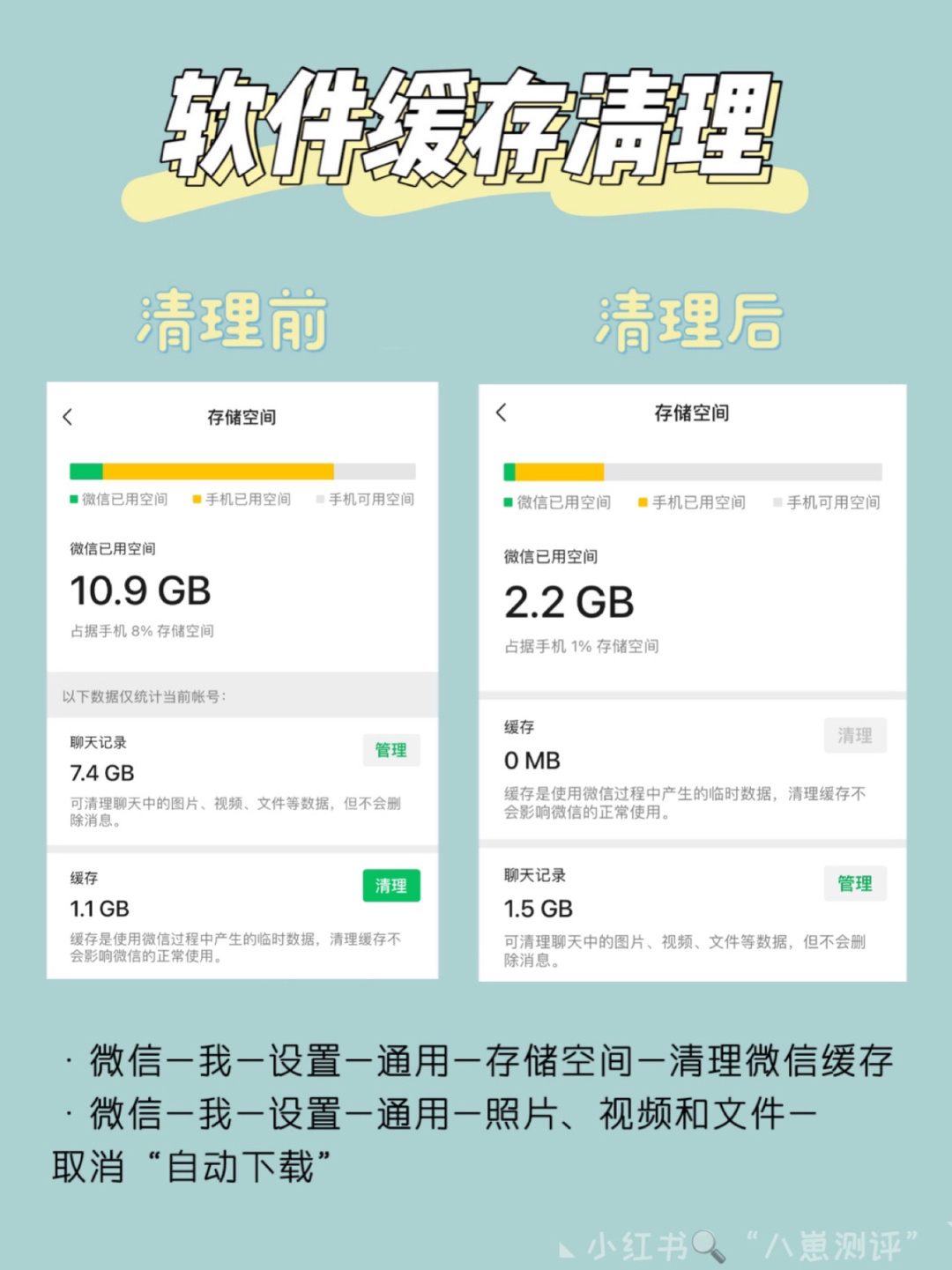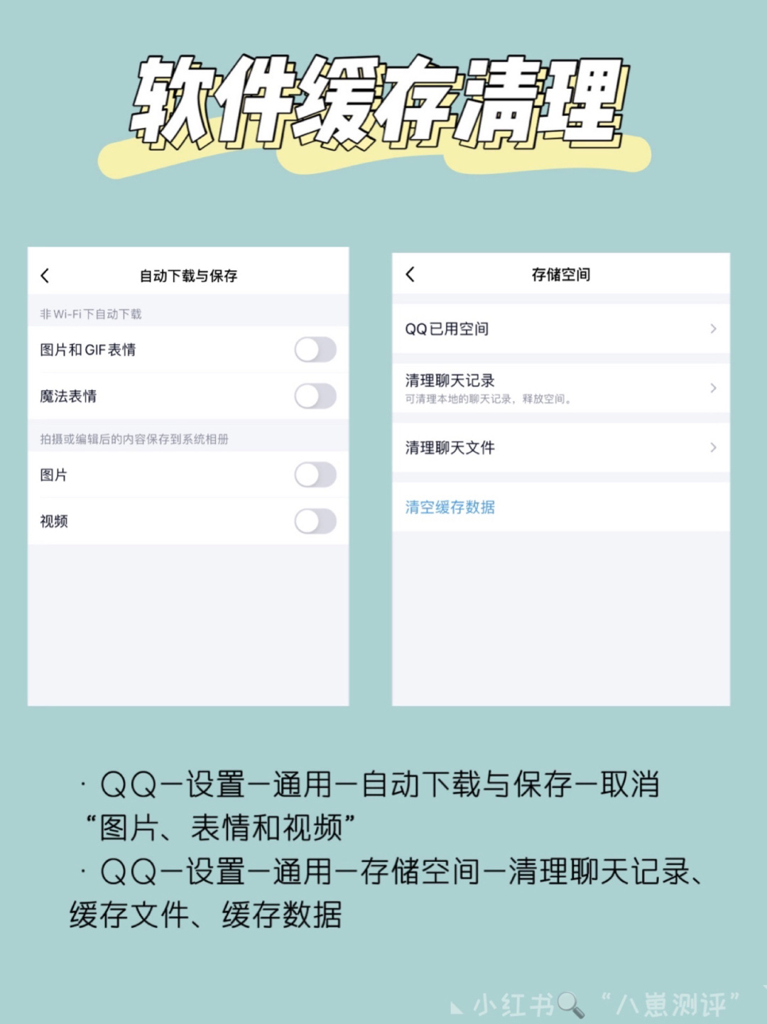 苹果手机用久了因为内存而卡顿,有些人不知道怎么清理甚至去扩容,看完这篇笔记再也不用担心手机内存不够用了✌🏻 - ✅软件缓存清理 1️⃣微信内存清理 1、微信-我-设置-通用-存储空间-清理微信缓存 2、微信-我-设置-通用-照片、视频和文件-取消“自动下载” 2️⃣QQ内存清理 1、QQ-设置-通用-自动下载与保存-取消“图片、表情和视频” 2、QQ-设置-通用-存储空间-清理聊天记录、缓存文件、...