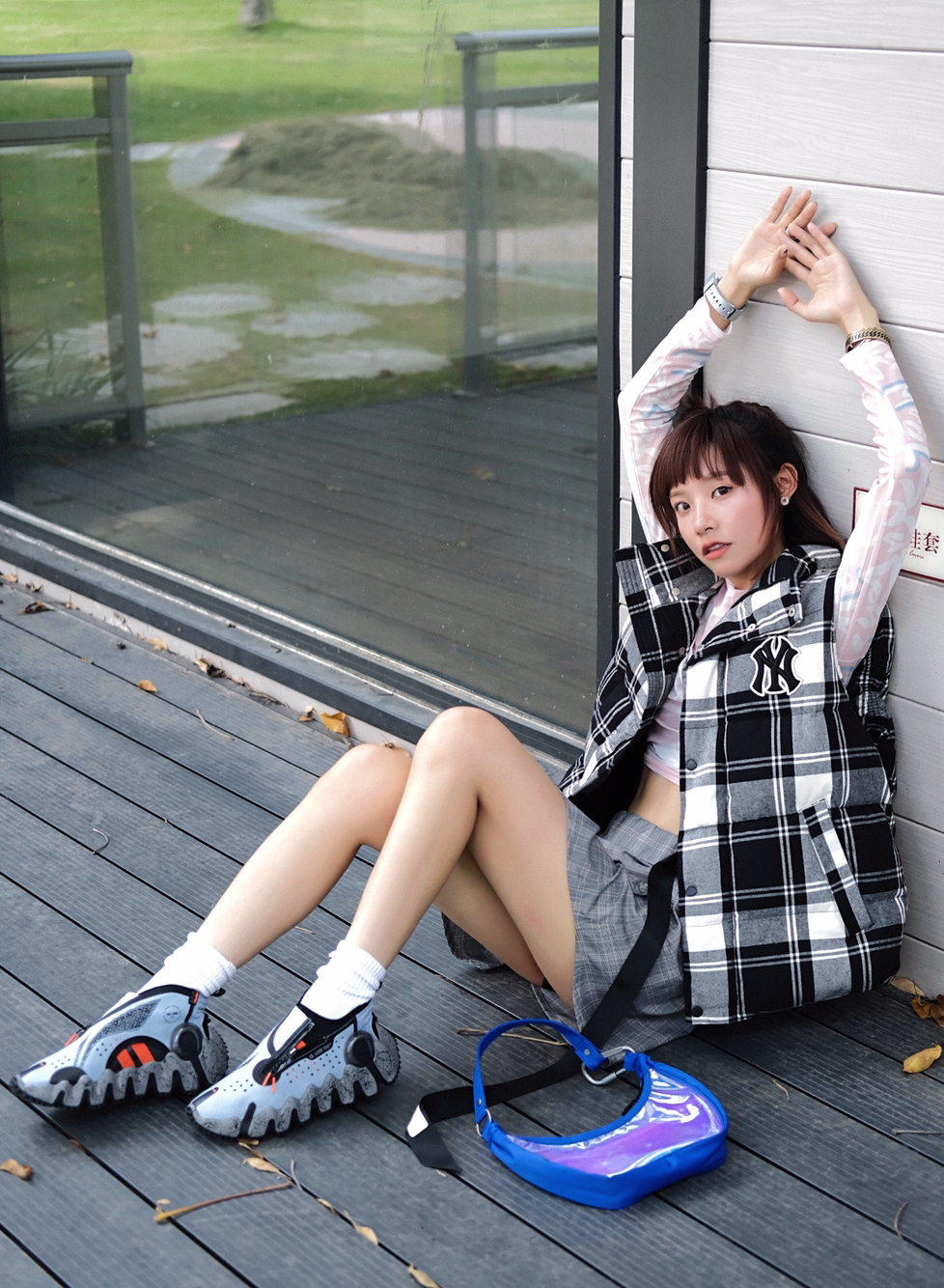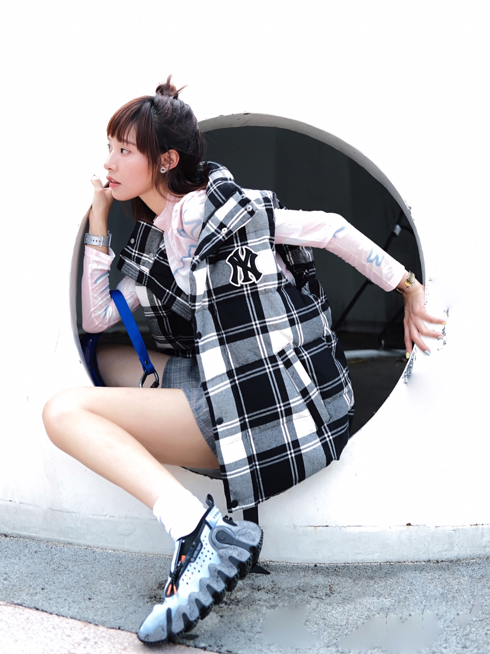 换了新指甲 今天想用粉白蓝来搭日常look 对穿搭保持可爱 😌😌 也要对生活保持可爱 现在的天气蛮适合穿透气的皮肤衣 会很称肤色😝 格子马甲呼应浅色格子的短裙 选了这双蓝色的伍行2乾 有趣的大底。鞋码我觉得偏小半码哦 以及运动属性的马甲 可以让我看起来奇奇怪怪 又可爱😌🛼 马甲:#MLB 皮肤衣:#Magn Lens 裙子:#ROARINGWILD 包:#COMBACK 鞋子:...