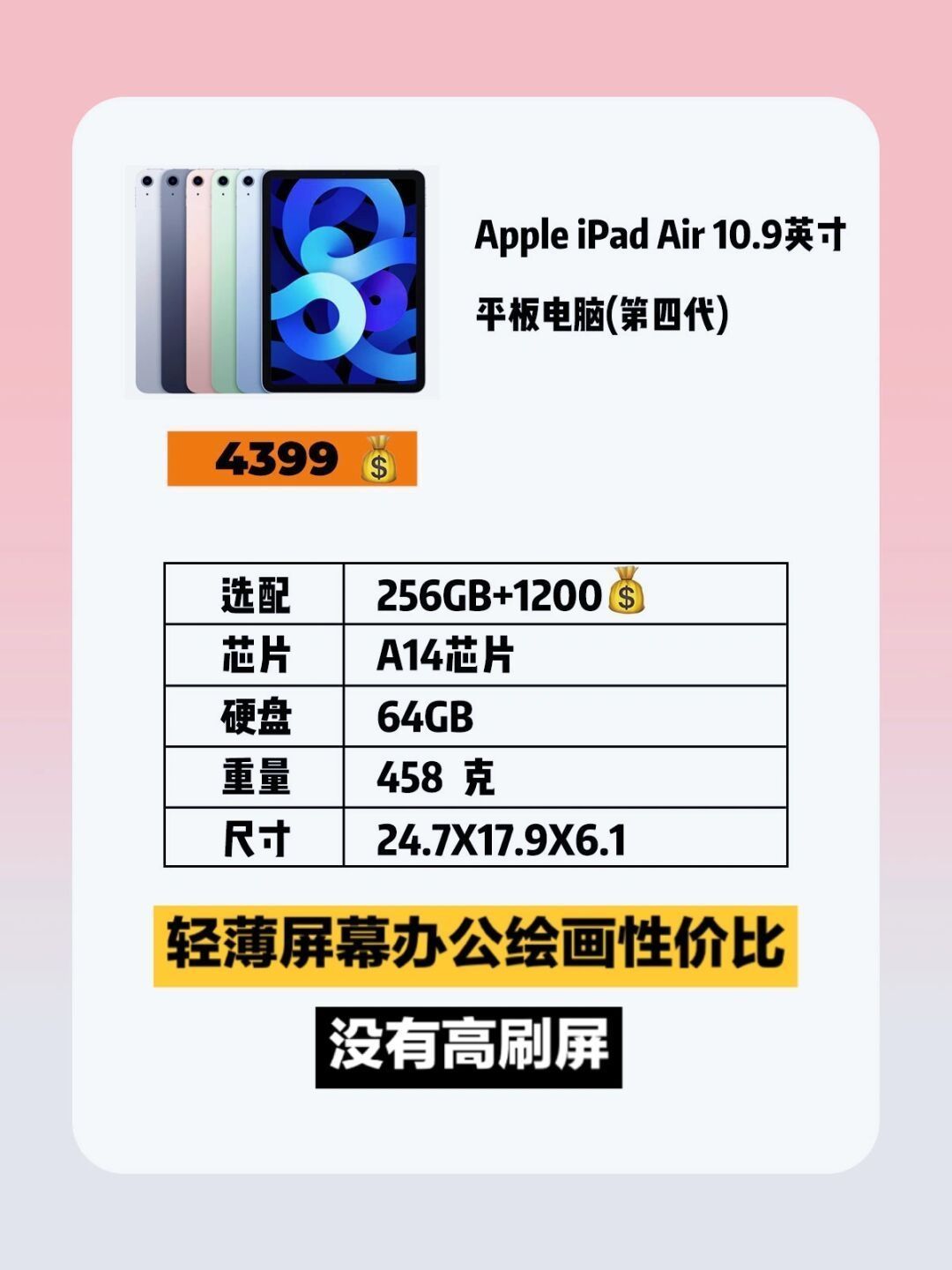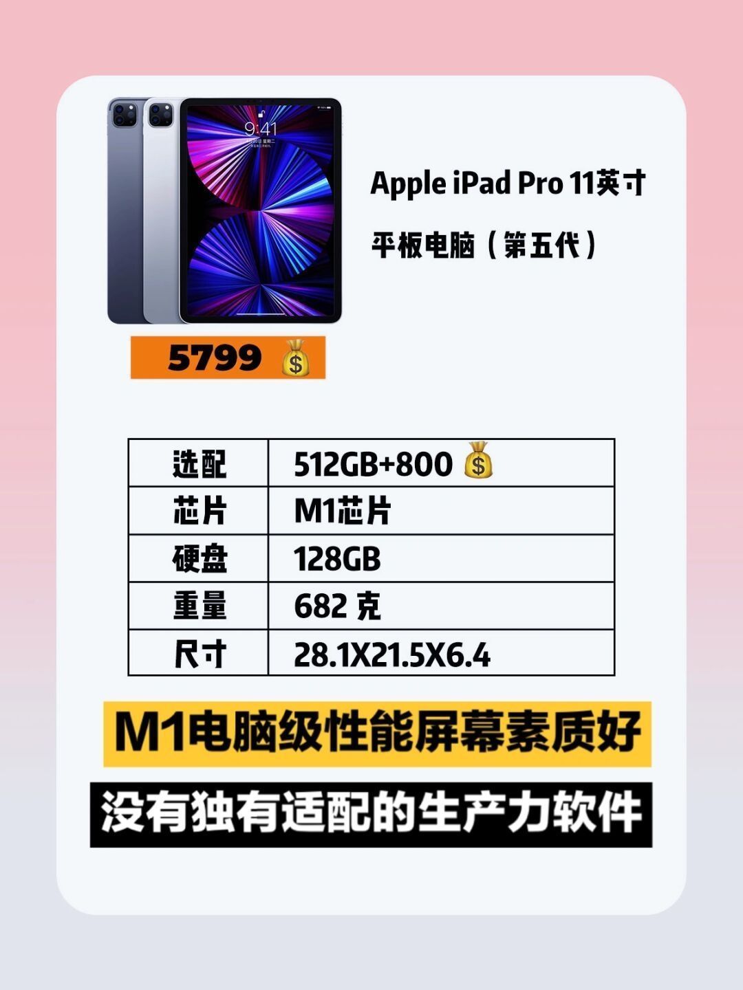 苹果教育优惠和返校季优惠下,iPad的选择也让准备进入职场进入大学的集美们头疼不已了吧,接下来我来介绍下哪款iPad最适合我们的日常工作吧👈🍎- 📍‼️个人不推荐蜂窝版,价格贵还可以被手机热点取代‼ ️- 📍很多人问平板和电脑怎么选,我觉得是你得有自己的电脑后才来选择平板,不太建议只买平板,不买电脑。因为平板干不了电脑的全部功能,电脑却能做平板的全部功能。 - 📍iPad pro👉摄影设计剪辑绘画...
