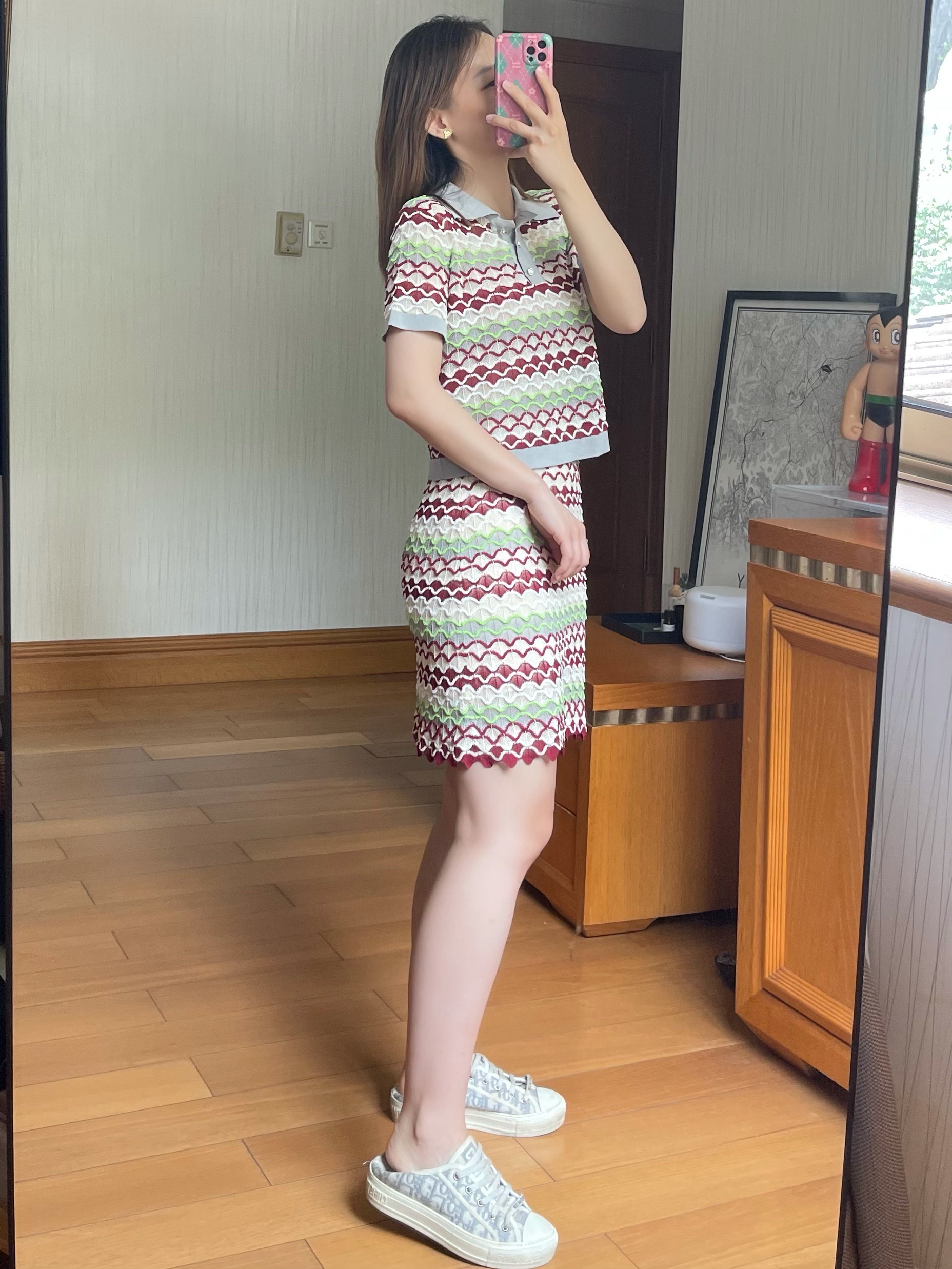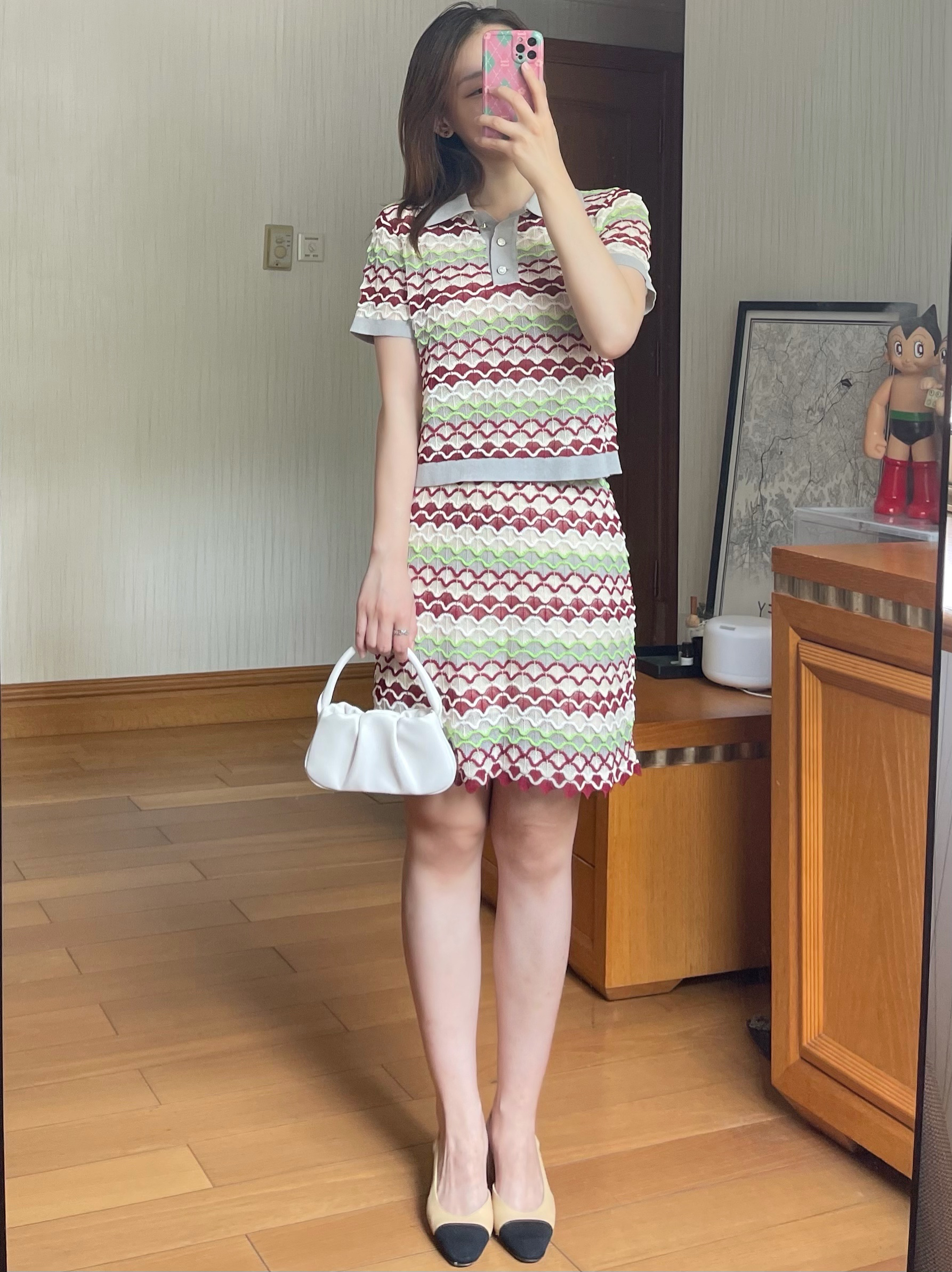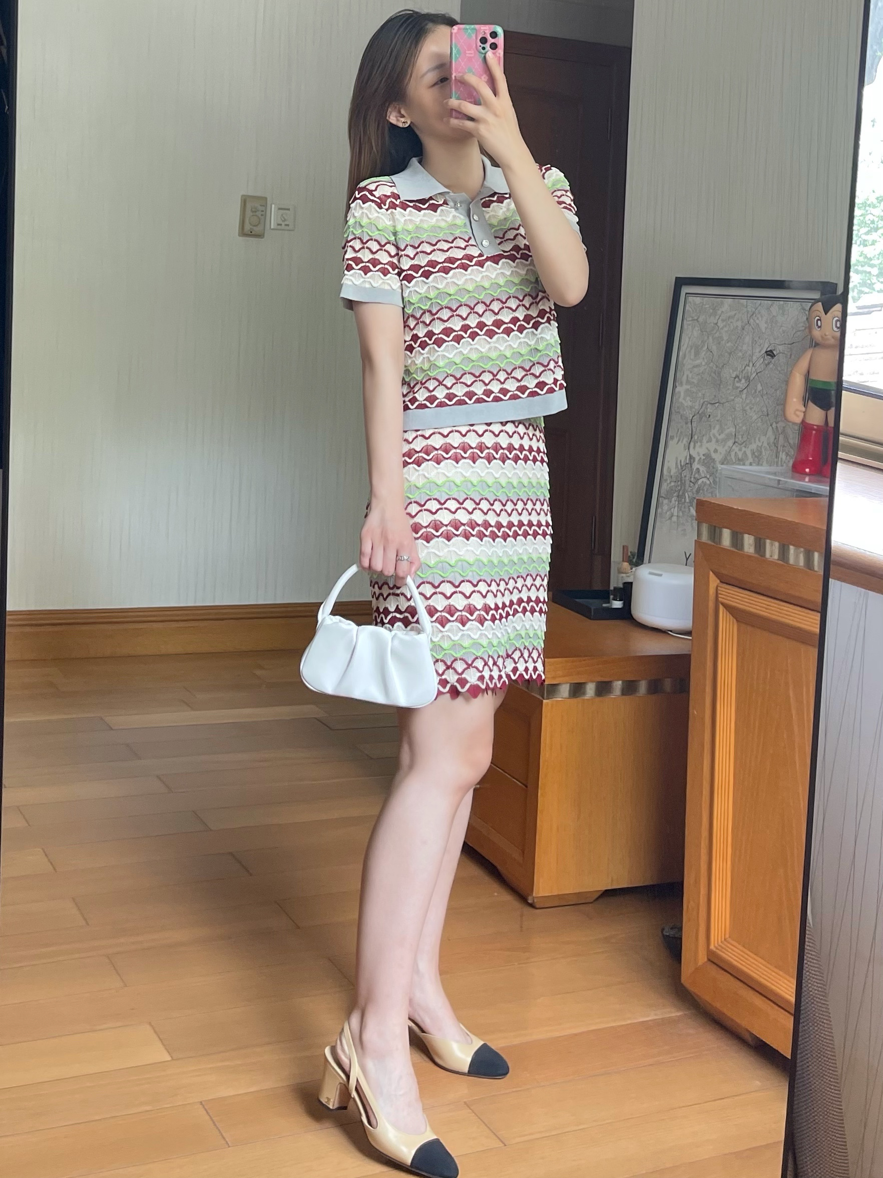 不用愁搭配 休闲套装总是要有一套 撞色POLO套装🎀 - ▫️套装:imyanggg_ 撞色跟波纹设计 穿起来整个人都特别有活力💃🏼 上衣是Polo款设计更加休闲~是日常三秒出门的懒人套装 裙子一点也不会显胯 👍🏻搭配了高跟鞋跟小白鞋 三秒出门 - ▫️包包:Hfresh ▫️鞋子:Chanel/Dior