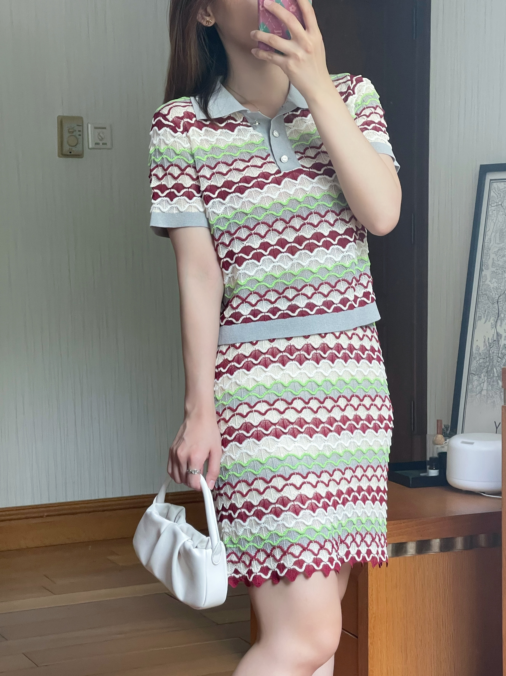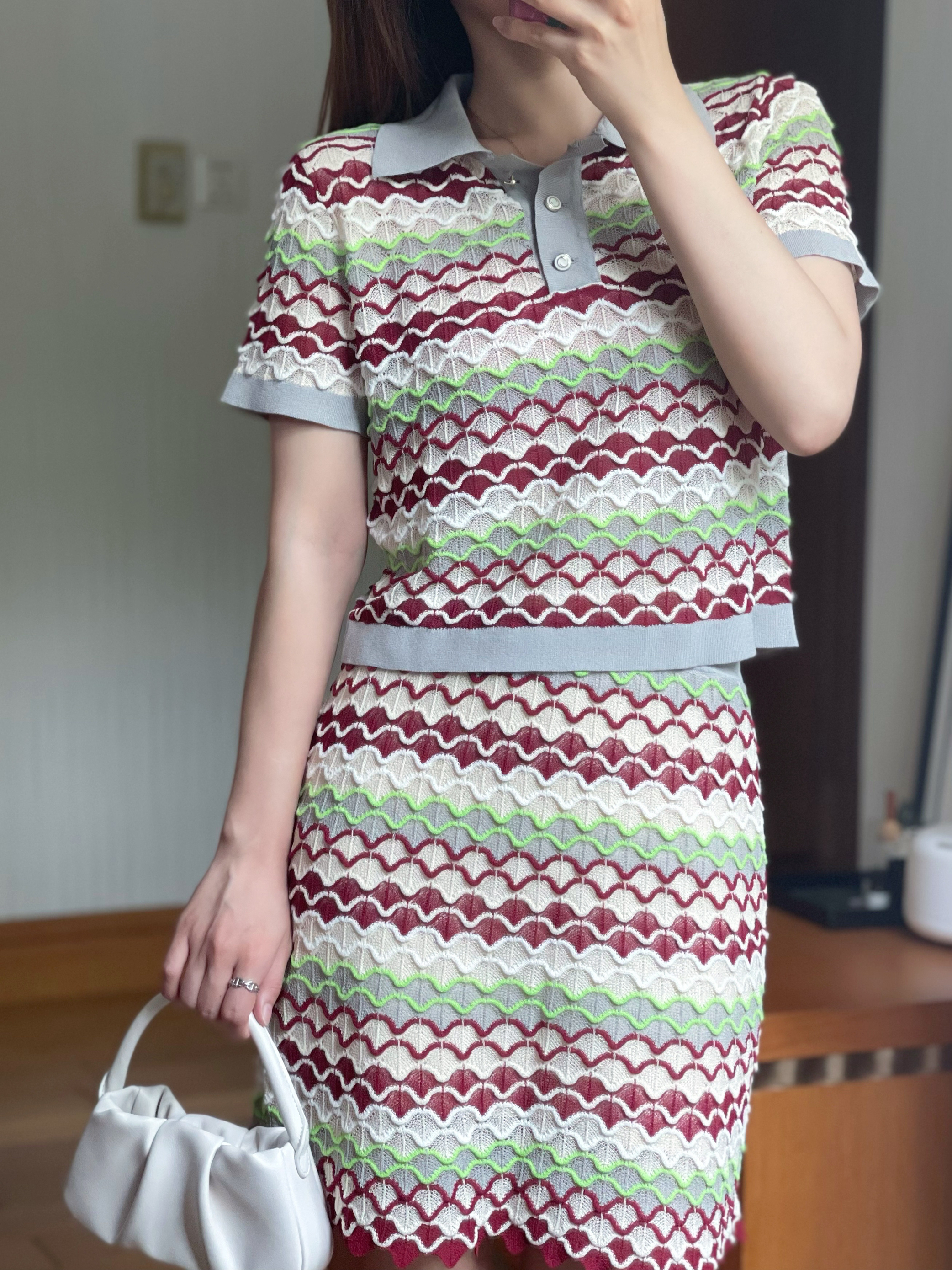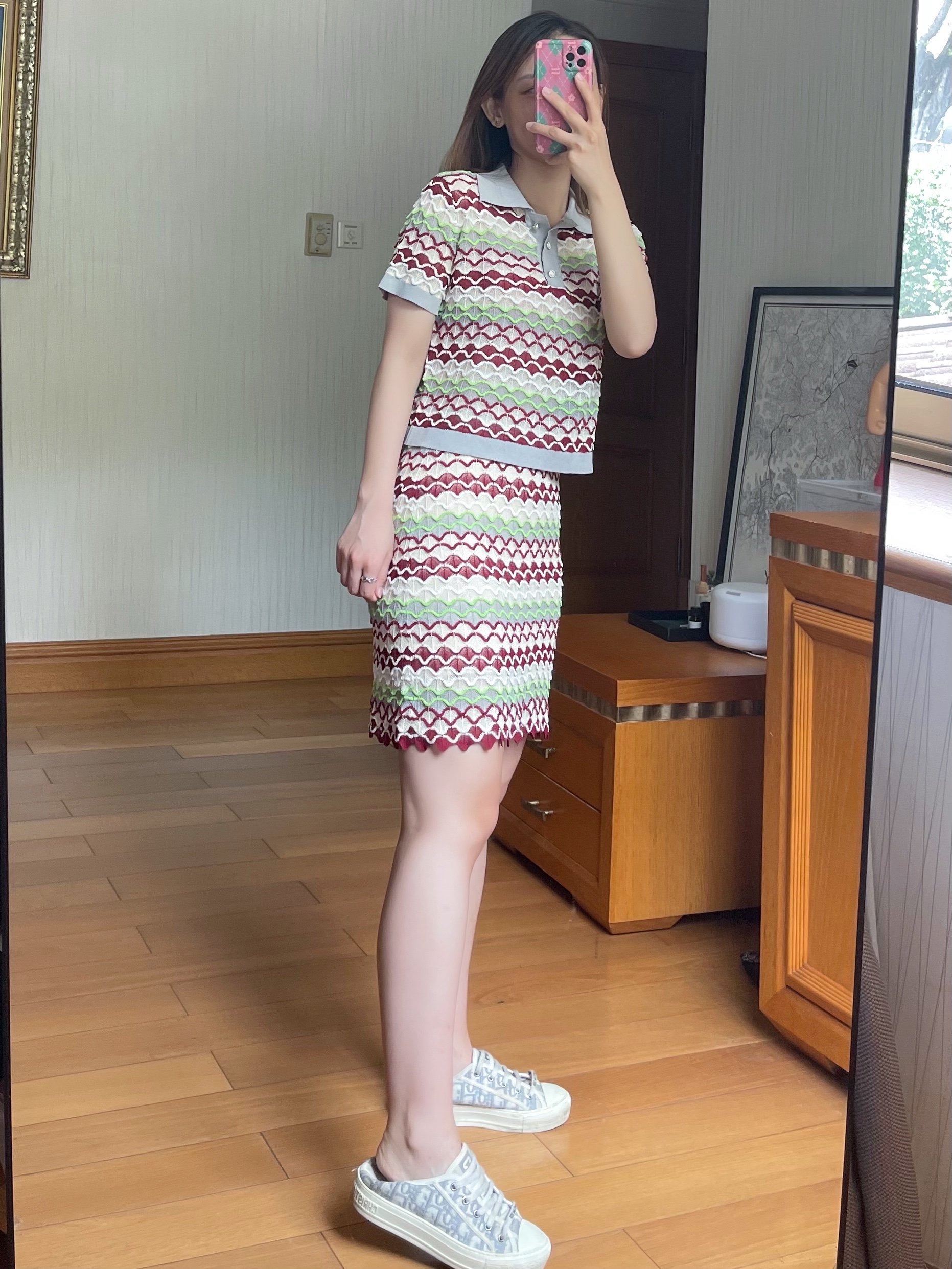 不用愁搭配 休闲套装总是要有一套 撞色POLO套装🎀 - ▫️套装:imyanggg_ 撞色跟波纹设计 穿起来整个人都特别有活力💃🏼 上衣是Polo款设计更加休闲~是日常三秒出门的懒人套装 裙子一点也不会显胯 👍🏻搭配了高跟鞋跟小白鞋 三秒出门 - ▫️包包:Hfresh ▫️鞋子:Chanel/Dior