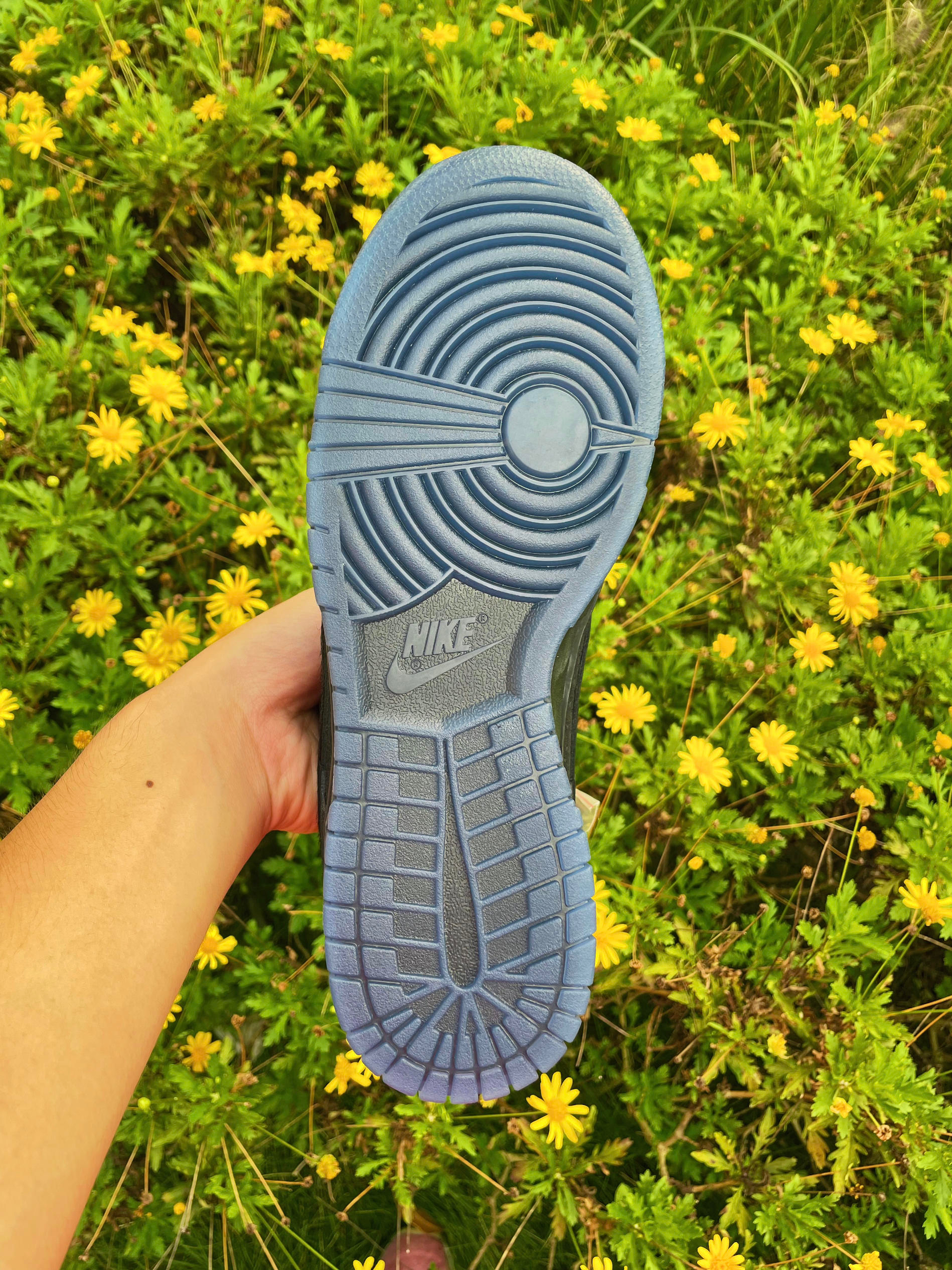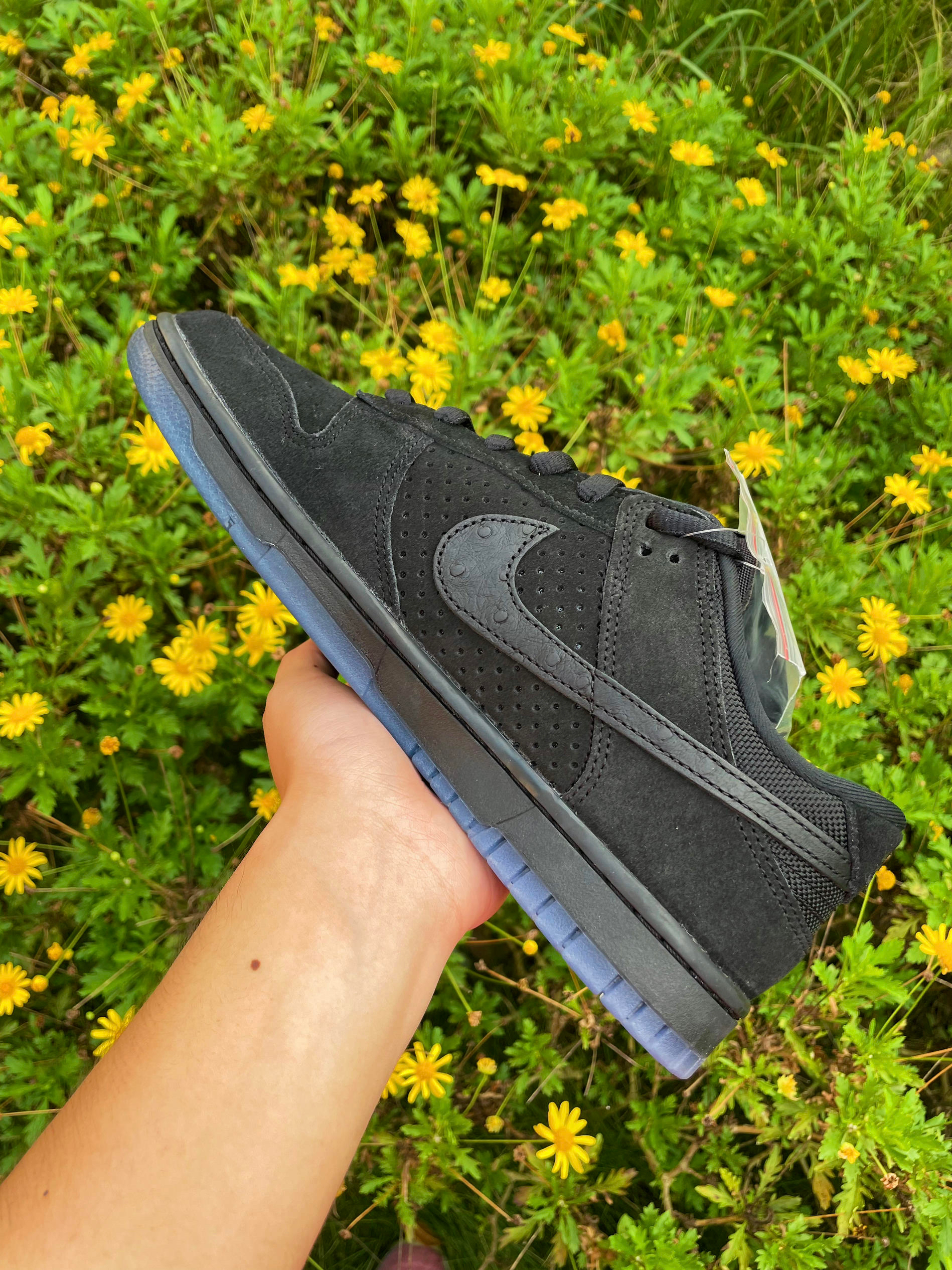 有一说一,实物和照片还真不是同一个东西🤤! 乍一看还以为是积木熊🐻dunk呢,但细节和质感更为丰富,首先是鸳鸯swoosh—外侧为积木熊dunk的纤维毛swoosh,内侧为鸵鸟皮swoosh,全鞋🖤麂皮质感拉满,水晶💎底也提升了他的规格,原价附近建议直接冲🤯!