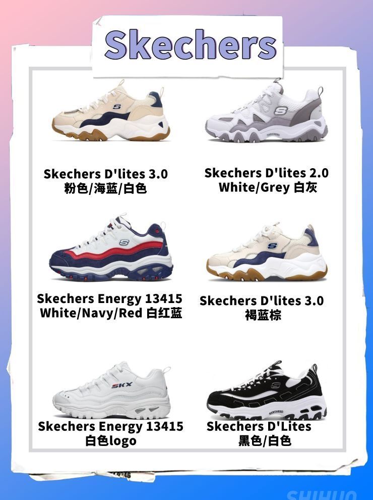 Skechers将经典鞋型加入现代科技全面升级推出了全新鞋款。采用了流行的复古老爹鞋设计语言,鞋面采用了二层牛皮与网布组合而成,运用复古的部件色块进行拼接,创新出浓郁的复古潮流结构设计,呈现出经典复古的观感。全新升级的Dlites大底,采用EVA与橡胶材料制成,并将鞋款基因与潮流廓型线条的完美结合,提升脚感舒适度的同时,也能够更好地修饰腿部线条,提高搭配度。