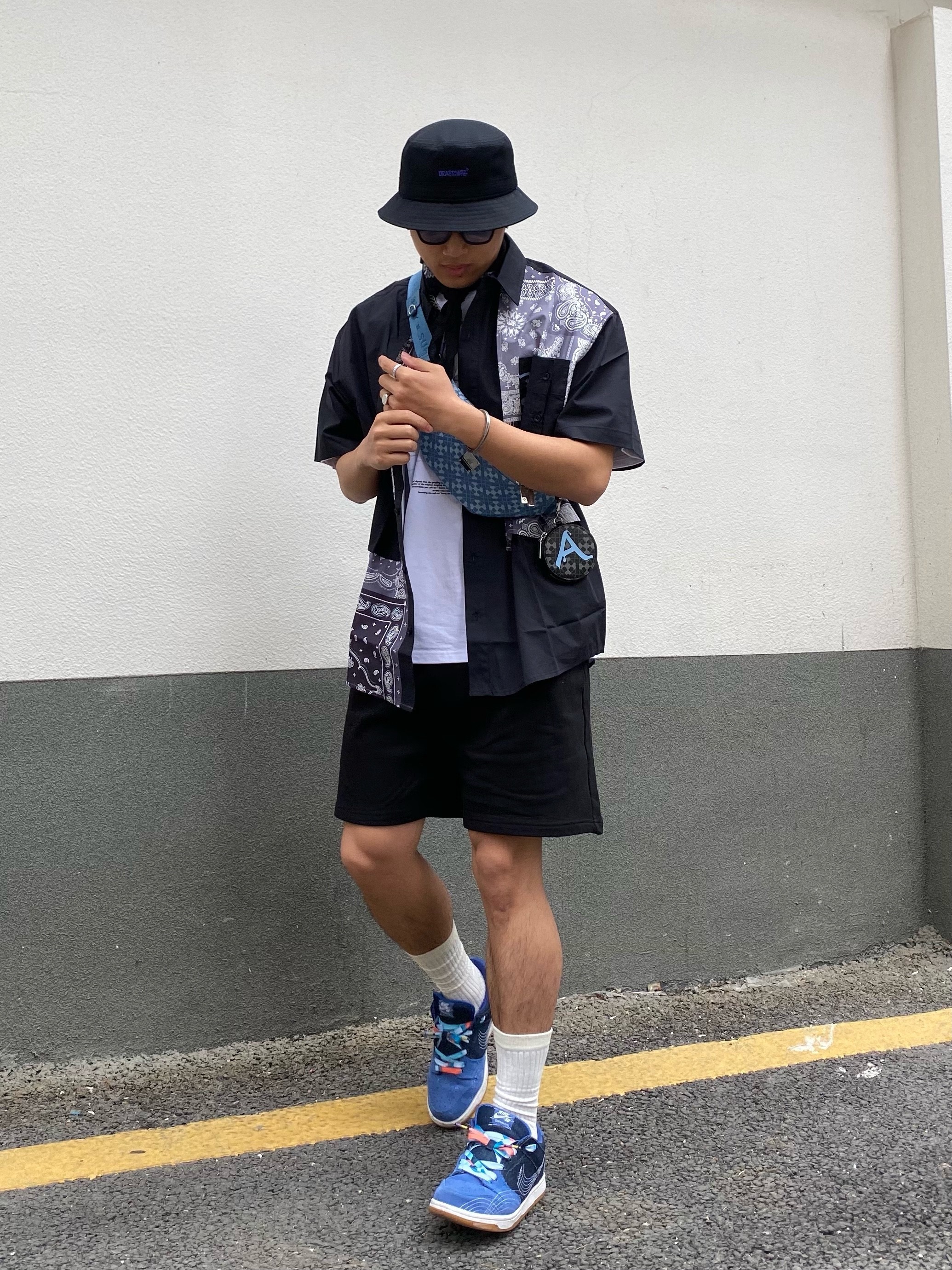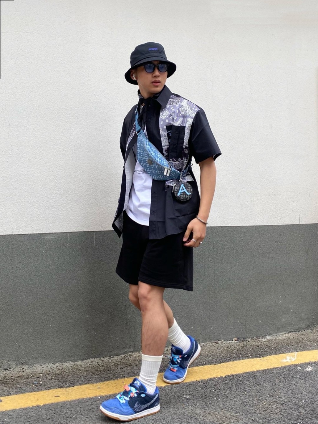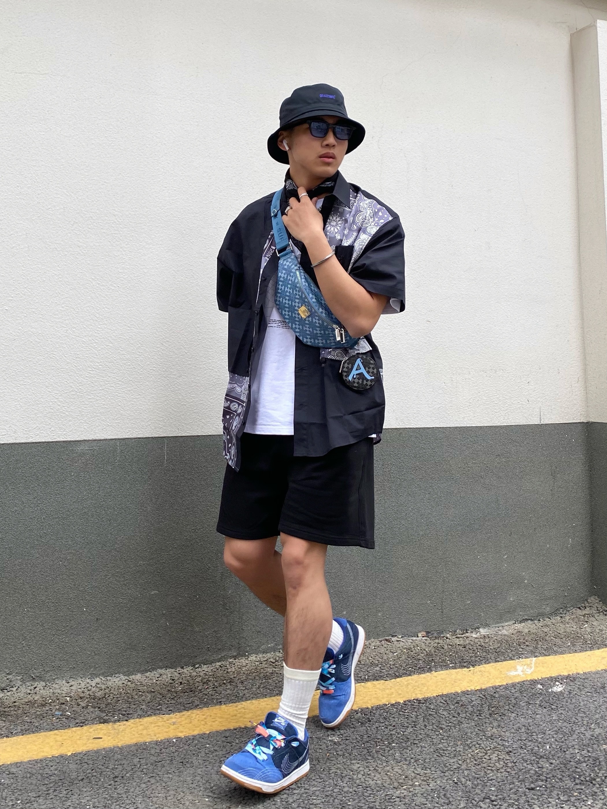 型男出街 前方注意避让⚠️ 178cm/71kg 帽子:#DRACONITE 上衣:#LAMLICKA 腰包:#Supermercy 袜子:#左右力量