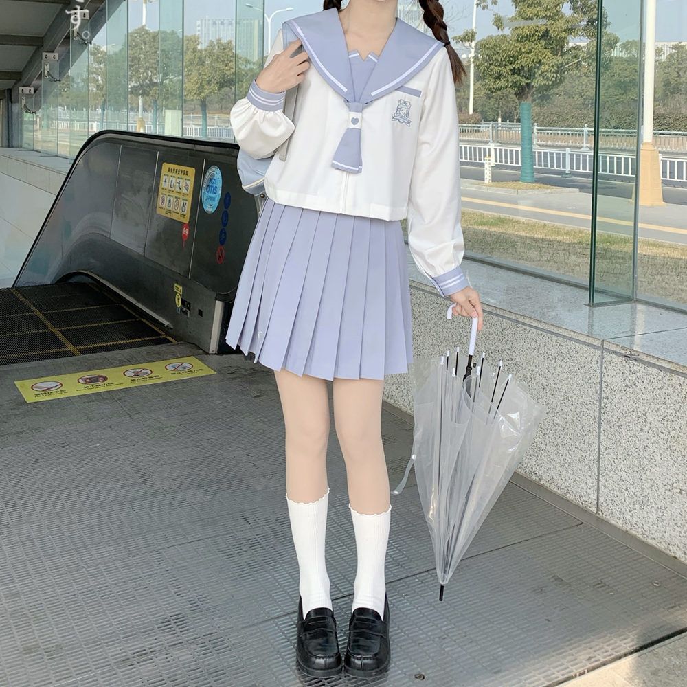 穿搭公式:JK灰色半身裙 正统JK制服+玛丽珍鞋 推荐理由:第一次穿Jk制服,真的的觉得太好看了,立马入坑,又买了条。姐妹们想试着真要是穿上秒变女,日本女高中生,而且巨显腿,我好爱,照片拍了好多都不够发,哈哈哈! 搭配场景:搭配白丝也巨巨巨好看,纯欲。百看不腻的jk制服,真的超级超级好看! 图片来源于网络