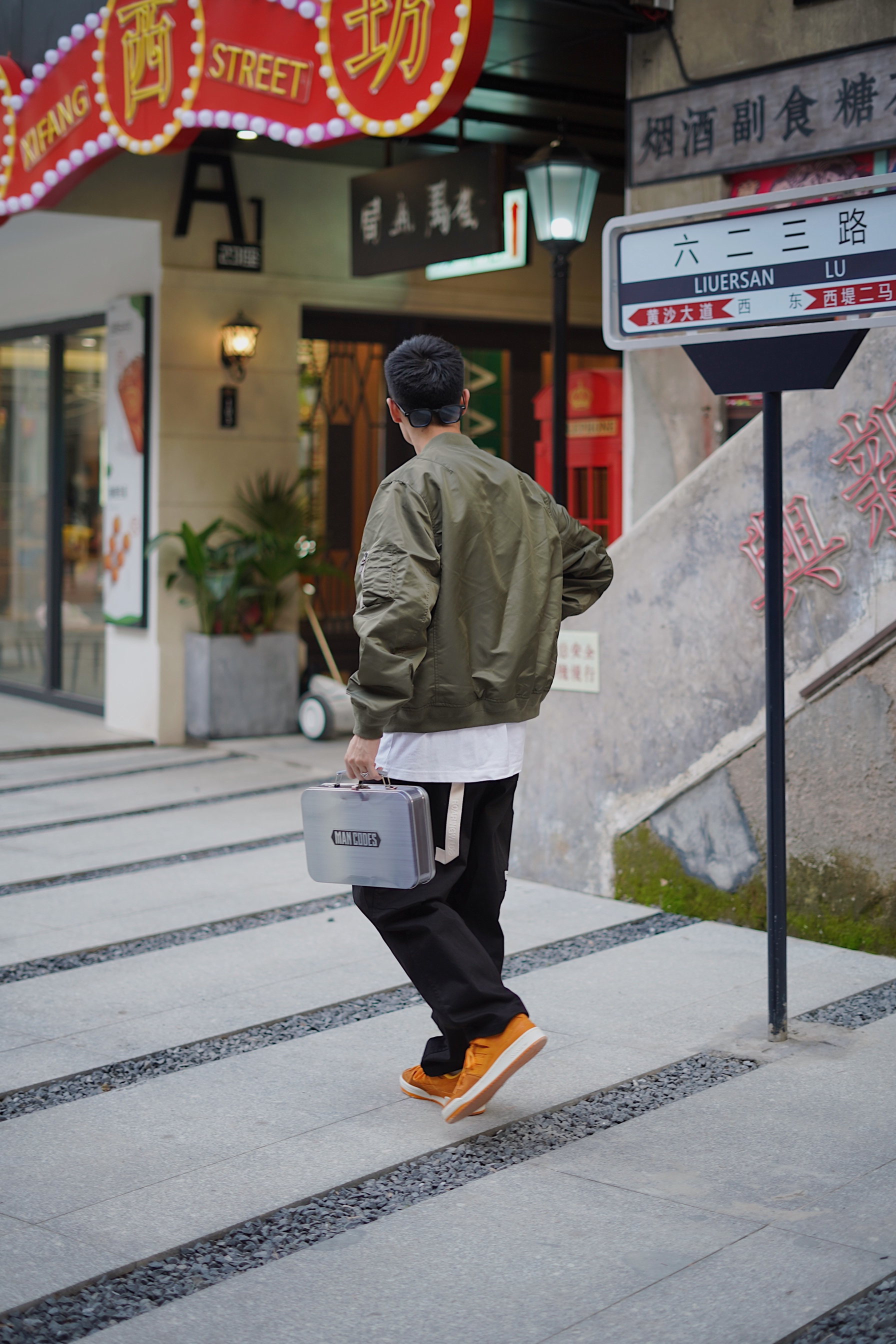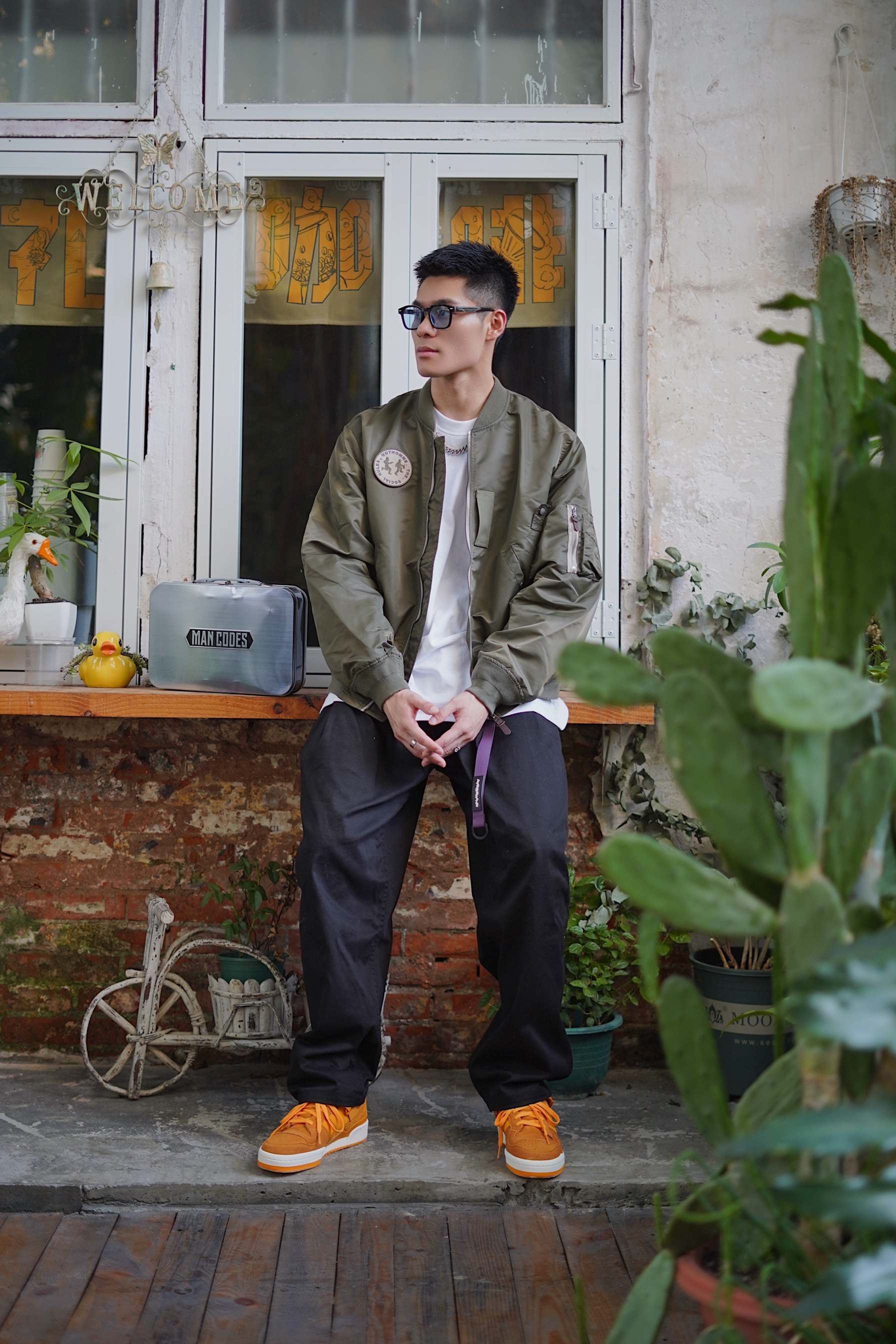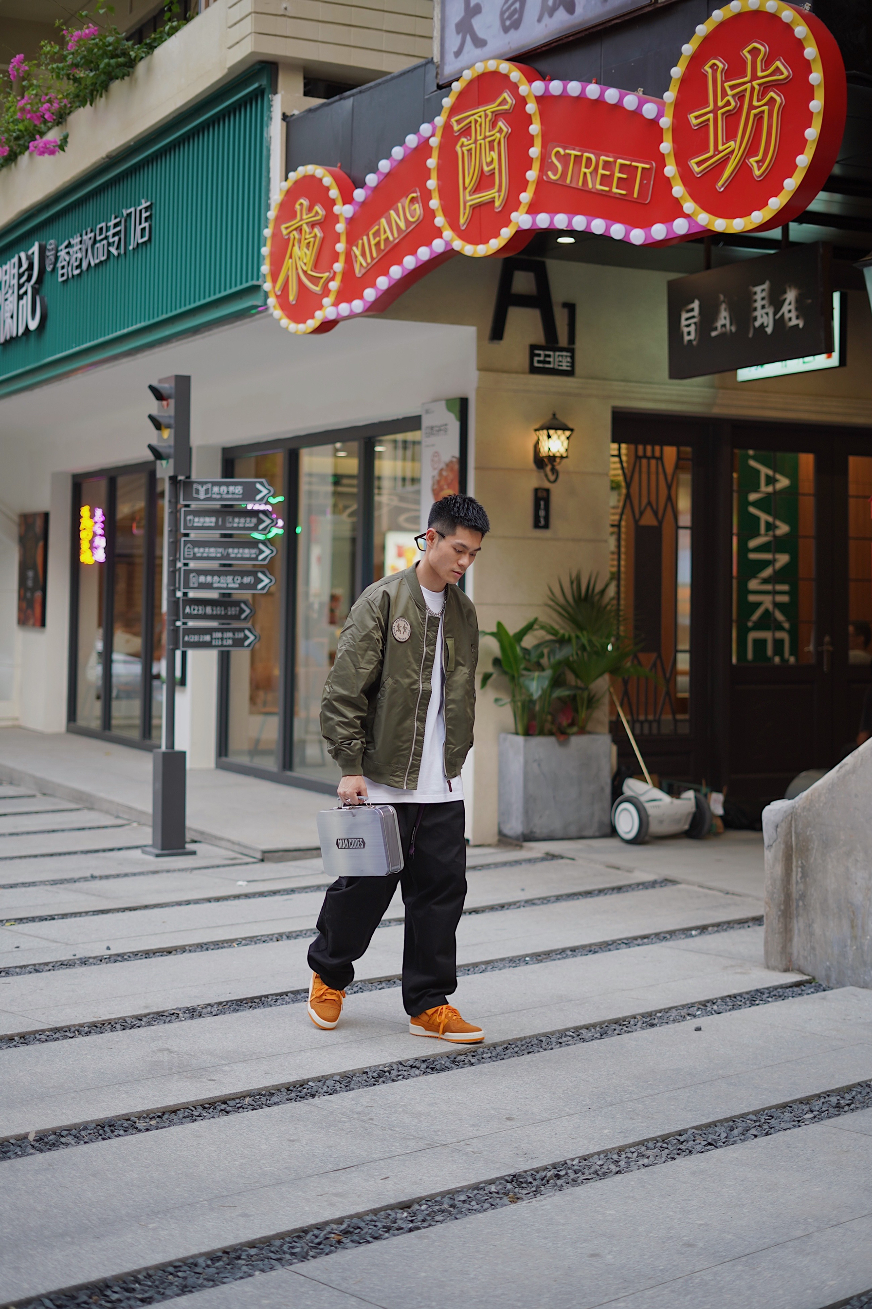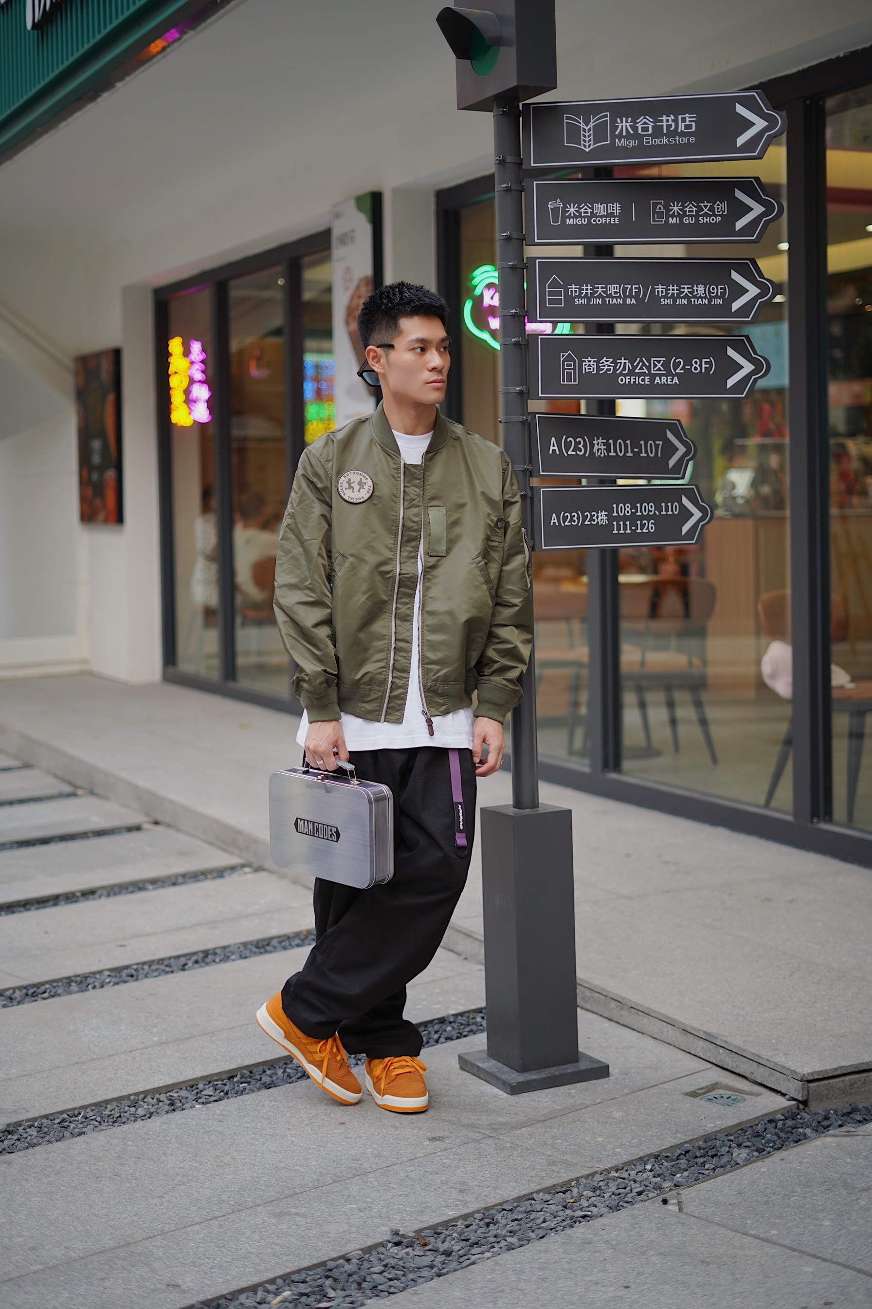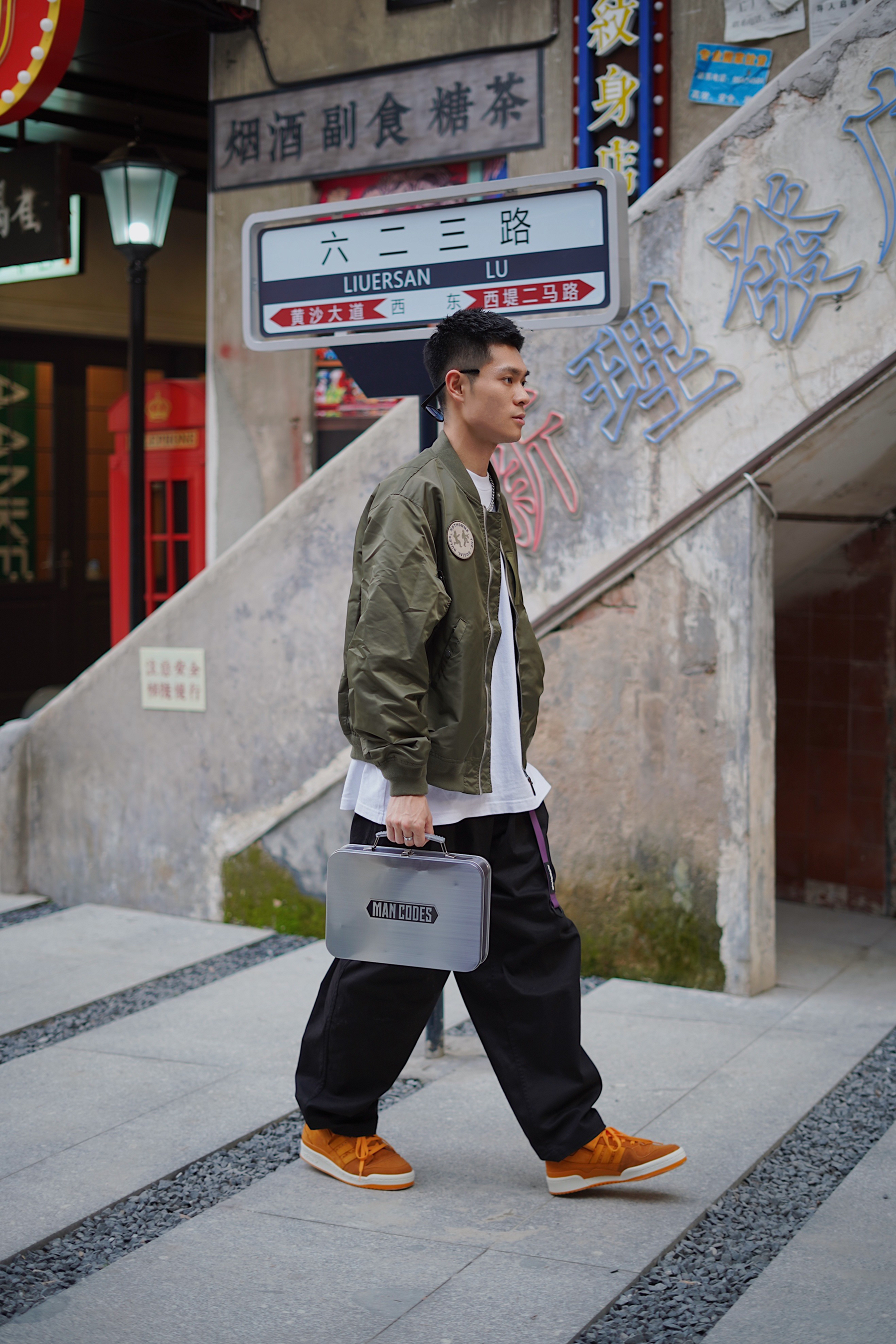 今日配色法则是暖色调 初秋穿搭怎么能少的了棒球服呢 这次选择了一件军绿色的 很适合现在的天气穿 飞行员夹克设计也非常酷 打底选择一件白色的T恤 增加层次感🖖🏻 裤子选择的是黑色哈珀工装裤 搭配上身军绿色夹克 军绿搭配黑色完全没有抵抗力☑️ 鞋子是复古板鞋 结合经典的中国川菜辣味元素 橘黄色的麂皮特别有质感 结合今天的暖色调搭配非常帅🆒 👔:NOTHOMME 👖:ROARINGWILD 👟:Adi...