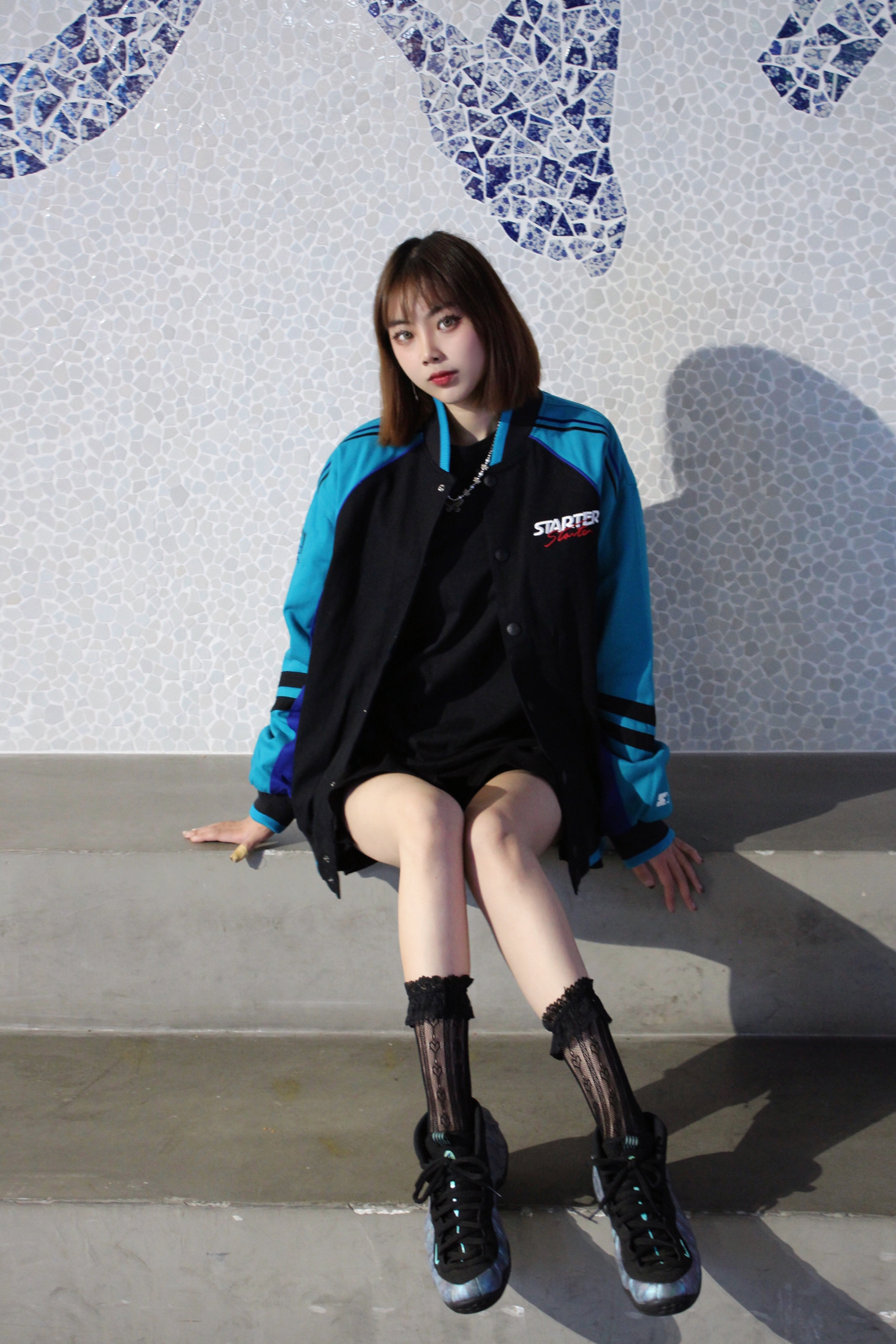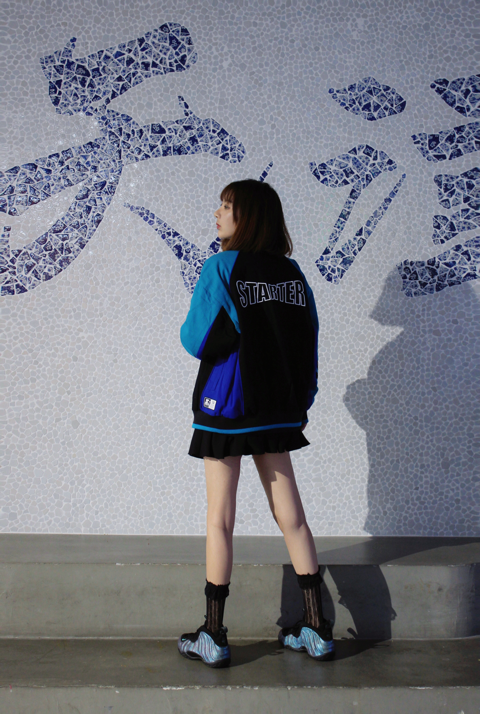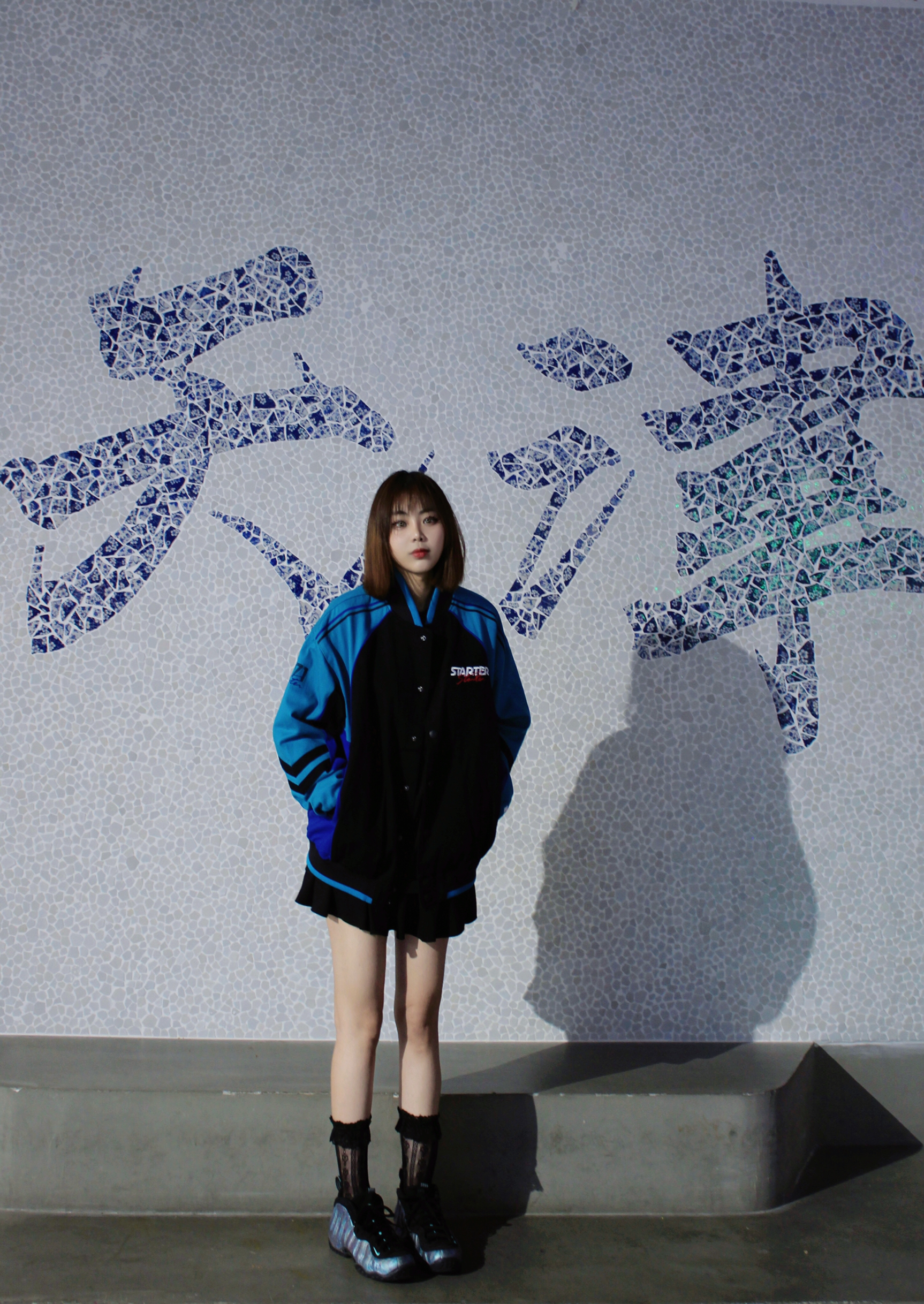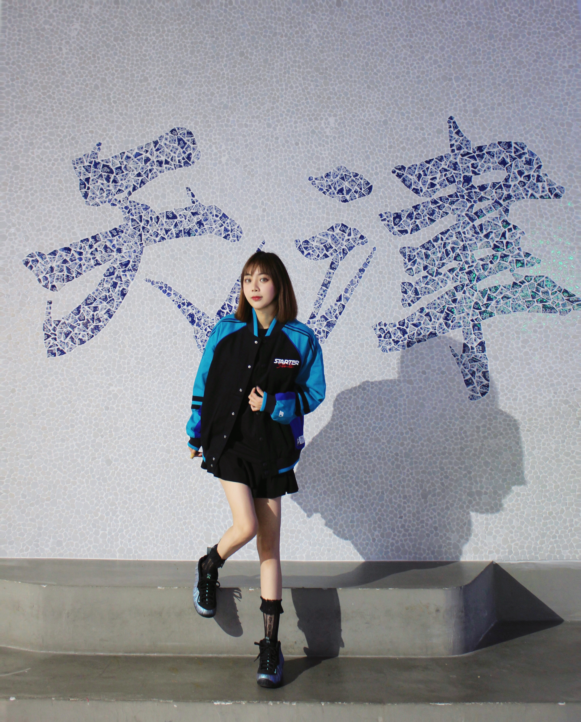 好穿外套配裙子也是很可的 游离在甜酷之间的风格 复古刺绣棒球服外套,内衬是丝绸面很有质感 👔:STARTER 👟:鲍鱼喷
