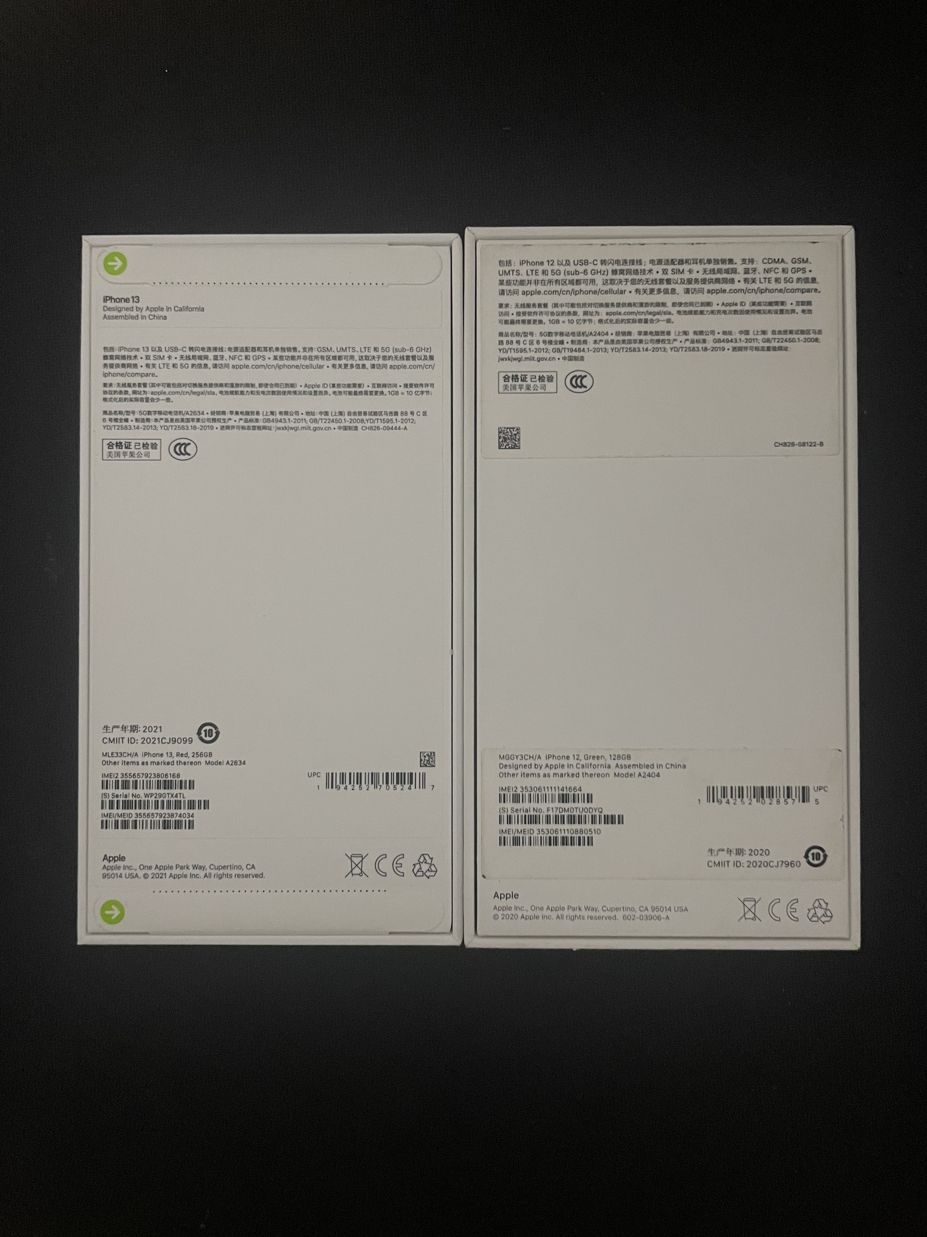 我是昨天买的,今天下午到货,盒子还没拆。 不要问我为什么买红色的标准版,13 pro各个颜色的版本发货时间太迟,远峰蓝更不用说,13其他颜色和13mini同样没有现货,排到了10月底。 13的包装盒和12大小差不多,厚度比12的要薄一点。以后可能买手机可能只给手机。 借此机会,我会着重对比12,13主要改变的点。 苹果新一代 A15 仿生芯片采用 5nm 工艺技术, 150 亿颗晶体管。苹果将A...