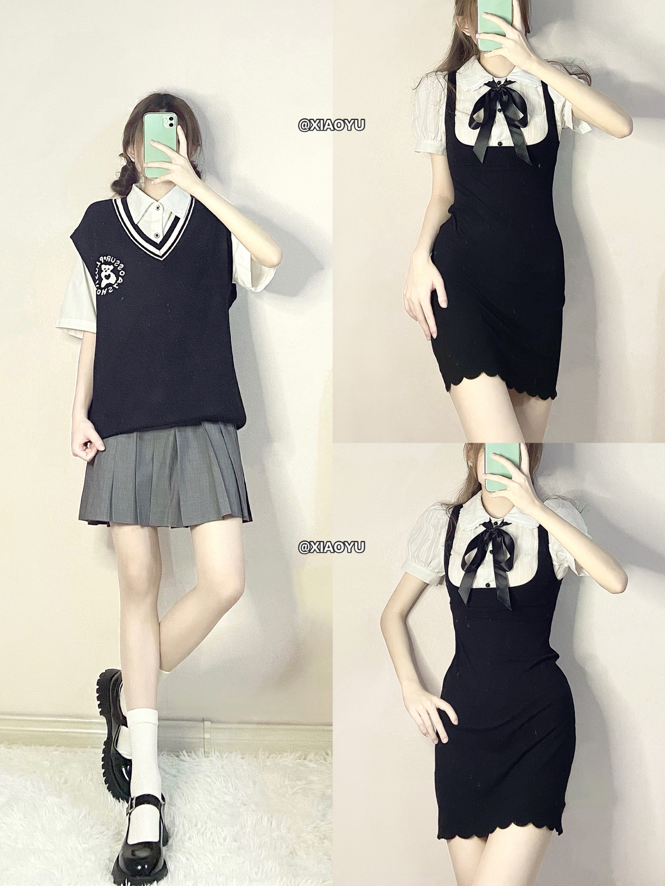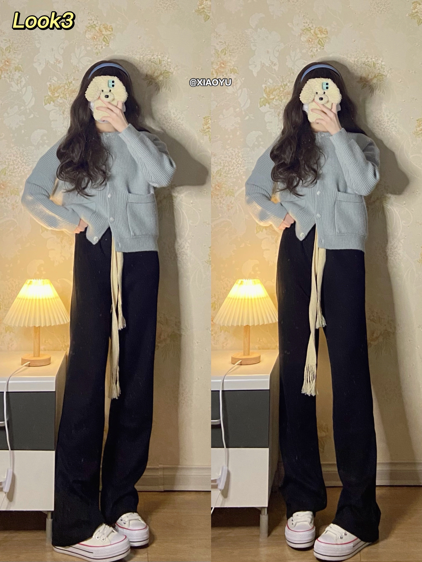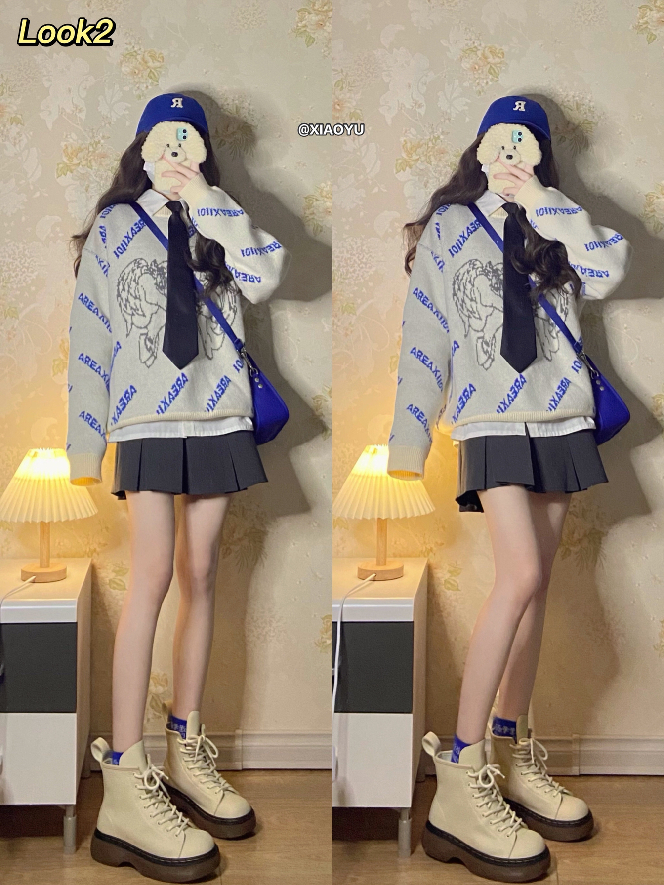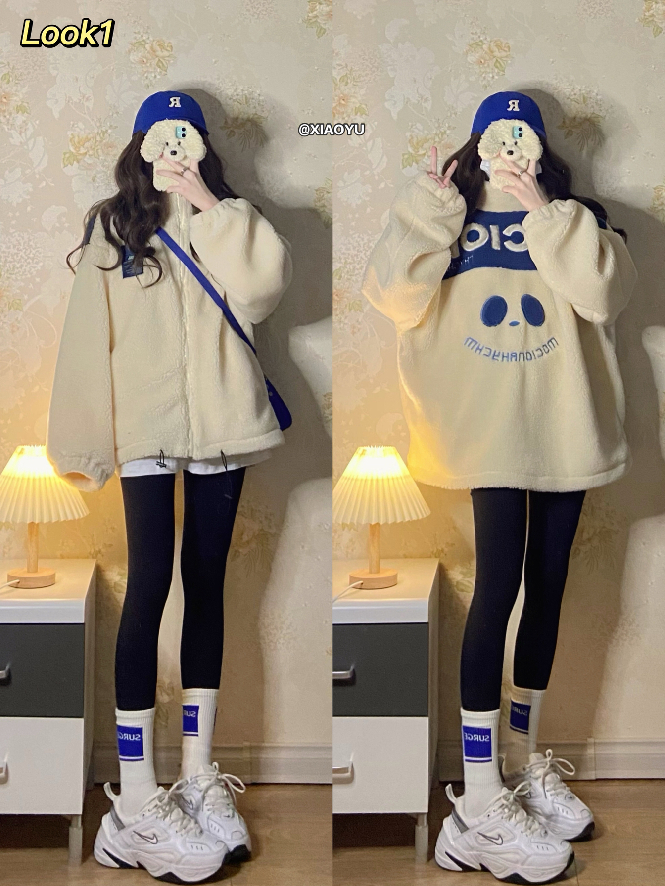 hey 大家好 这里是小羽✨ 🏷净身高160 体重39kg(这篇穿鞋164) 温柔的蓝色系穿搭来了 宝贝们喜欢哪套呀~ - 🫐Look1 🐑白色羊羔绒外套:自然涩(s码)💰208 里面是夹棉的 很暖和 性价比很高 背面图案很可爱 🦈黑色鲨鱼裤:佰伊初(s码)💰68 穿着很舒服 贴合腿型 是我秋冬搭配频率很高的单品 🧢宝蓝色棒球帽:陈奶奶的Hatshop 💰34 这个颜色真的好显白 帽形很显脸小 想...