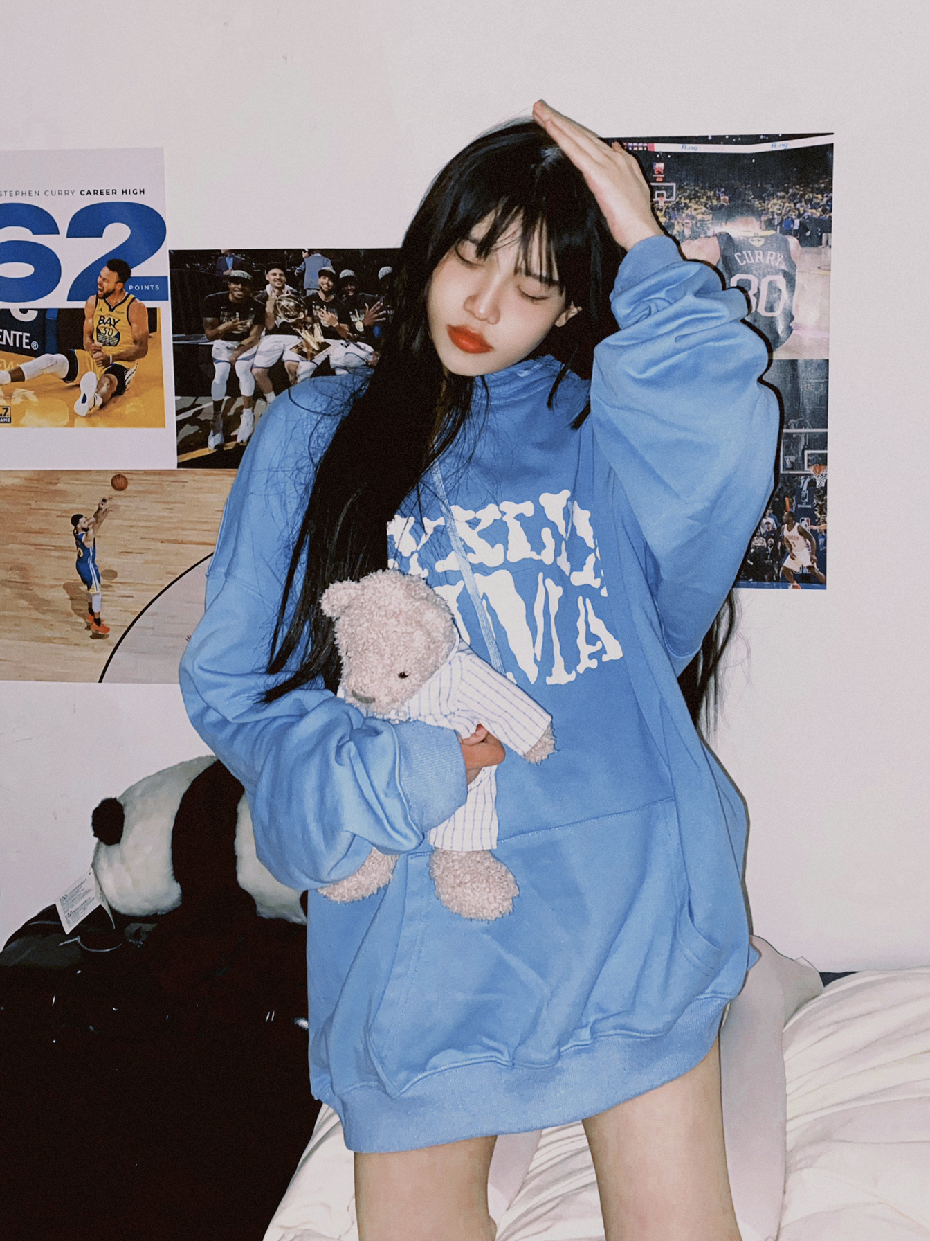 广东也开始起风啦 穿上新买的薄款连帽卫衣正正好 非常上镜的奶蓝色 好喜欢w 👔:ALYXLYX