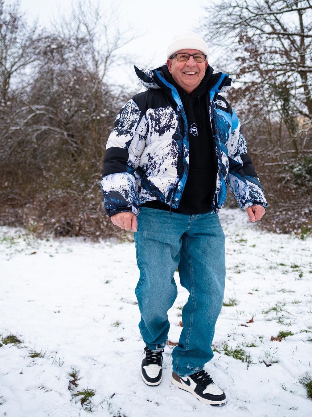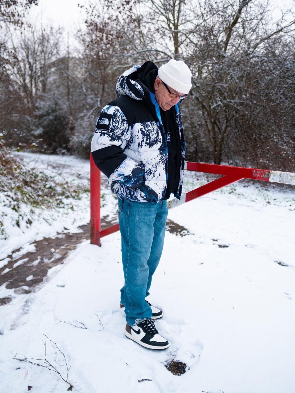 今天的姥爷杠杠的,玩起雪来那是相当开心。TNF雪山🏔️经典到不能在经典的羽绒服真是让人眼馋😋,牛仔长裤👖打底过度,脚踩AJ1摩卡☕️低调而不失奢华,怎么搭都是百搭的鞋款是真的香
