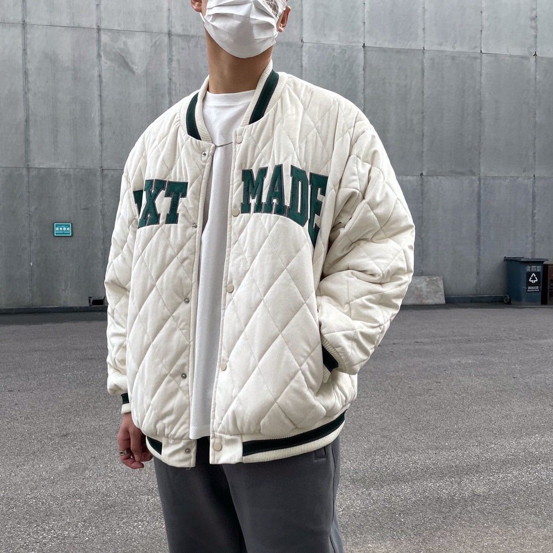 👕 秋冬新款拼色刺绣字母棒球夹克丝绒棉服,情侣款。典雅潮流风,简洁时尚的版型,搭配金属丝绒面料精工制造,上身效果颜值与设计感双重爆棚。最为经典的棒球夹克版型,廓形的剪裁上身穿着自由舒适。定制拼色罗纹领,柔软贴合在领部和袖口。水洗丝绒面料手感极佳,搭配菱形格绗缝水洗棉非常保暖。面料自带哑光金属光泽效果,视觉感无敌。立体刺绣饱满精致,清晰的线迹纹理,质感完美
