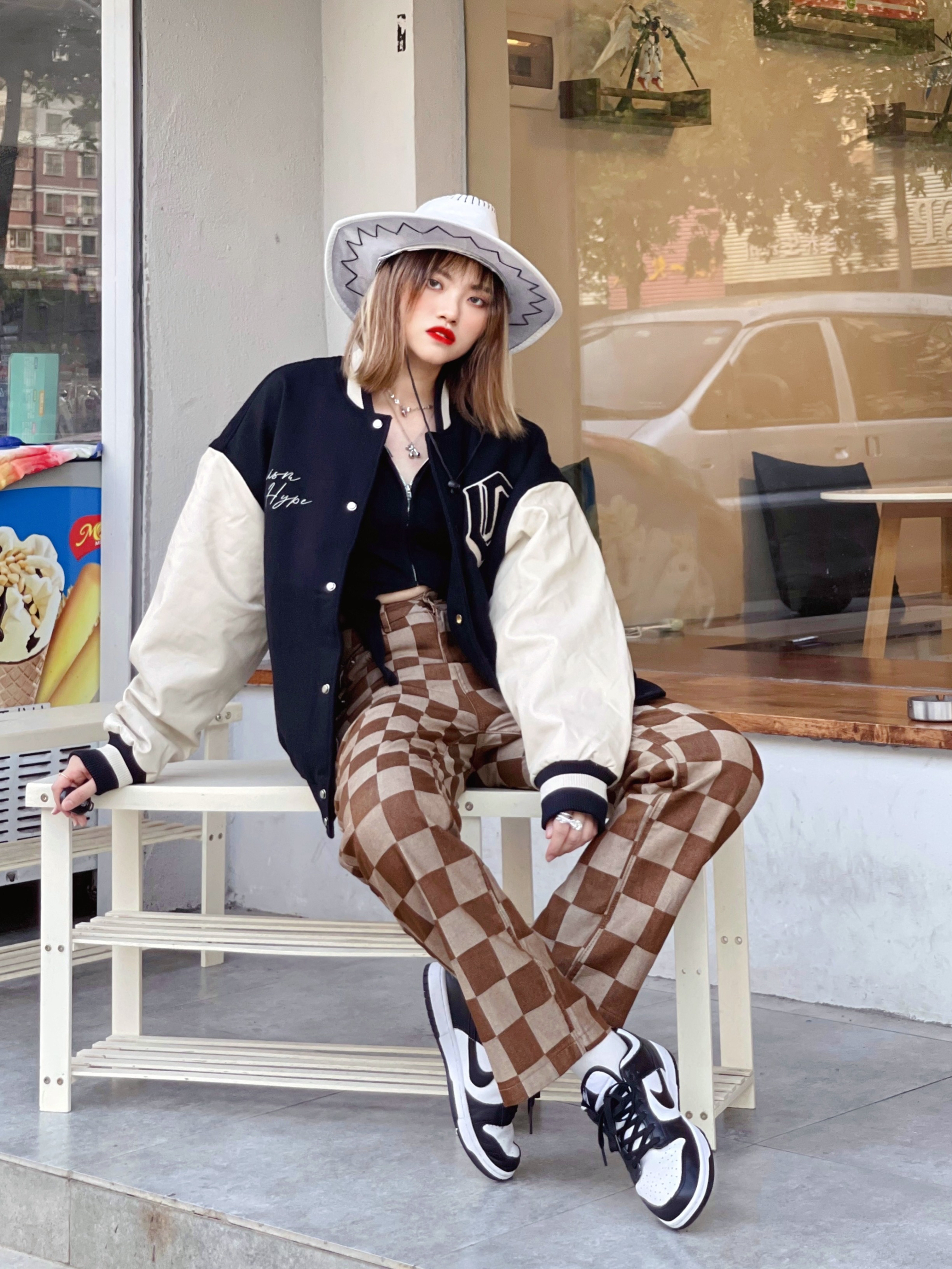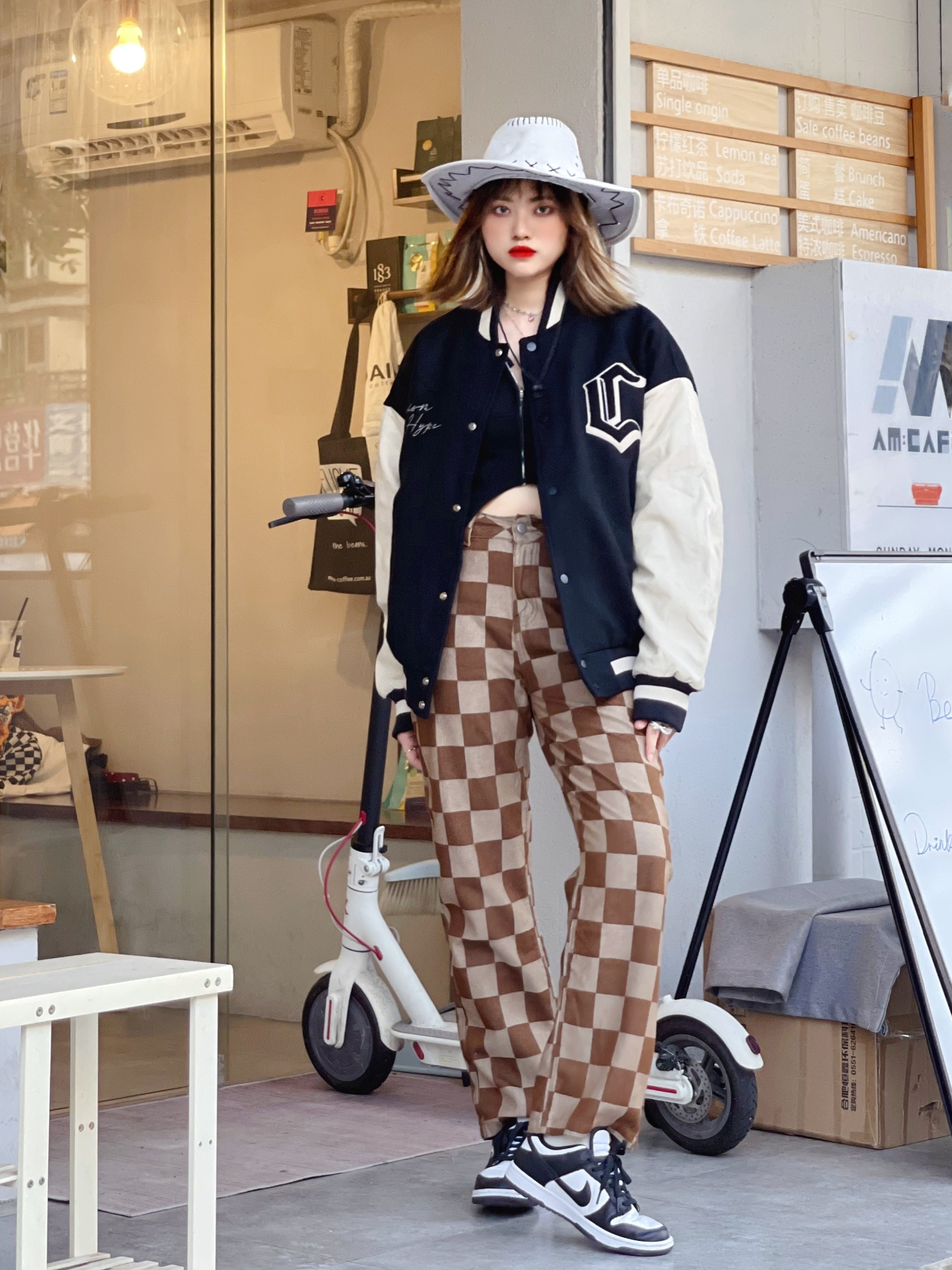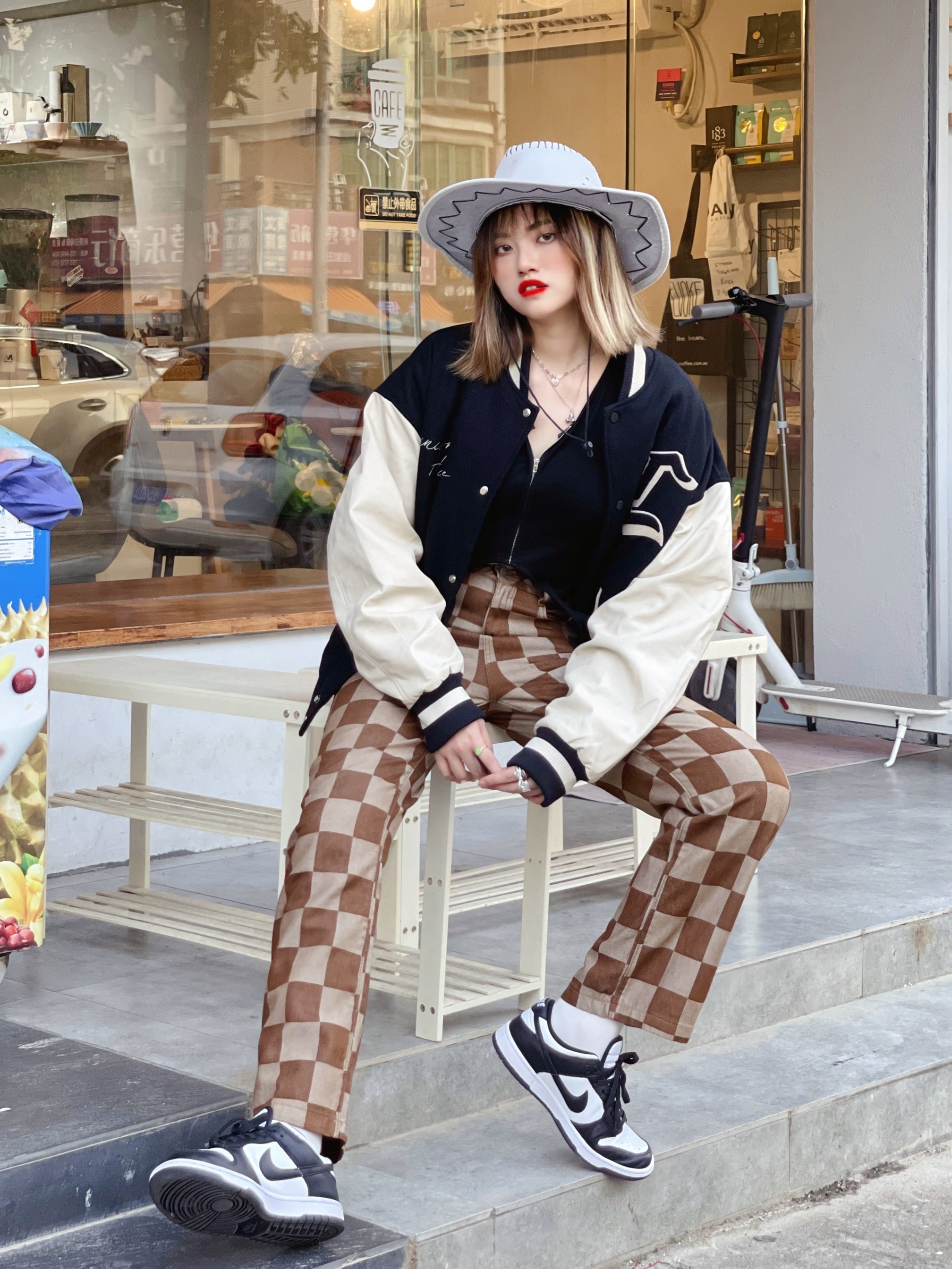 🎀妙妙:168/110 . 棒球服➕格子方块长裤➕dunk 再搭配上白色的🤠西部牛仔帽✴️ 🈶️那味儿啦~ 即使身处咖啡馆☕️ 也分分钟穿越到美国西海岸搞嘻哈了哈哈哈哈 这条裤子绝绝子 棕色系🏾天花板‼️ 敲显腿长 朋友直呼又A又辣!💢 - 👔:Chinism 👖:beerbro 👟:nike