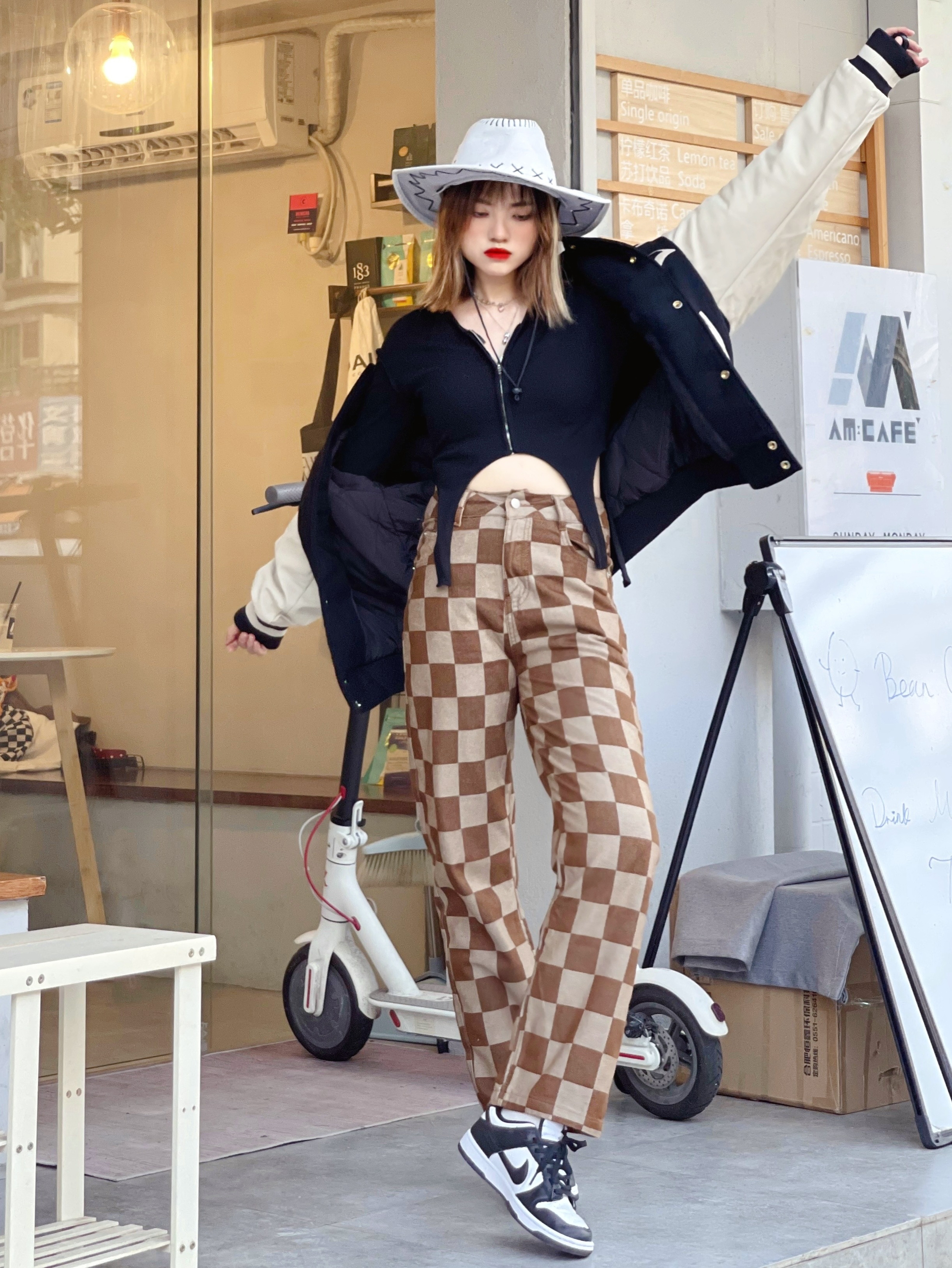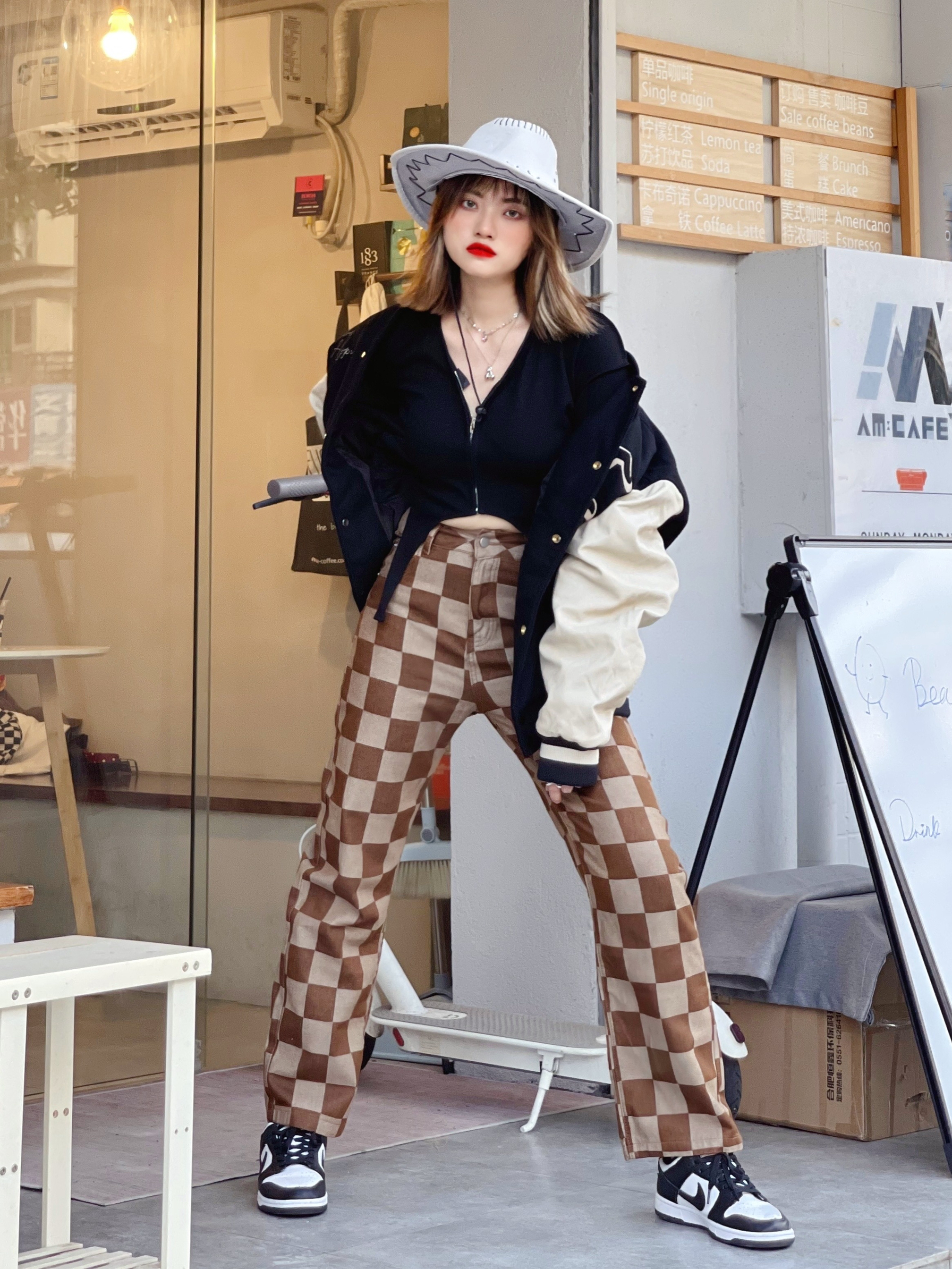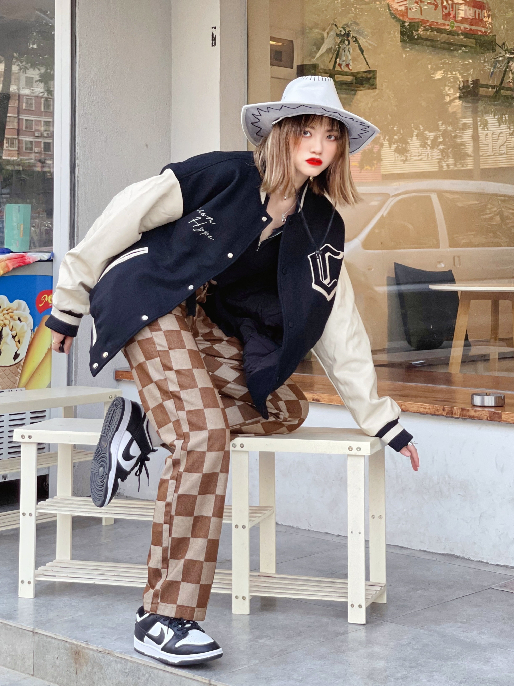 🎀妙妙:168/110 . 棒球服➕格子方块长裤➕dunk 再搭配上白色的🤠西部牛仔帽✴️ 🈶️那味儿啦~ 即使身处咖啡馆☕️ 也分分钟穿越到美国西海岸搞嘻哈了哈哈哈哈 这条裤子绝绝子 棕色系🏾天花板‼️ 敲显腿长 朋友直呼又A又辣!💢 - 👔:Chinism 👖:beerbro 👟:nike