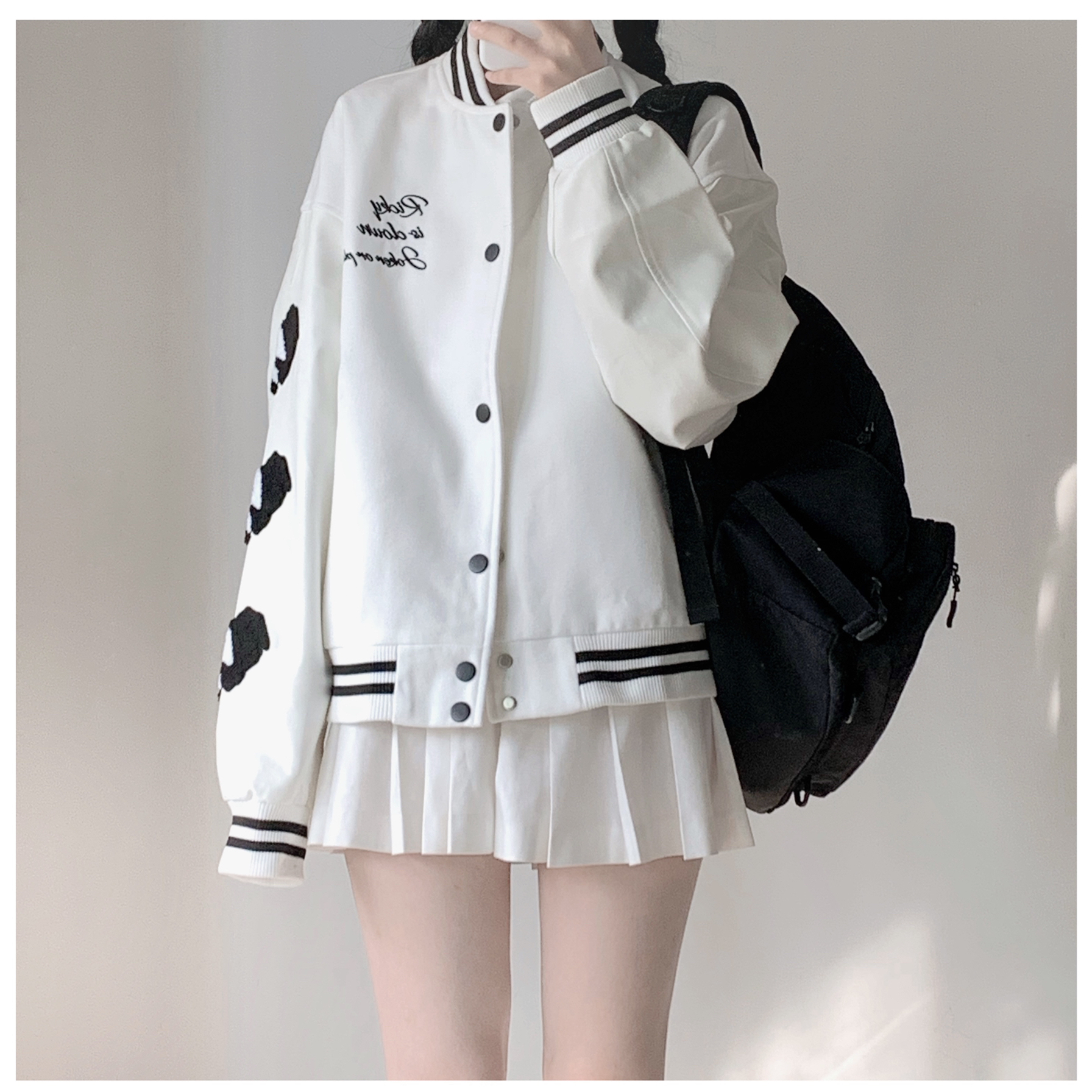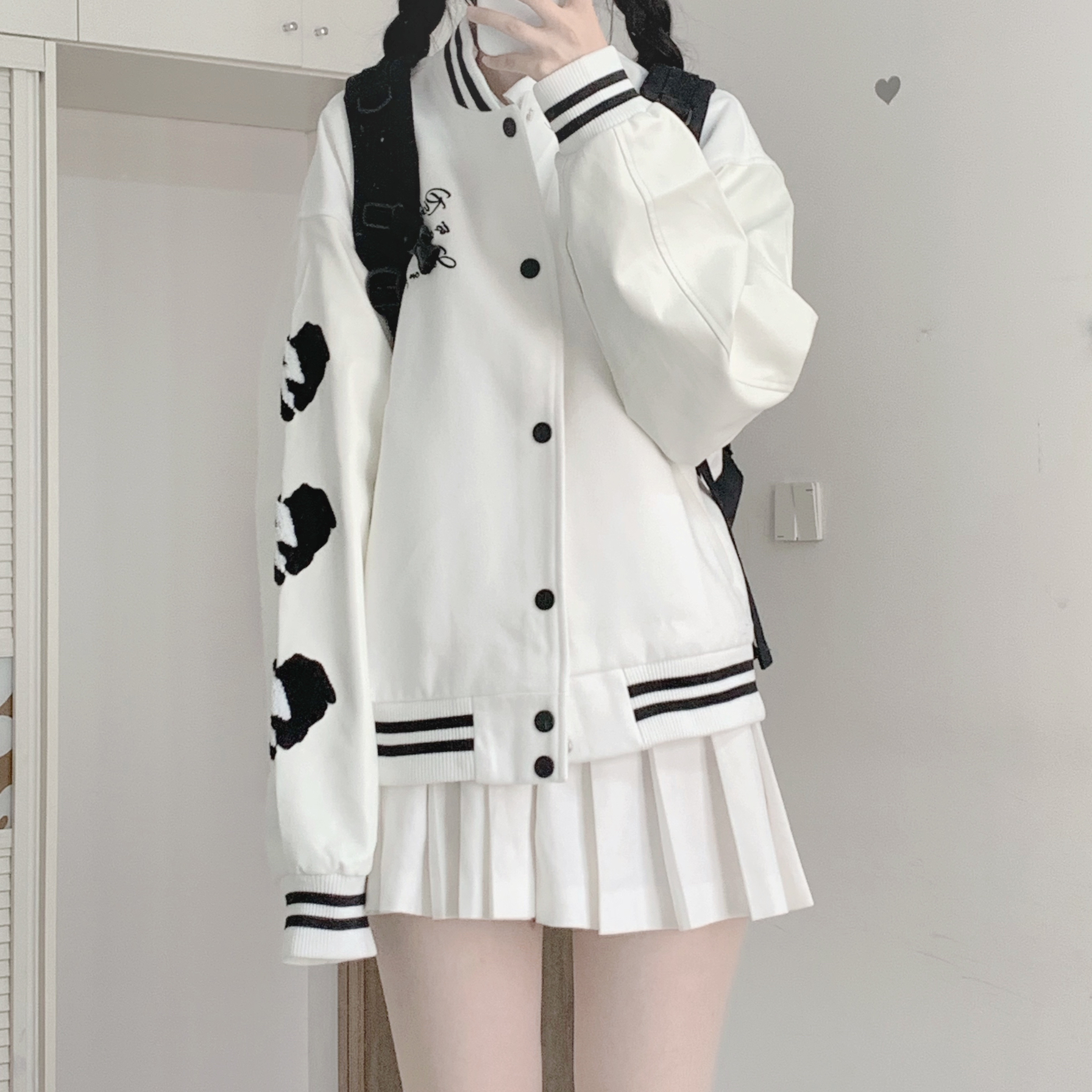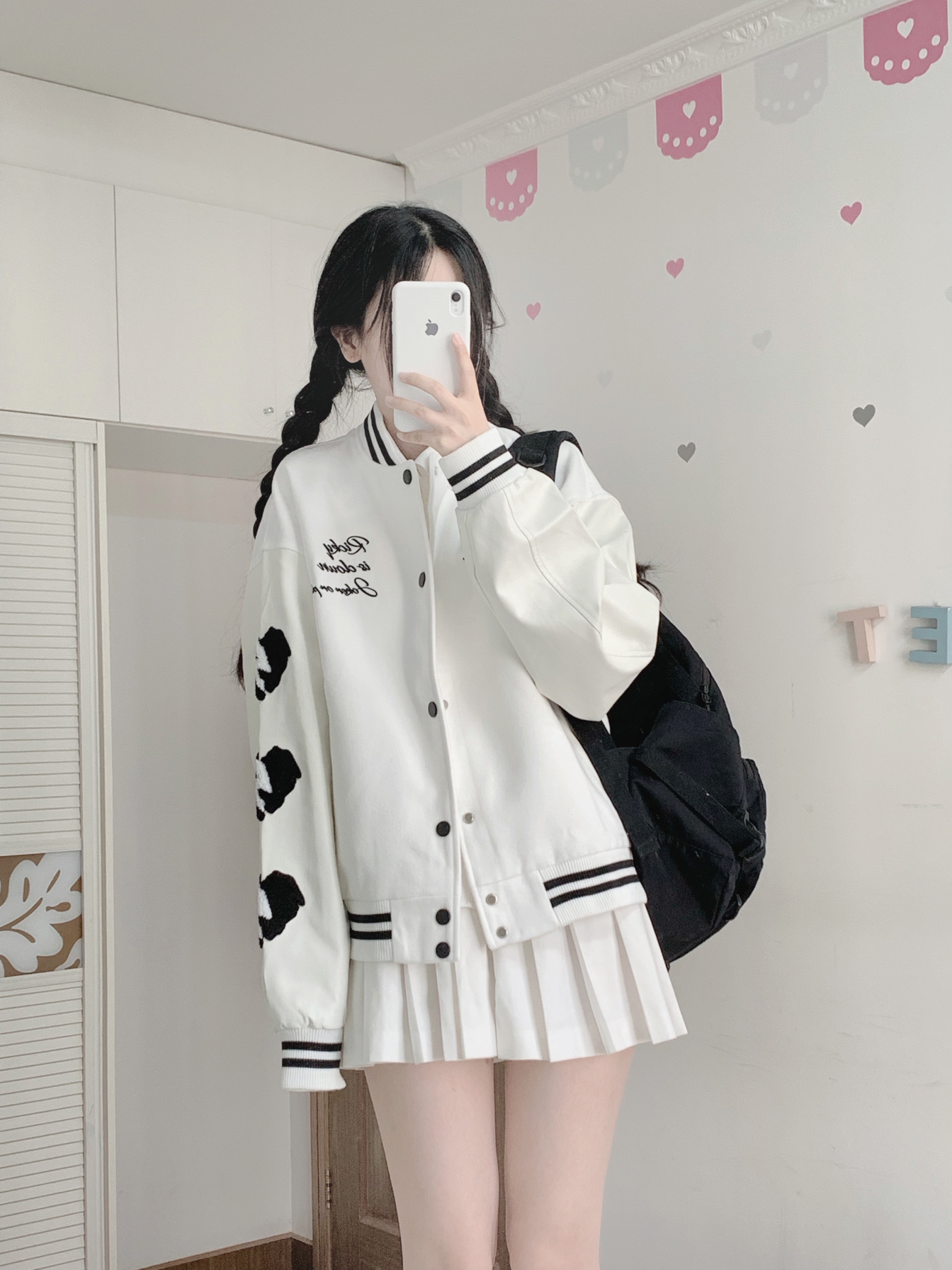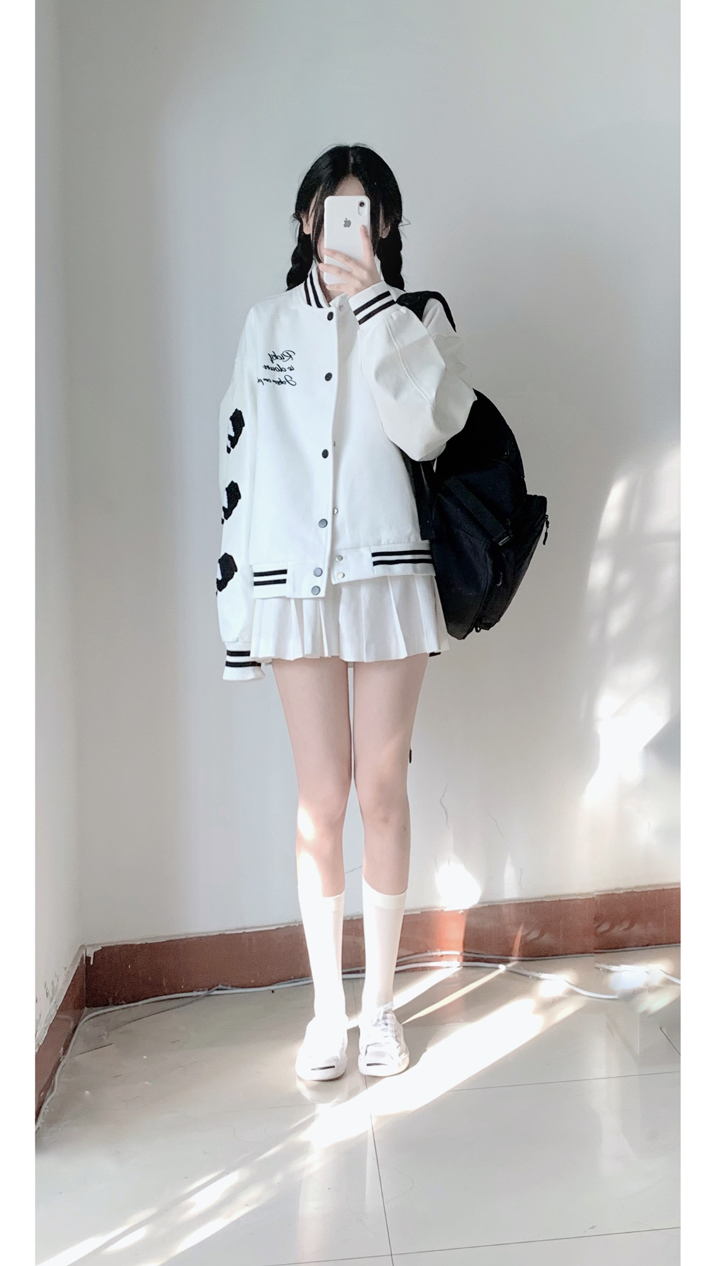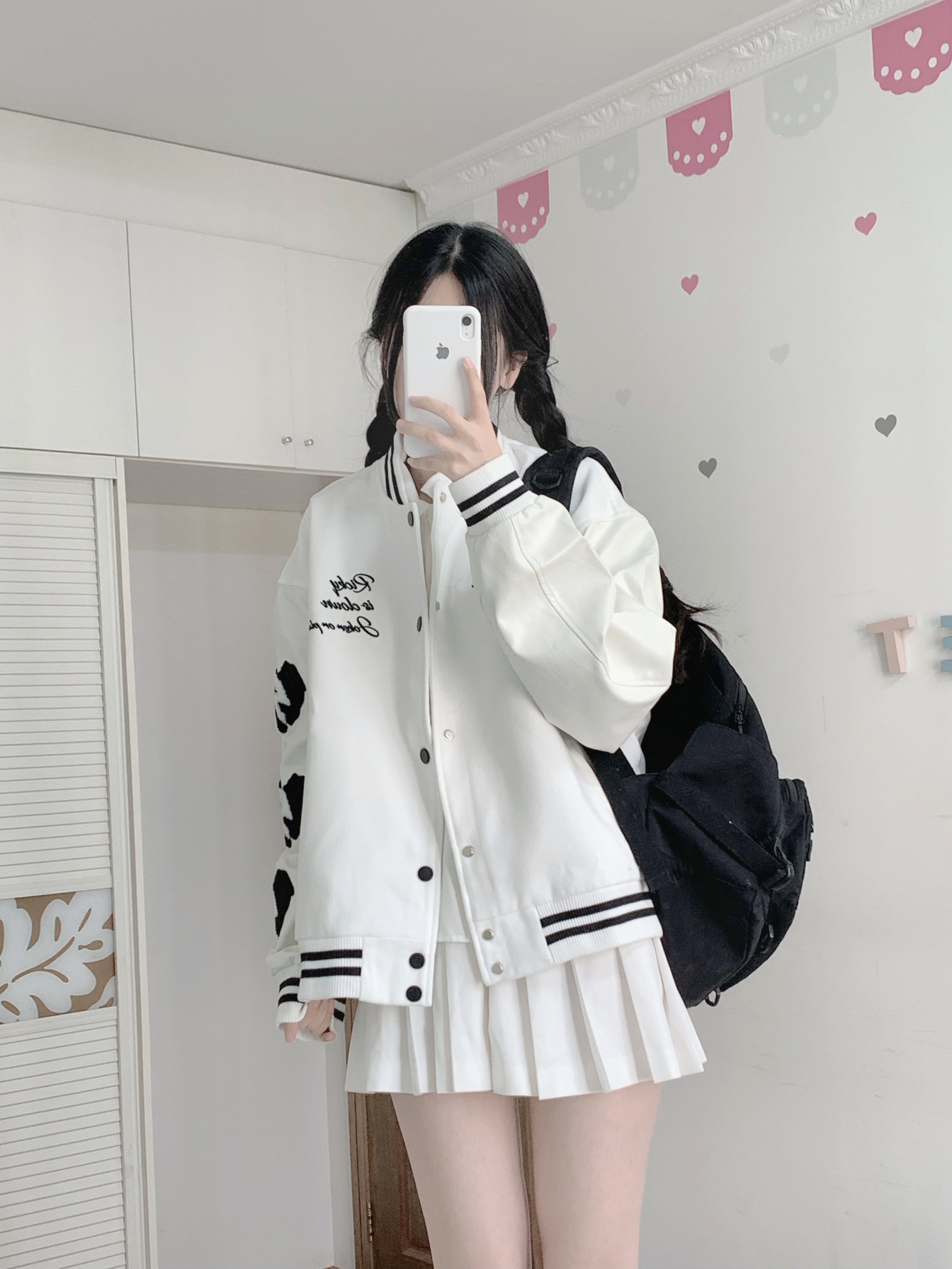一身白的我怎么样嘻嘻 手袖是皮的 也不用担心弄脏 一擦就行了哈哈 还有加棉版本的 冬天穿都ok 搭配 白色棒球服 RickyisClown 我170穿的s 很合适 Ootd | 170穿搭 | 深秋搭配 | 秋季穿搭 | 显瘦穿搭 | 复古棒球服 | 白色棒球服 | 美式复古风穿搭 | #秋季穿搭[话题]# #棒球服[话题]# #外套[话题]#