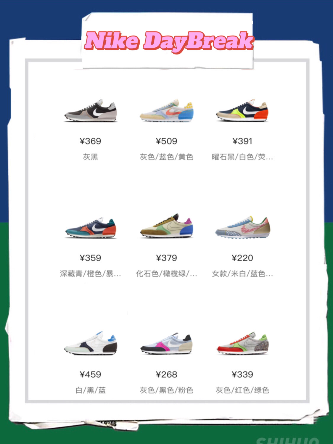① . AF1 Air Force 1于1982年推出,由设计师 Bruce Kilgore 操刀设计,摒弃了传统帆布鞋风格,突破性的使用内嵌式 Air Sole 气垫缓震系统,并将其与横跨复古与现代的外型结合,造就出风靡全球三十多年的 Air Force 1,直到今天还深受青睐。 ② . Air Monarch lV Nike Air Monarch IV 诞生于2013年,凭借复古朴素...