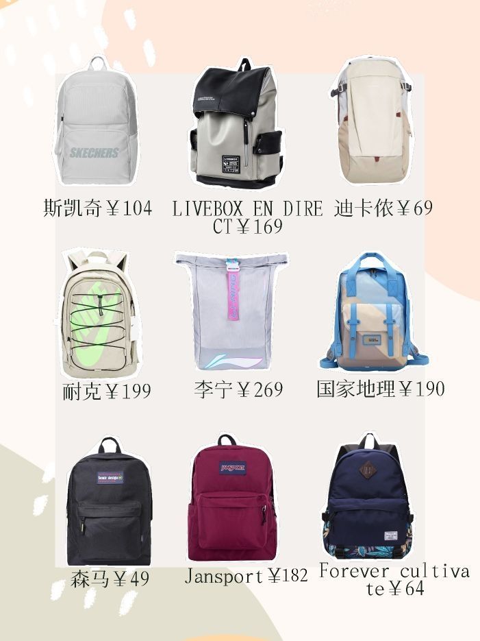 1⃣️Skechers 旅游运动休闲男女双肩背包 背包🎒空间很大,平板完全没问题,拉链也是真心的丝 滑,性价比还是可以的。适合上学,休闲,出去旅游玩, 百搭! 2⃣️LIVEBOX EN DIRECT 背包 精选优质面料,具有很好的耐磨性,易于保养, 经得起时间的磨练。轻巧的身材拥有较大容量,分类整理 收纳,更加方便快捷。 3⃣️迪卡侬 纯色休闲双肩包 双11推荐!!!迪卡侬双肩包 迪卡侬的东西一...