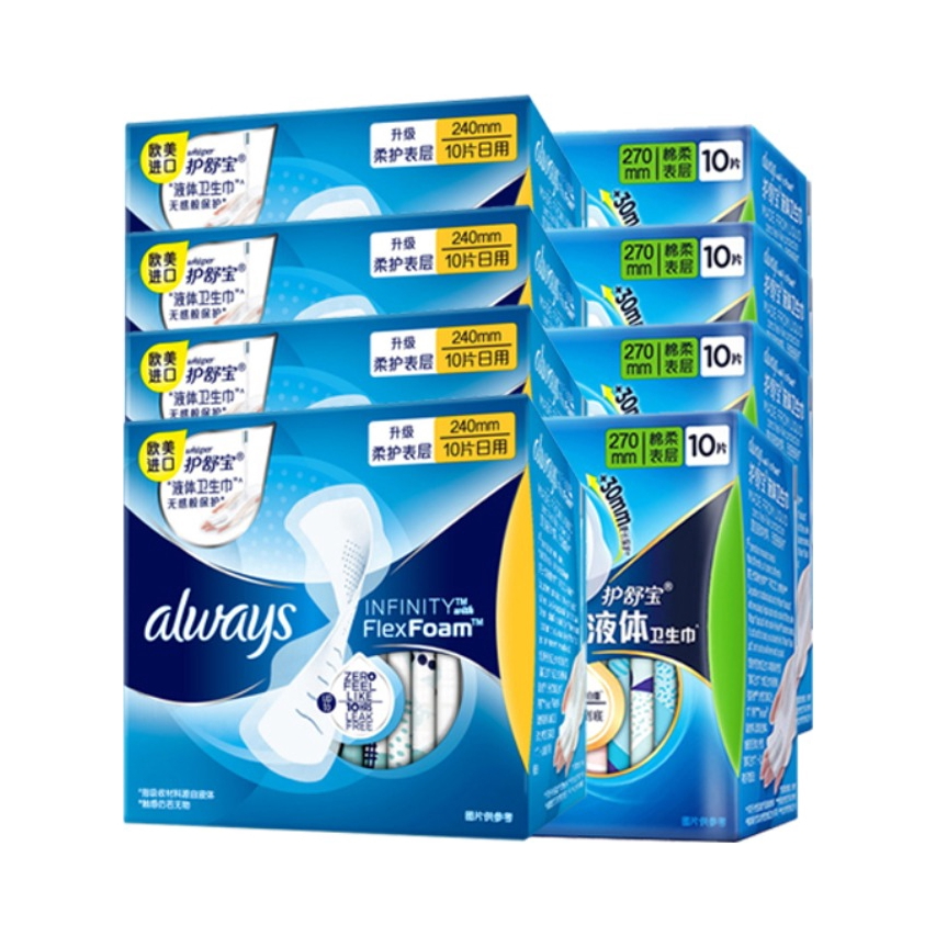 本篇笔记关联了whisper/护舒宝 always未来感日用夜用无感卫生巾组合装 新液体超薄量多 【80片】240mm10片*4+270mm10片*4等商品,为用户提供真实的使用体验和购买参考。