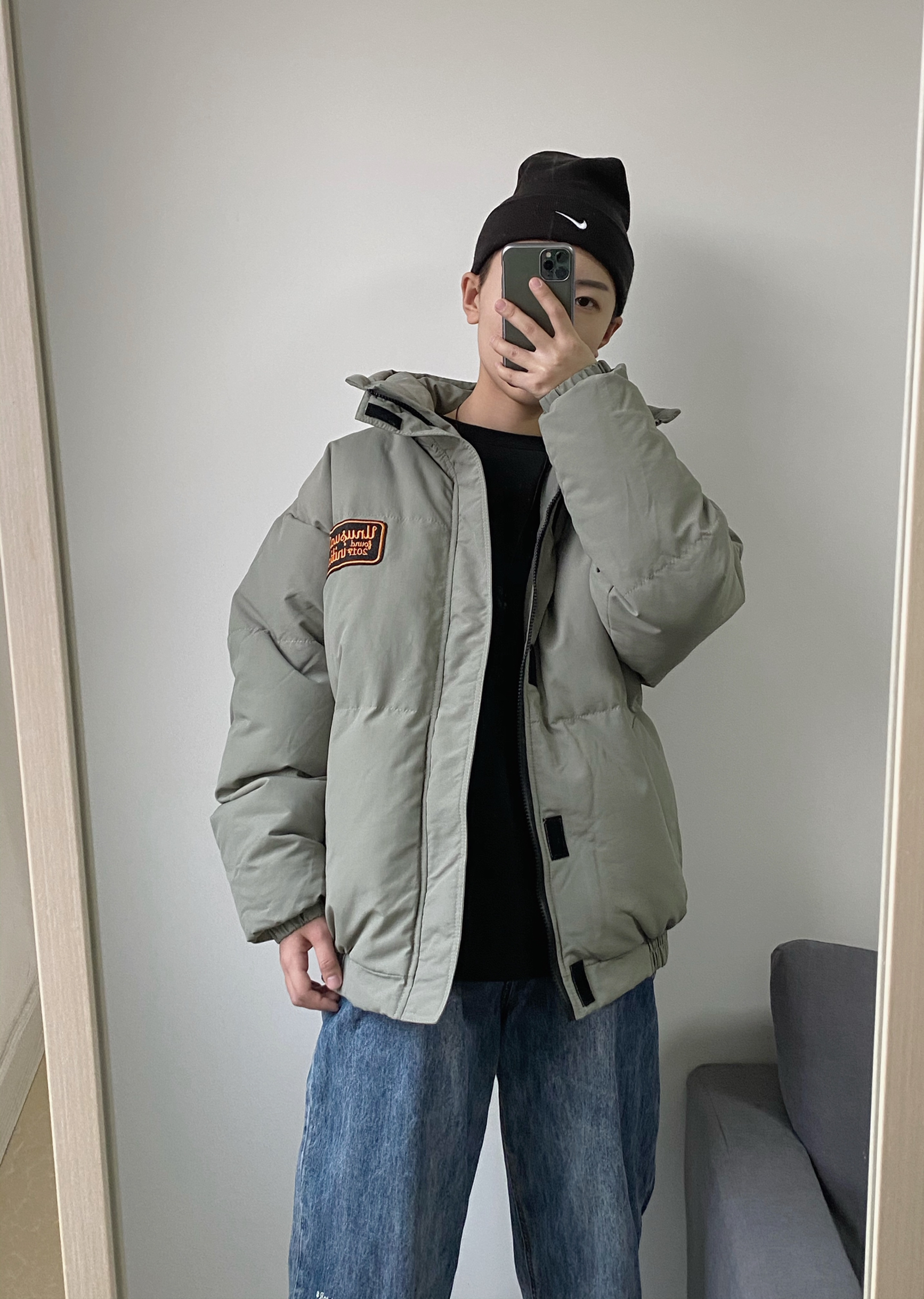 一秒降温 推荐一身小个子男生可以穿的厚棉服穿搭 👔是白告studio的灰绿色羽绒棉服 超级暖和 过冬足够了 👖是废克赛文蓝色水洗牛仔裤 👟搭配一双875棕色工装靴 超帅的一身冬季穿搭~