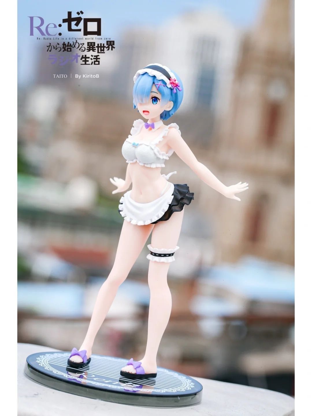 TAITO|从零开始的异世界生活 😘今天又开一个蕾姆,看包装还不知道这套皮肤是什么名堂,一查才知道叫“女仆泳装”,不说以为是什么“简约清爽女仆装”。 😉TAITO还是依旧的稳,无论是整体的动态设计还是面雕。 🤗面雕可谓甜美可人,体态虽没有特别动感,但身体前倾,双手后摆,俏皮中带着点好奇,好奇又带着一点期待,宛如第一次看见大海。 🤔整体来说这款没什么特别,但也没什么毛病,辨识度稍微低一点,真爱制霸直...
