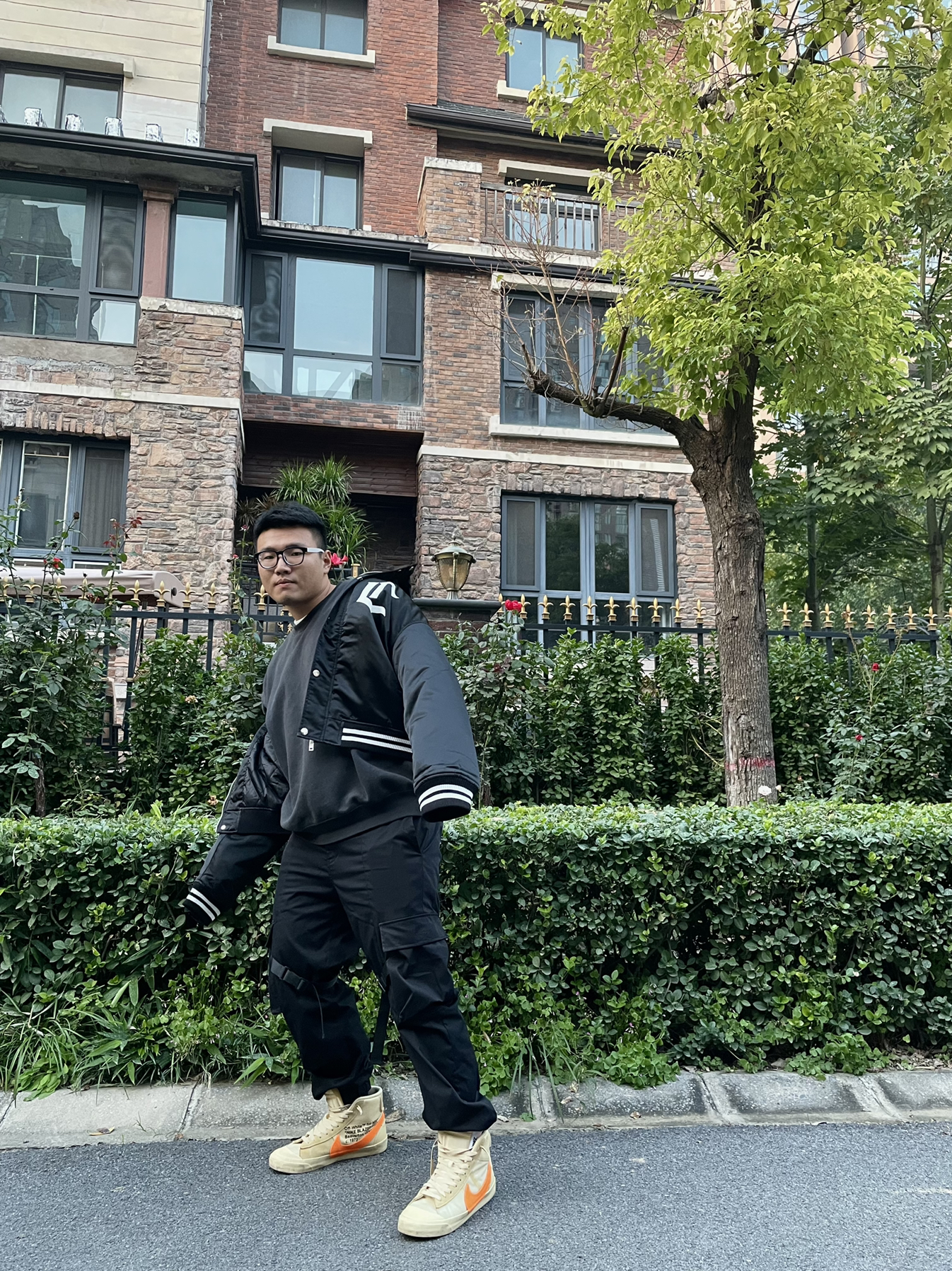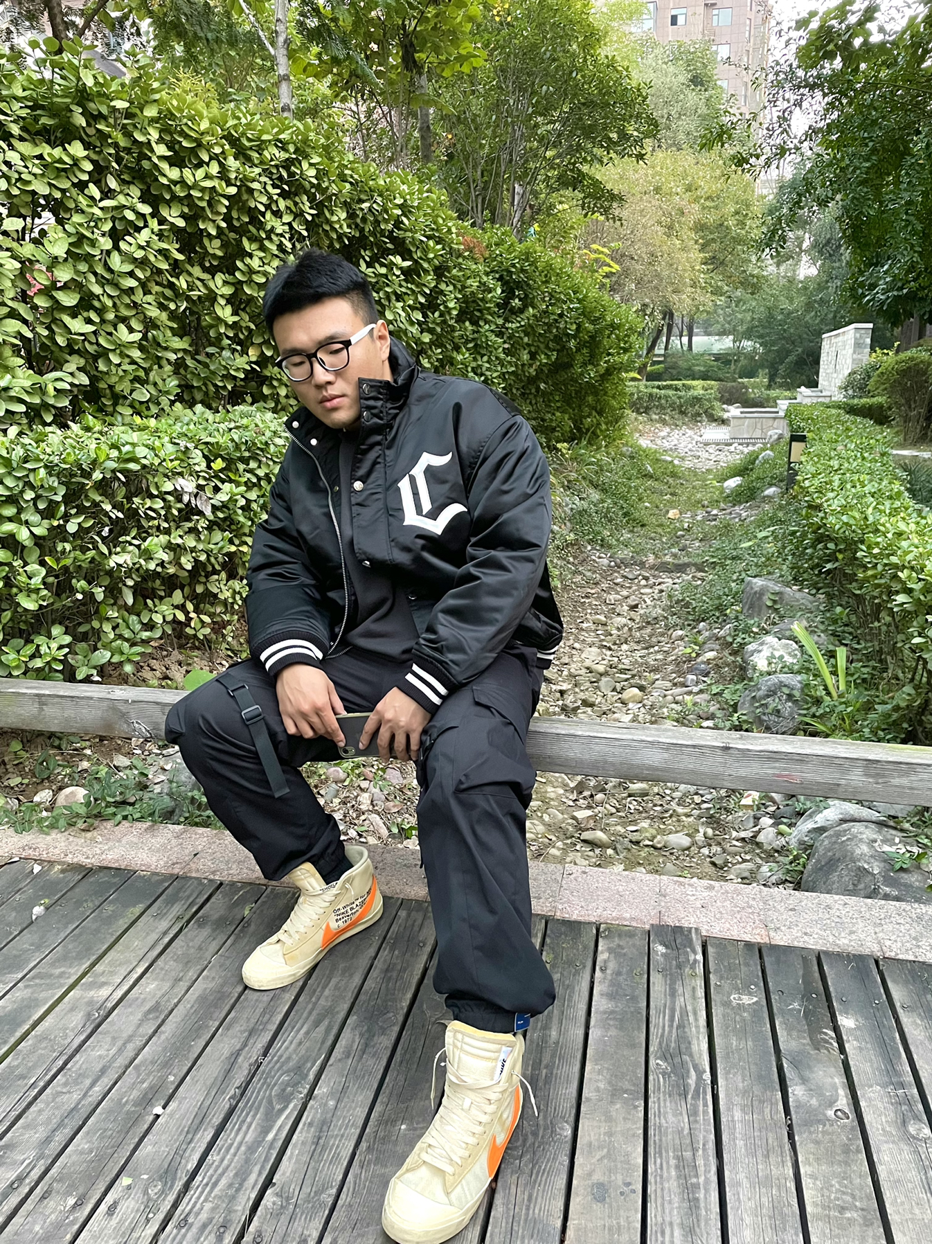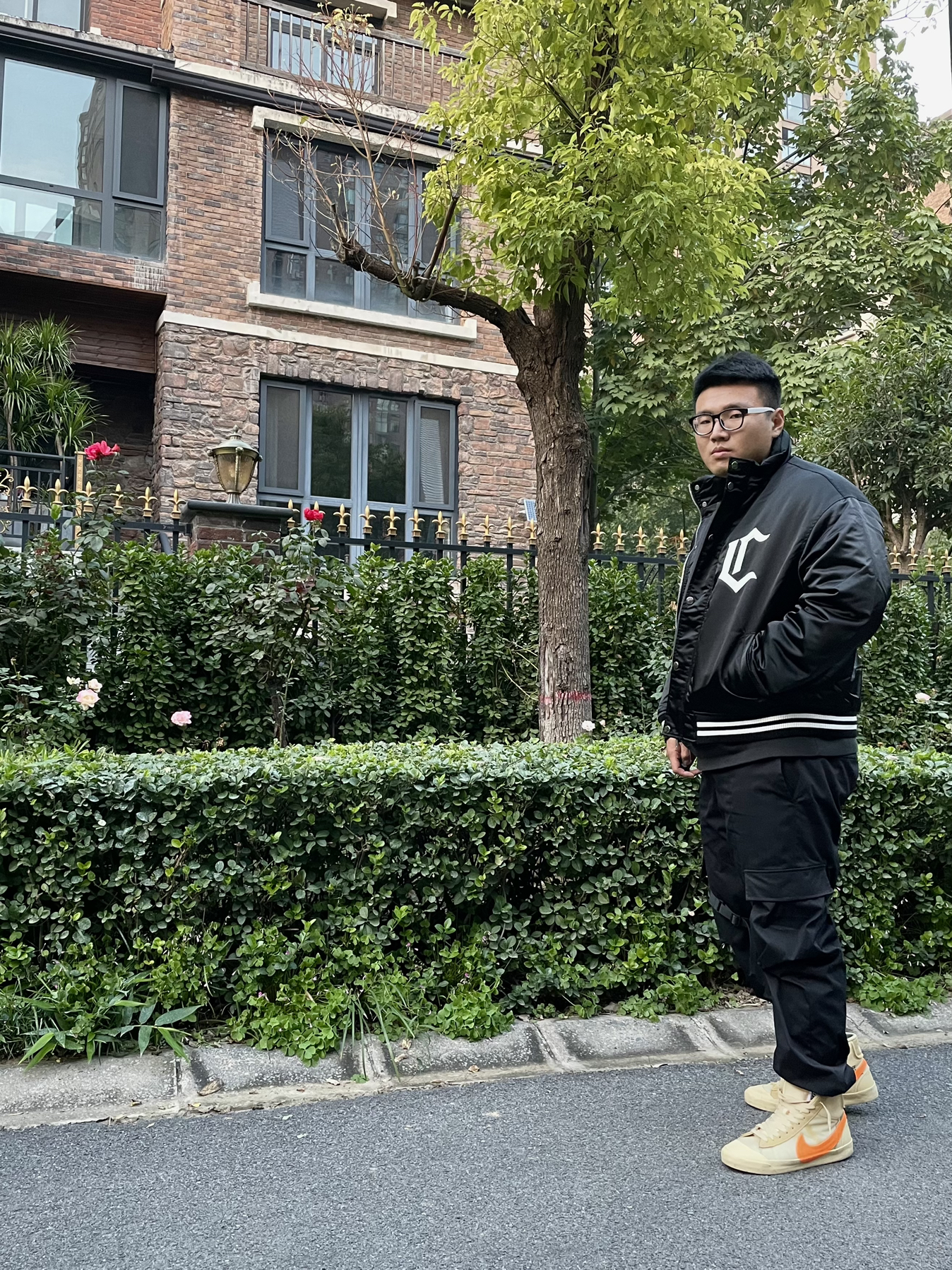 OOTD|来自一个180-100kg的小胖子每日穿搭分享 上衣 chinism飞行员棉服 衣服采用了飞行员夹克造型,胸口有大c的刺绣非常的个性,厚薄程度适中适合大家入秋穿着,下摆处也做了黑白拼接色,平时里面穿搭卫衣也都非常的舒服。 裤子 float 鞋子 ow万圣节