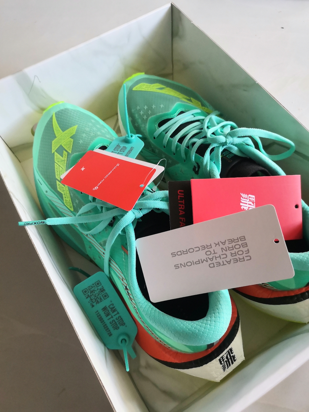 一直听说特步的跑鞋很牛批,国产所有高端跑鞋都穿过了,觉得再牛批能牛到哪里去,直到上脚...服了,感觉跟某洋货那款"一场废"真的有一拼,巨型碳板加持,巨厚的"超轻超回弹"中底,稳中带爆炸,要不是保安拦着差点在商场里跑起来,服!特步!进入视野范围!!!