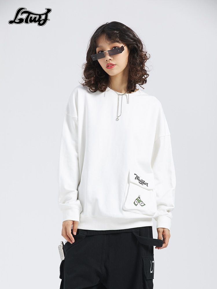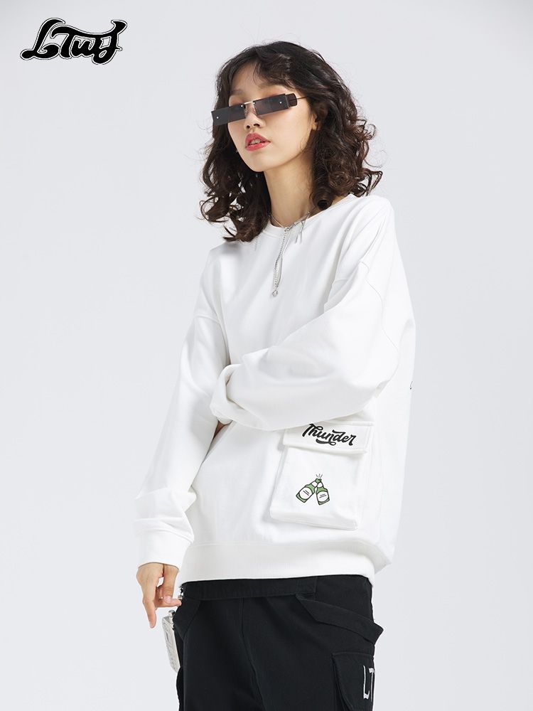 OOTD 多袋毛巾绣白色卫衣穿搭 180CM 70 KG 穿2XL 172CM 47KG 穿L 👔卫衣:LTWJ 雷霆万钧旗舰店 这款圆领卫衣采用的是360克纯棉毛圈底针织布,版型超正质量真的绝绝子,而且码数宽松又百搭。 衣服正面左下角是一个翻盖式立体口袋,上面有小小的胶印印花,点缀卫衣前面的素色,衣服背面是小恶魔的毛巾绣搭配原创英文的胶印印花,质量炒鸡好 机洗手洗都不掉,整...