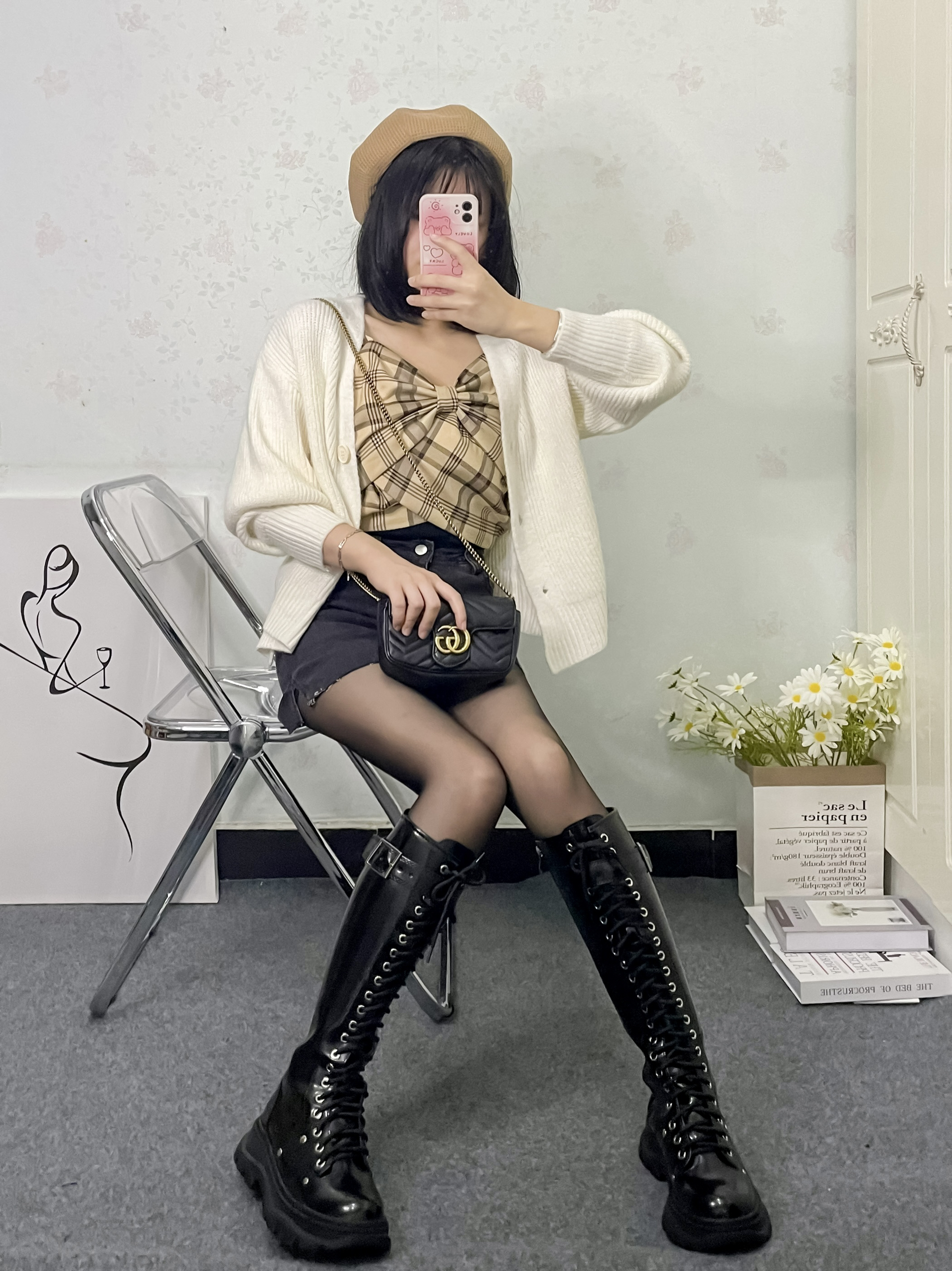 秋冬天的穿搭 韩范儿就很吸睛了 韩系高级穿搭万能公式✨ 🤎浅棕色内搭:最好是有点样样子的 🤎白色开衫:注意不要太长 🤎灰黑裙子:一定要搭短裙 什么样的都行 颜色最好选灰黑的,会显得很高级。 🤎黑色鞋子:一定要长靴子 鞋子:麦昆长靴 整体的色彩注意都不要太跳,不然很乱哟。 在搭配一个链条⛓️包,什么样都可以 但是要链条的,这样一身才会显得有质感! 觉得冷可以搭一个长外套🧥 叠穿在外面,这样室内...