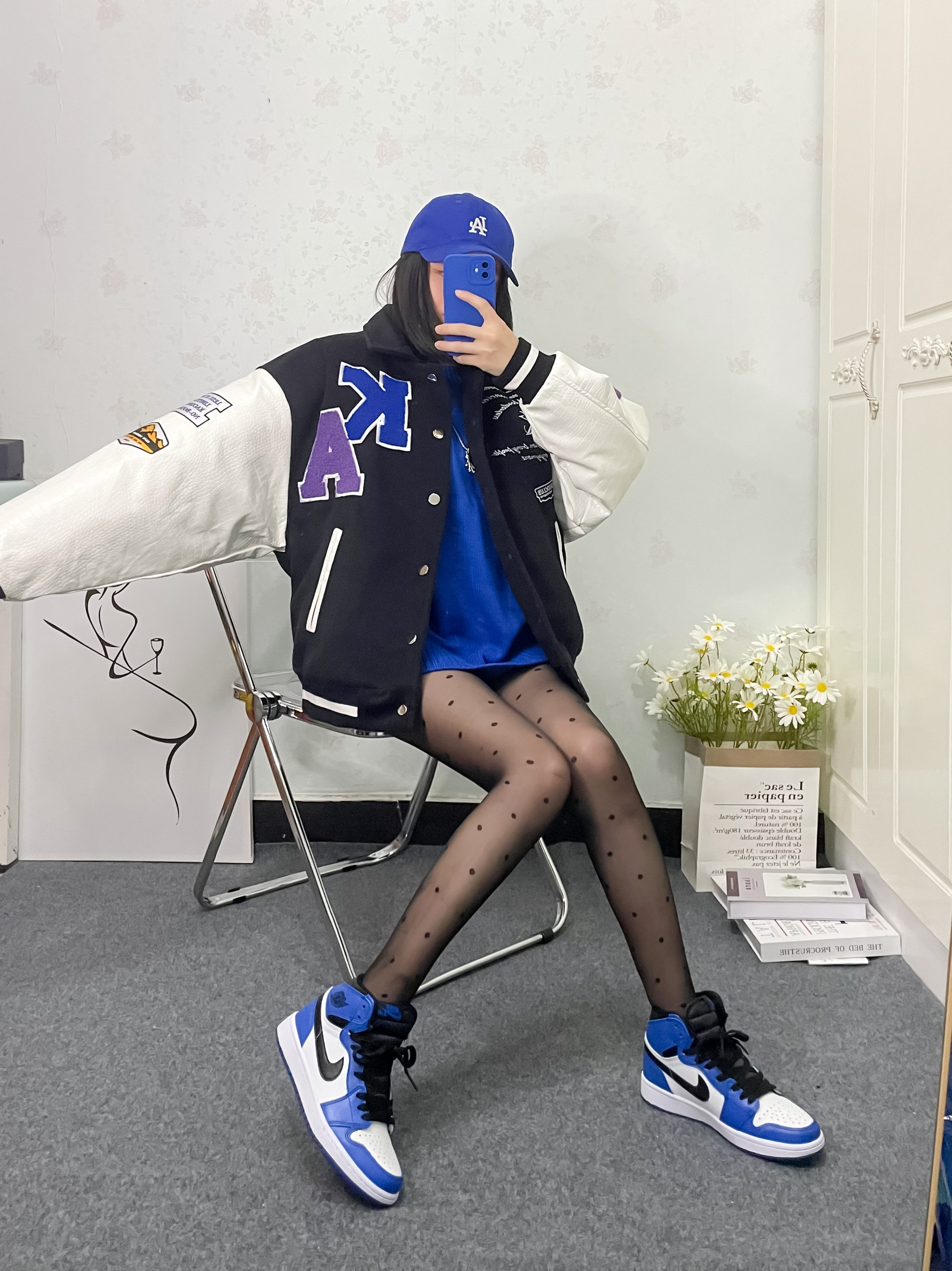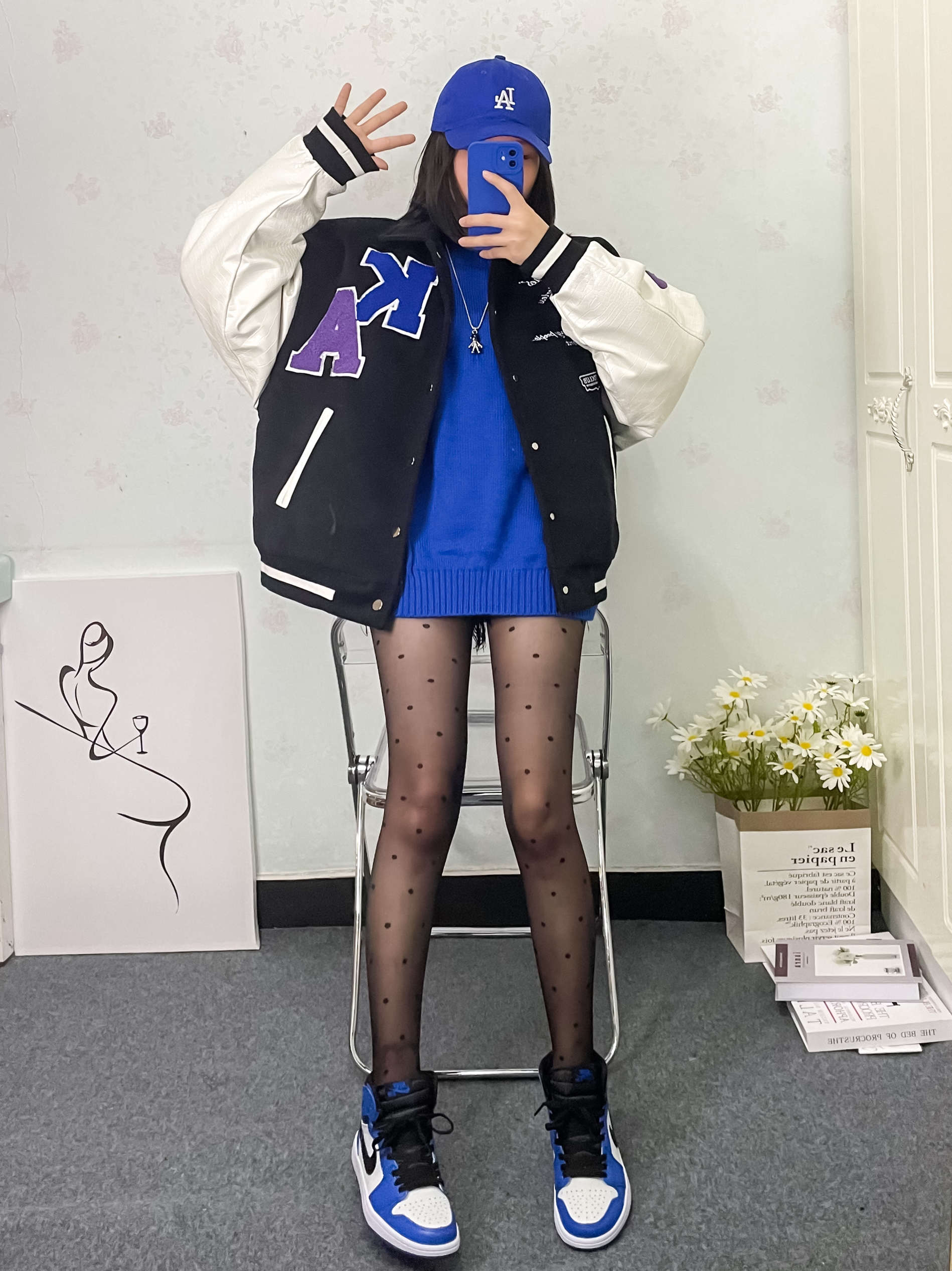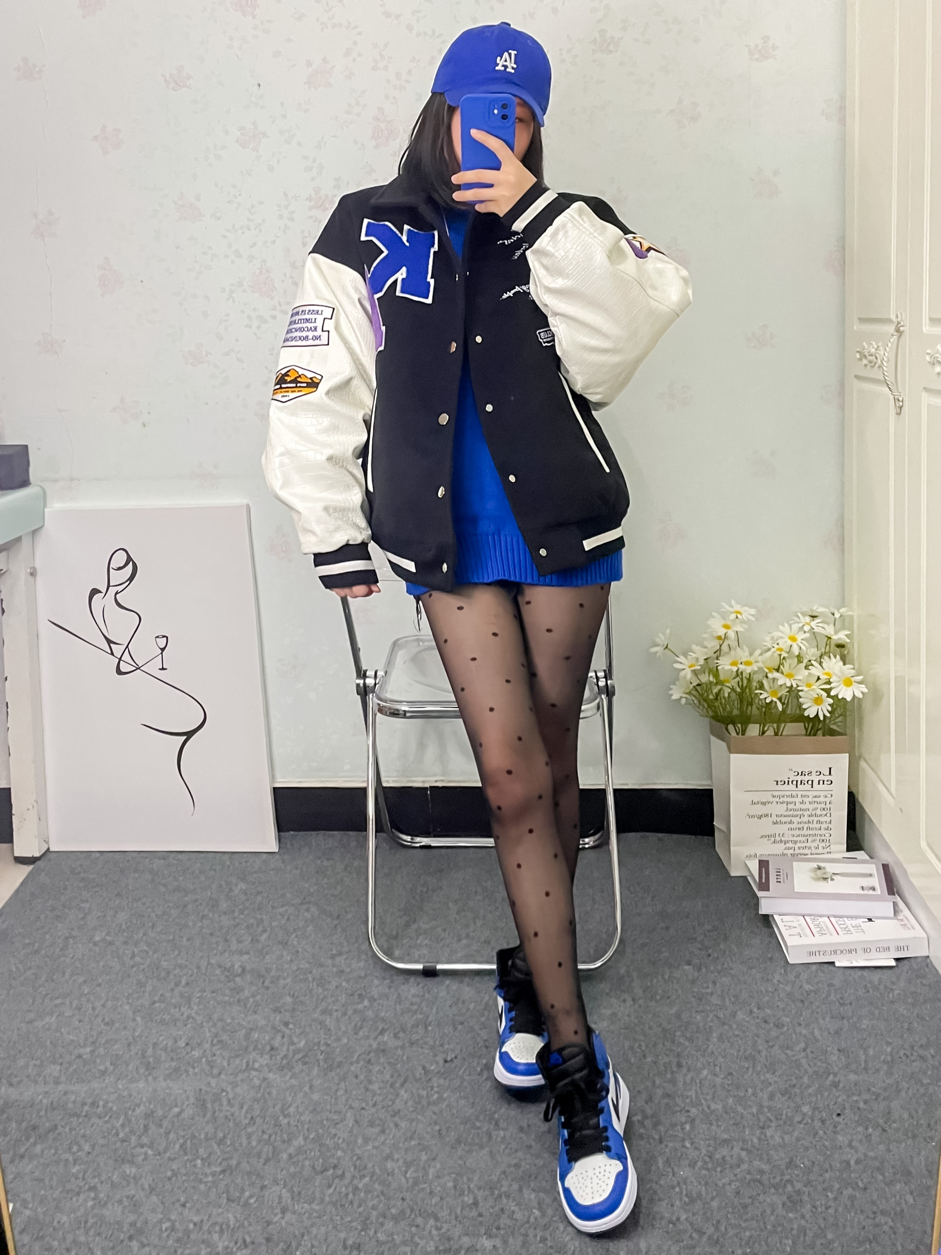 克莱因蓝我要把你们搭腻 哈哈 秋天搭配真的很出效果 超简单的穿搭公式✨ 💙克莱因蓝毛衣 纯色的 不要有杂色哈 💙棒球服外套 黑白色都可 我身上是黑色的 这款很暖和 冬天下雪能穿 💙小闪电 不一定非要小闪电 蓝鞋就行 💙克莱因蓝棒球帽 小细节留住它 棒球服就要搭棒球帽🧢