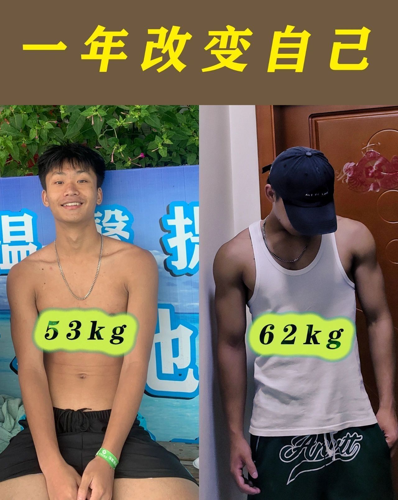 接触健身差不多三年多了 左图是大一时候的自己身材简直惨不忍睹 后来接触健身大一大二和室友乱练 大三才开始正经系统化训练 直到现在 易瘦体质真的很难长肉 这几年变化还是有的 努力还是有收获的 同志仍需努力 继续加油努力增肌💪