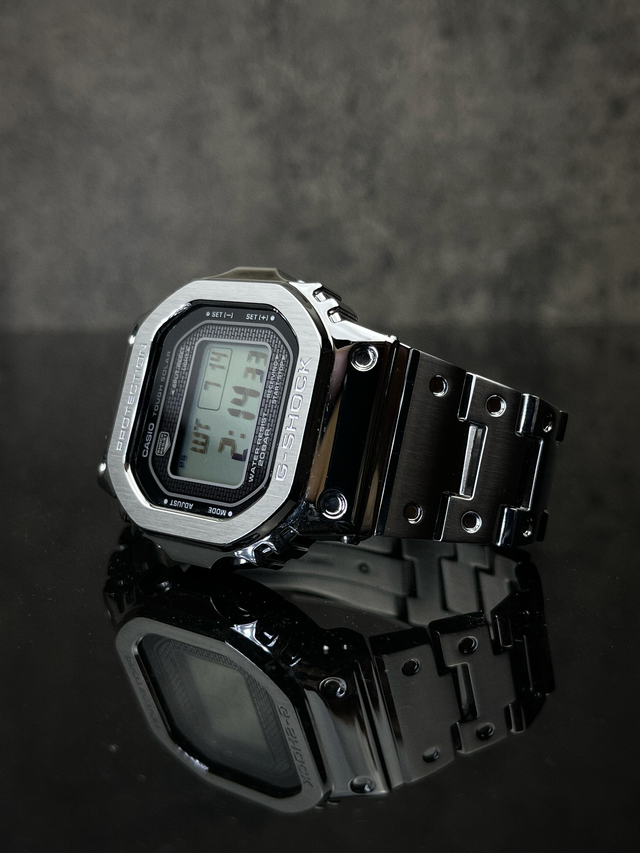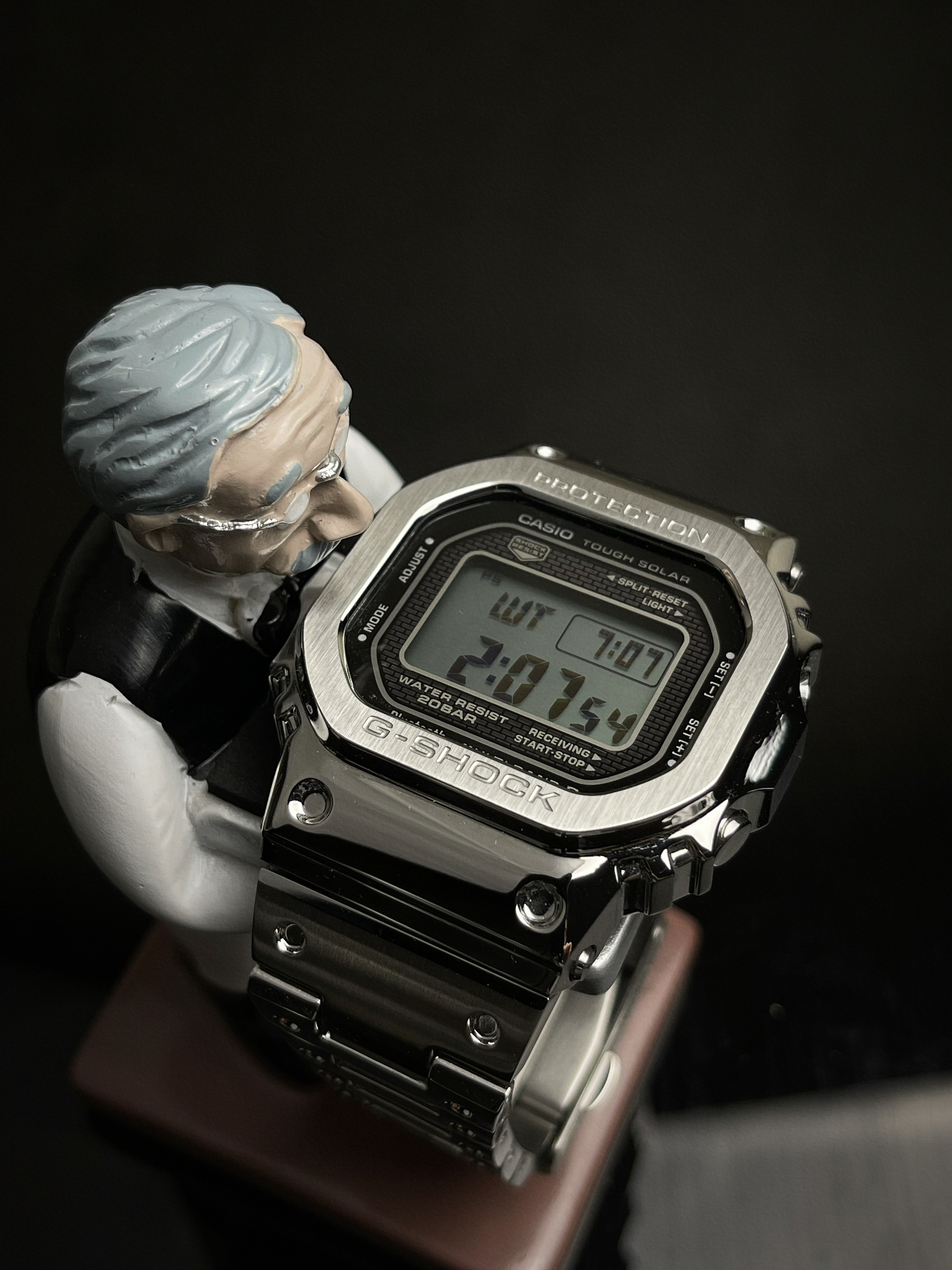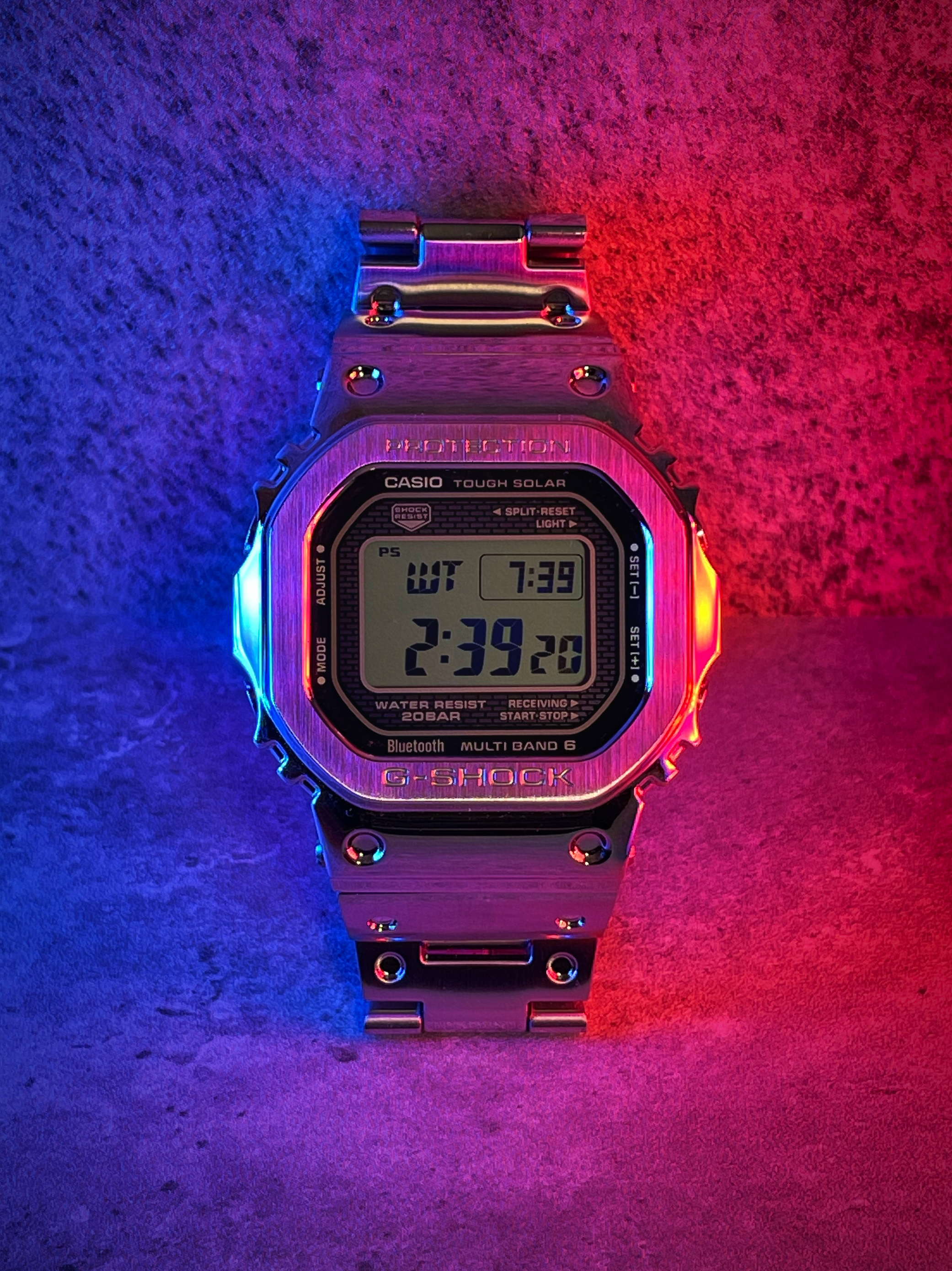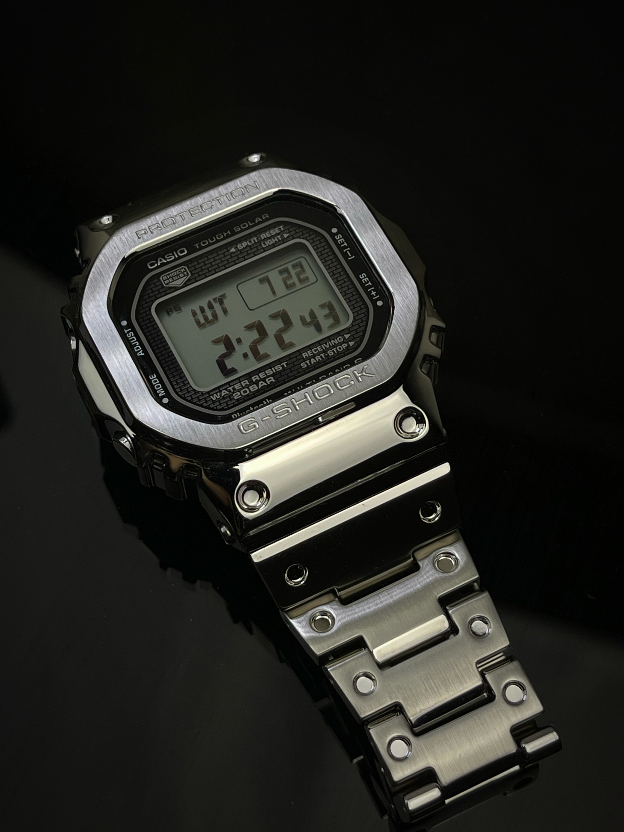 终于还是加入了GMW-B5000的家庭 目前金属小方块已经出了很多种颜色了 但还是最中意银色这款 低调奢华 不像金色那么的浮夸 全金属的材质戴上去挺有分量的 但是在细节处理上比之前胶质的要细腻很多 表圈和表扣采用拉丝处理 其他地方都是镜面抛光 在光照下显得很有质感 手表采用太阳供能 不必担心电池会没电 蓝牙和gps功能可以直接和手机配对 免去了调时间的烦恼 200米防水应该是5000系列的标配 ...