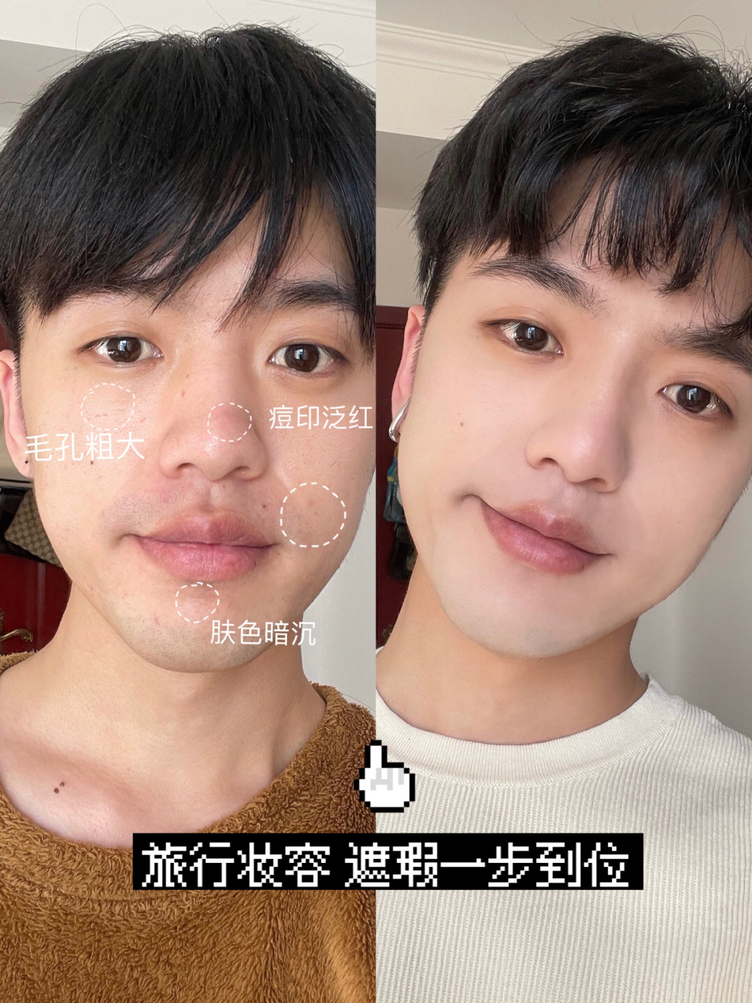对精致的猪猪男孩来说,出门旅行最重要是就是拍出帅帅的照片了。一张干净整洁,带着好气色的脸是帅气照片的关键,所以有时候皮肤造反的时候,也避免不了上底妆。但是为了减轻负重,旅行时我带的东西往往是能少则少。 最近几次拍摄,我用的底妆都是欧莱雅男士新出的修颜乳,一瓶可以满足我所有需求。使用起来方便,在脸上均匀抹开就行。挤出来是乳霜质地,很好推开,上脸后会慢慢变成哑光的感觉,而且在外面拍摄一整天也不会泛油光...