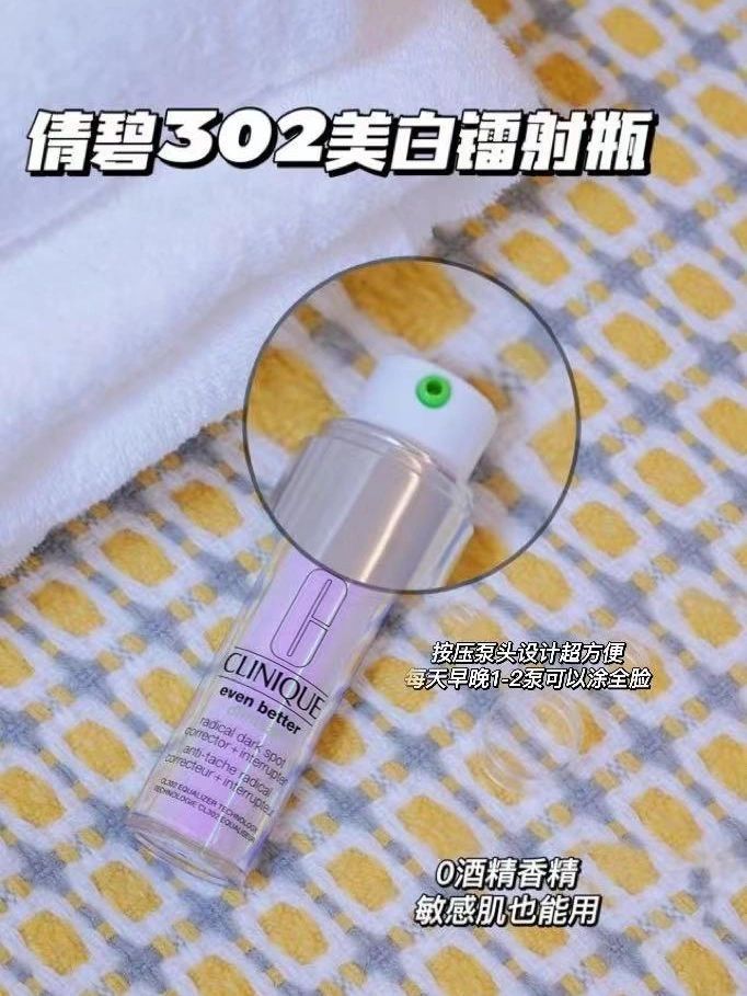 我给大家说句实话吧,身边几乎所有女生都想变成冷白皮(包括我!) 我的朋友都知道我是黄皮并且对于美白这件事念念不忘 所以我对于各种美白精华可以说是如数家珍 而我最近就找到了一款新宠: 倩碧302美白镭射瓶 我之前因为熬夜,把皮肤熬得黄里黄气的 然后我就每天早晚2泵镭射瓶往脸上涂 不出半个月,我的暗沉黄气就消失了 而且整张脸变得透亮光滑 值得一提的是这款精华还是无酒精香精的哦 很温和对于min感肌的姐...