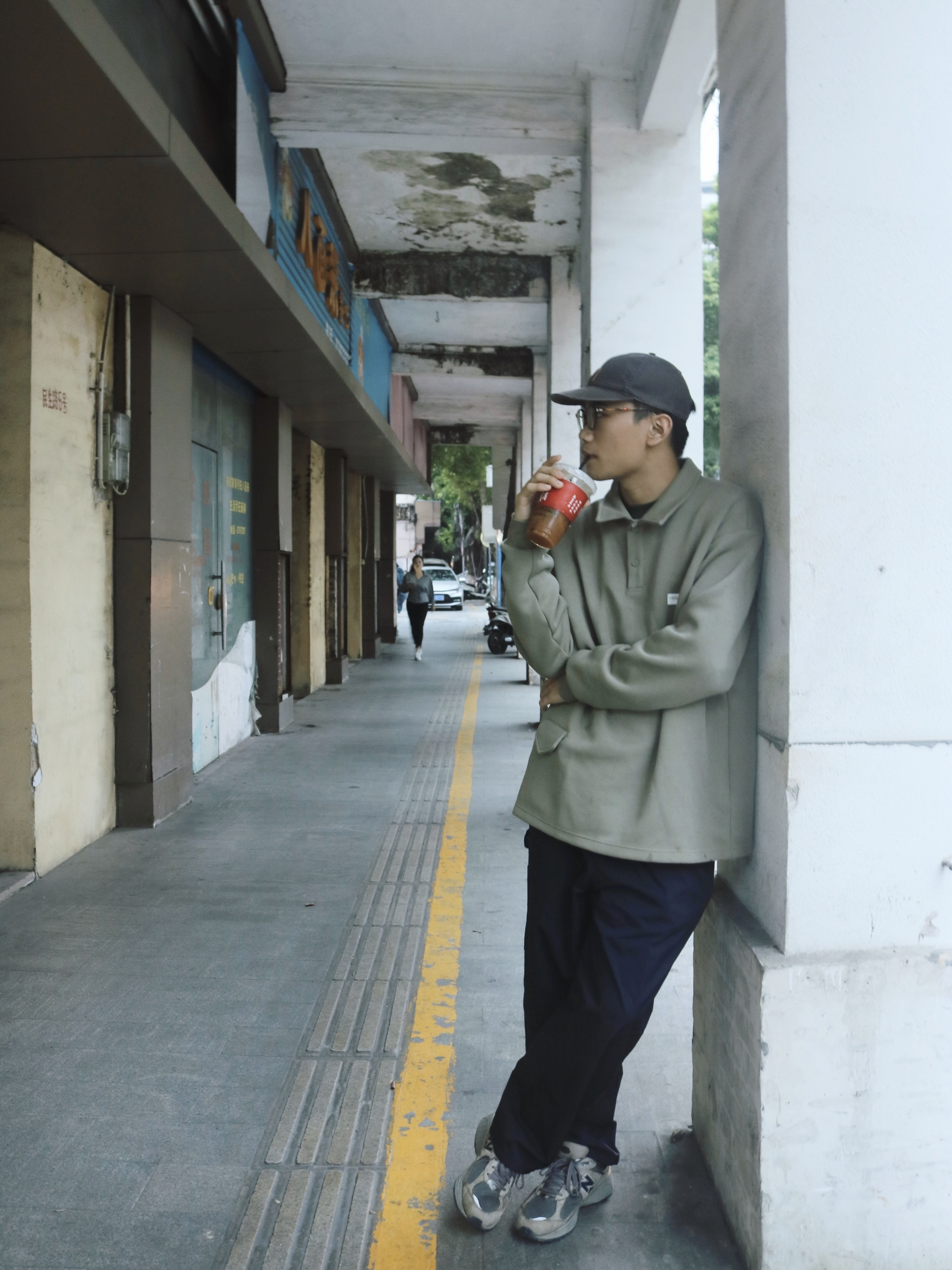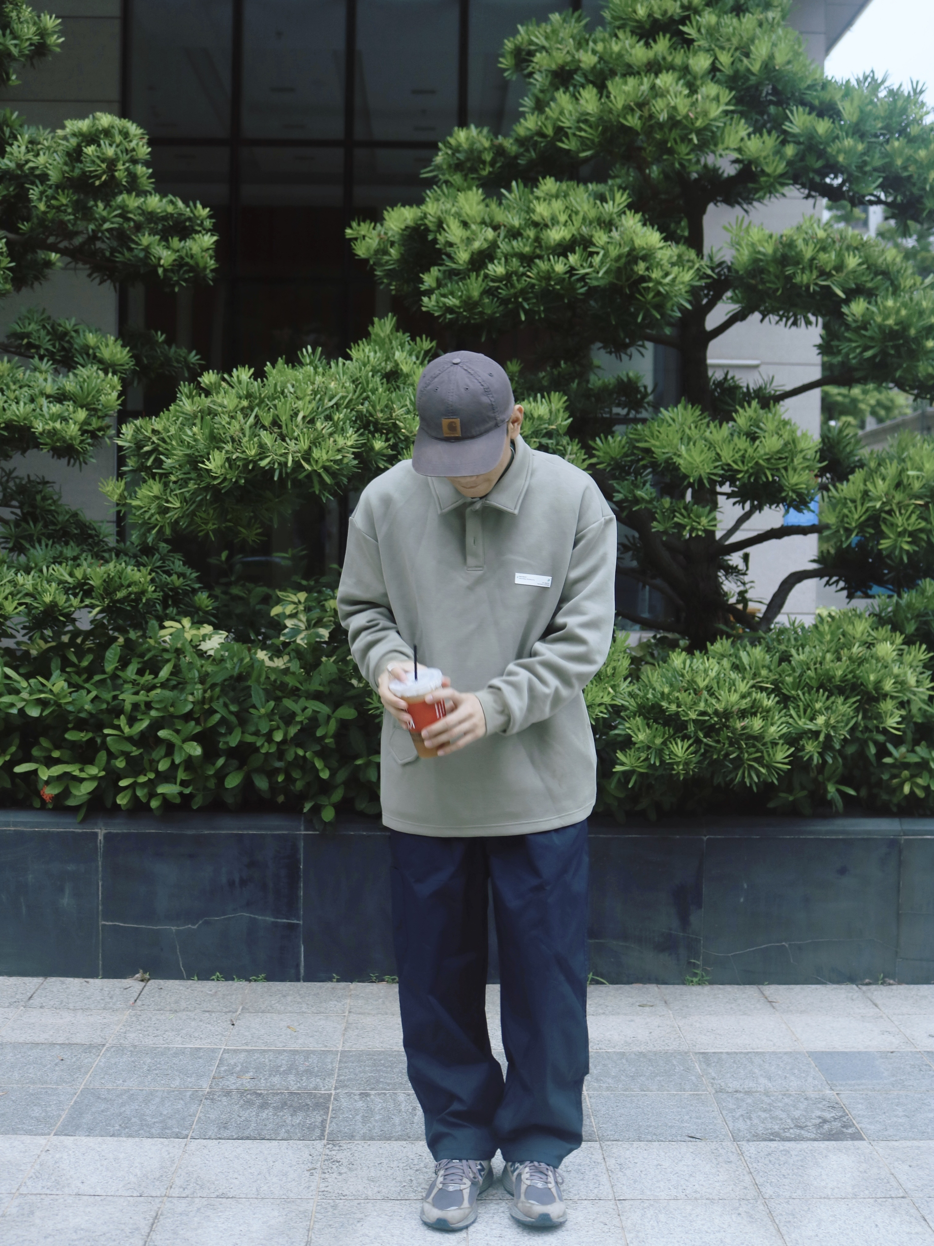 上身搭配的是设计新颖的一款卫衣 采用Polo衫的版型 落肩款的廓形设计 穿着舒适休闲~ 搭配藏青色的休闲工装长裤 版型宽松直筒裤 质量很棒 抽绳的设计就很方便🤠 ▫️长袖:NGOARMY ▫️裤子:ROMT ▫️鞋子:New Balance 2002r