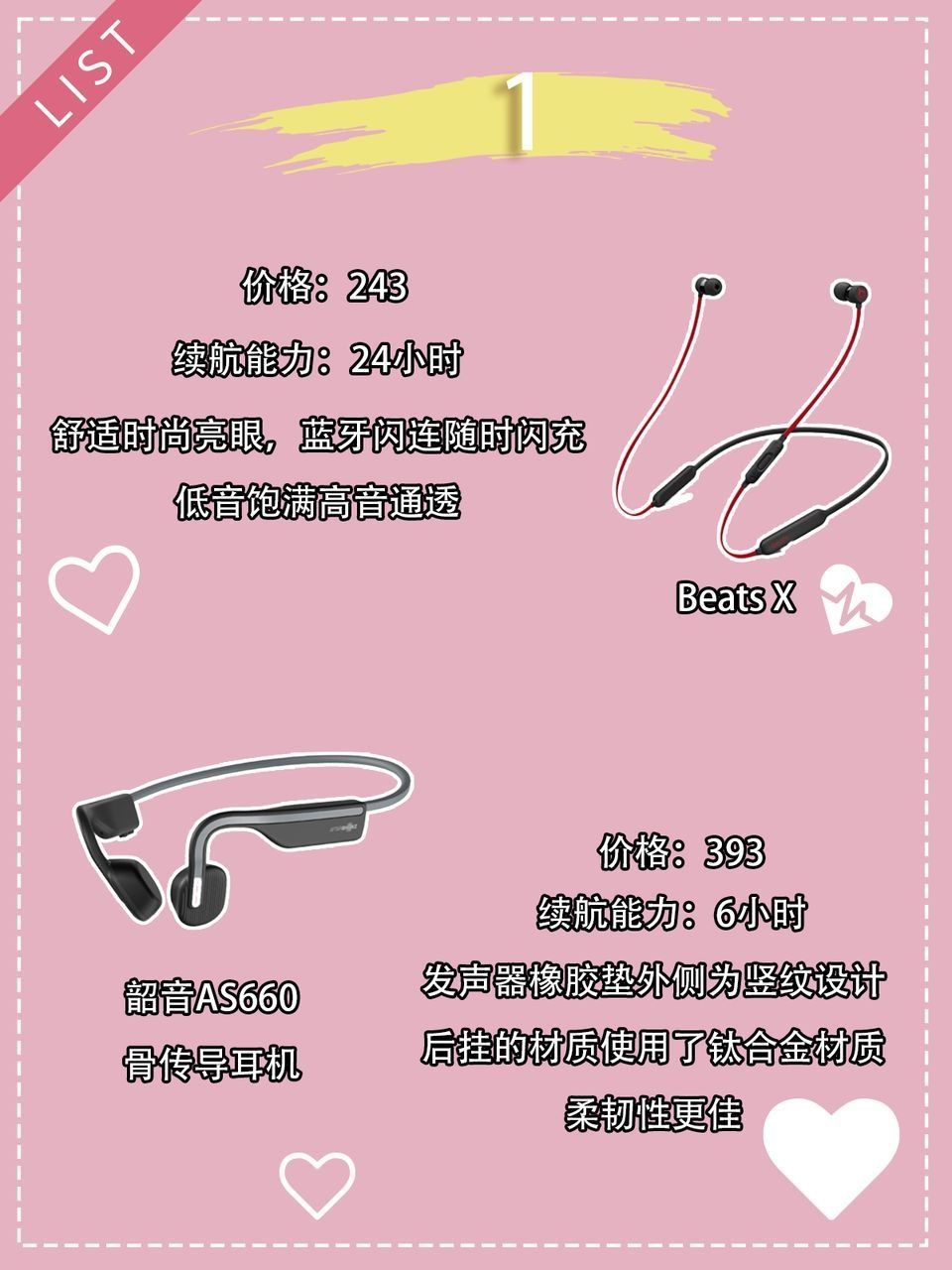 马上就要双十一了,作为我们这些热爱运动,喜爱健身的人,这双十一必须要入手我们运动最爱的运动耳机,下面给你们推荐几款运动耳机。 ✅1.Beats X ✅其采用颈圈的方式,从耳机颈部通过 Beats 标志性的线材延伸出两端耳塞单元,耳塞是入耳式设计。搭载了 Apple W1 芯片匹配,配合苹果手机,连接既畅快又便捷,另一个优势是快充,不用担心忘记充电了,而且防水很好,运动时出汗,不用担心出问题哦 ...
