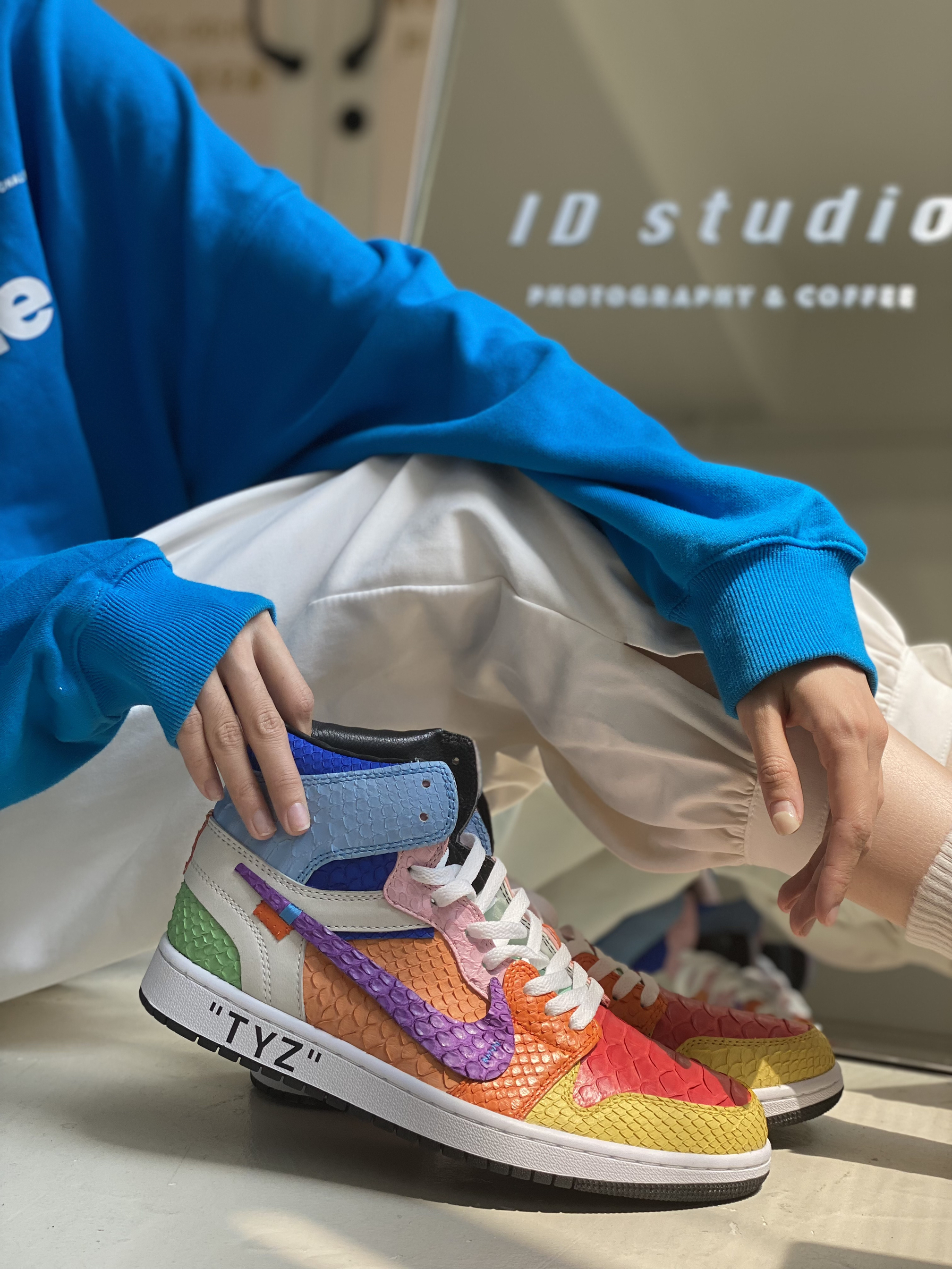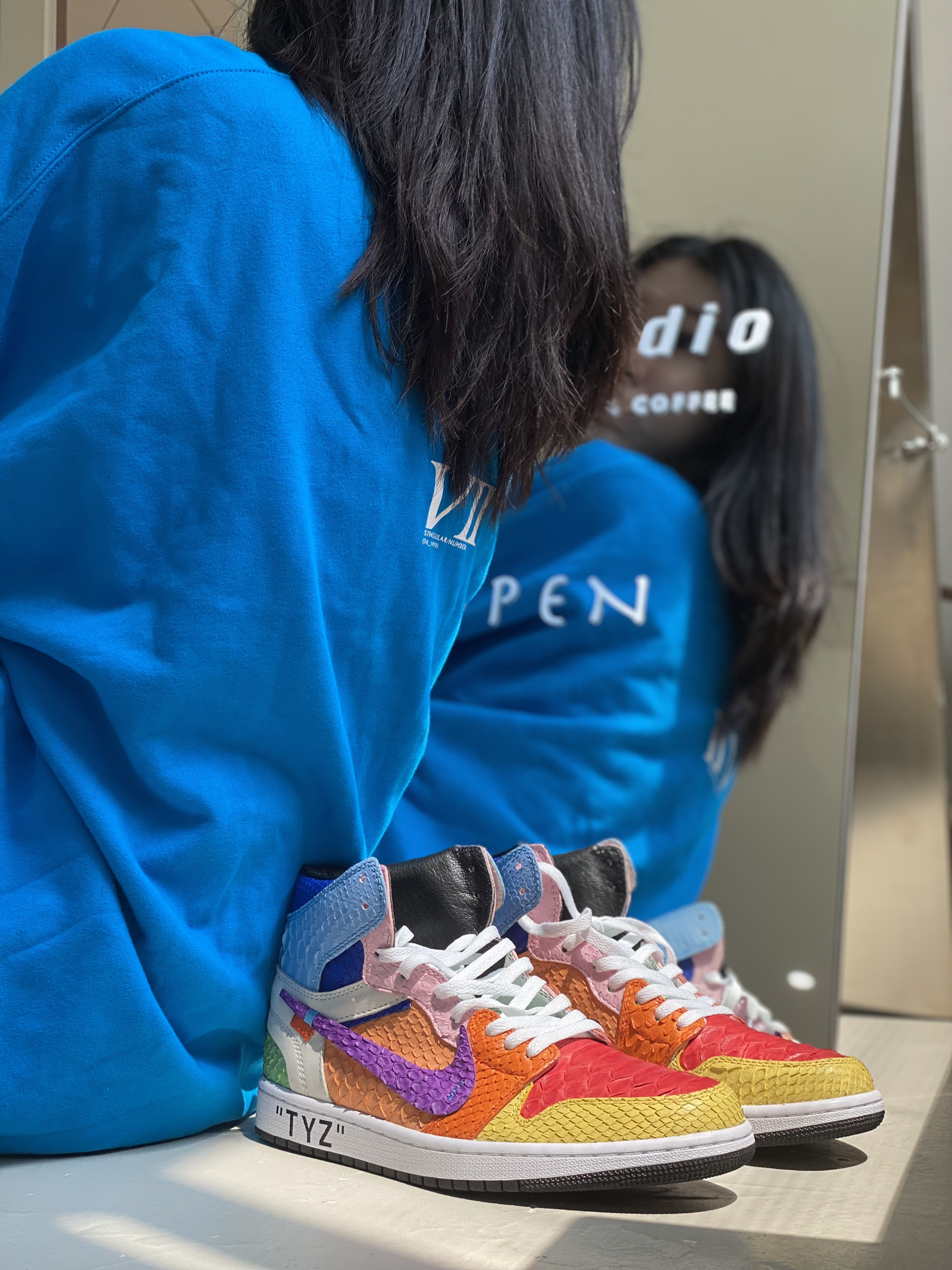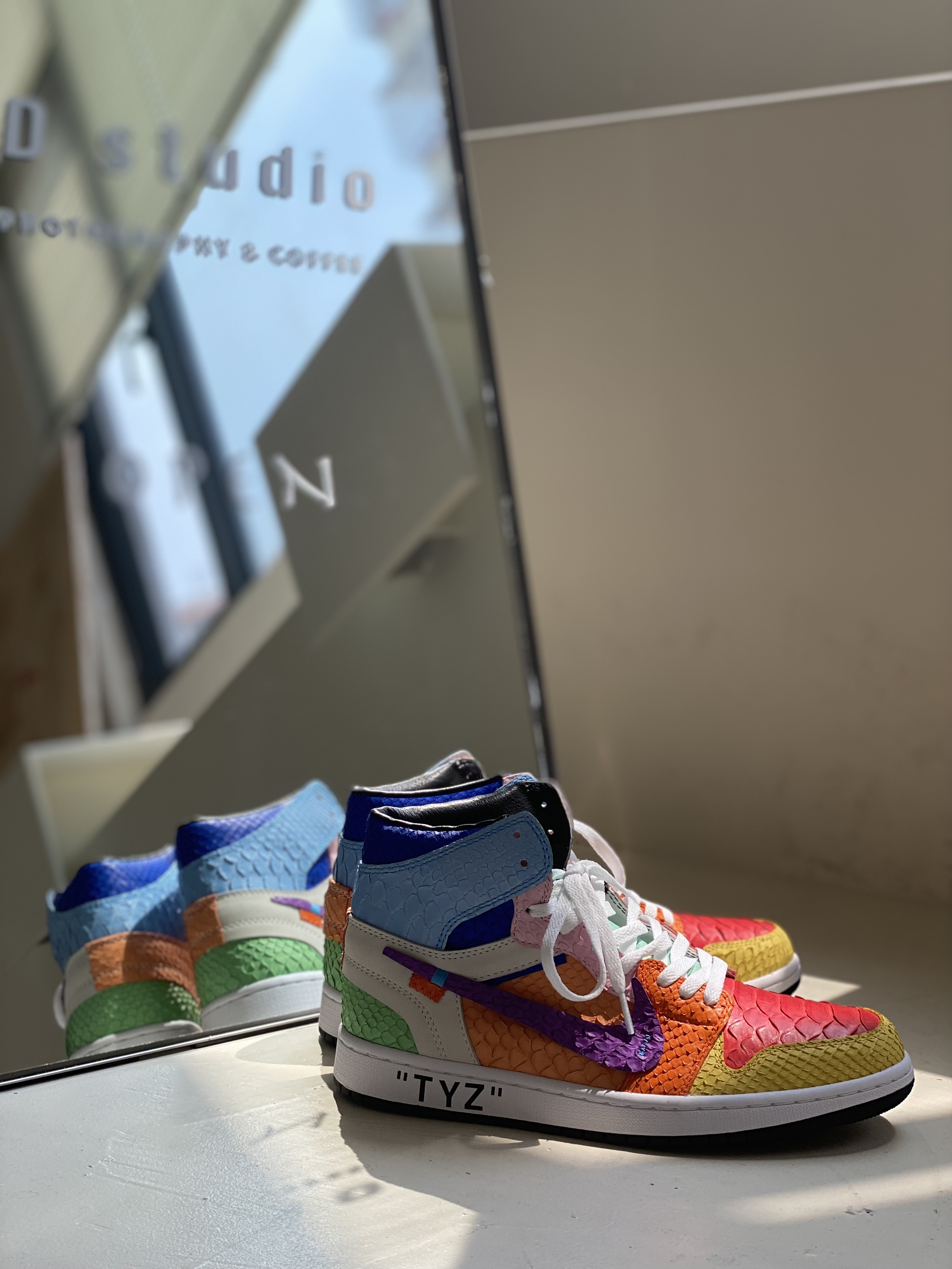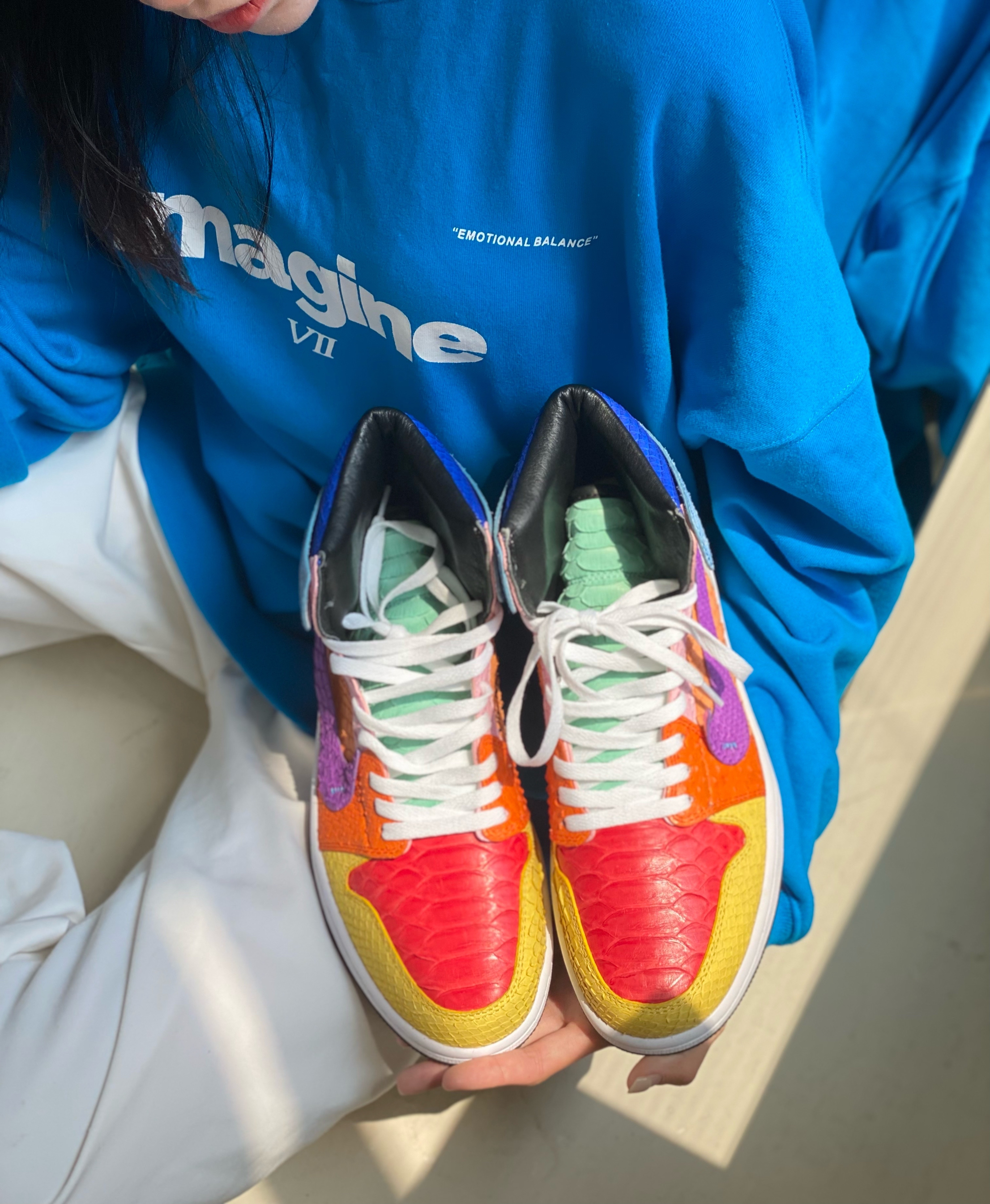 客制款全蟒蛇皮太阳花,致敬村上隆😃 今天是一个值得纪念的日子,等了这么久的鞋子终于到手,迫不及待的打开后,真是无比好看,该有的细节都有了。 对球鞋的热爱已经到了痴迷的境地,只要是喜欢的就想拥有,不知道有多少人和我一样,为了一对鞋子吃一个月馒头咸菜哈哈😃