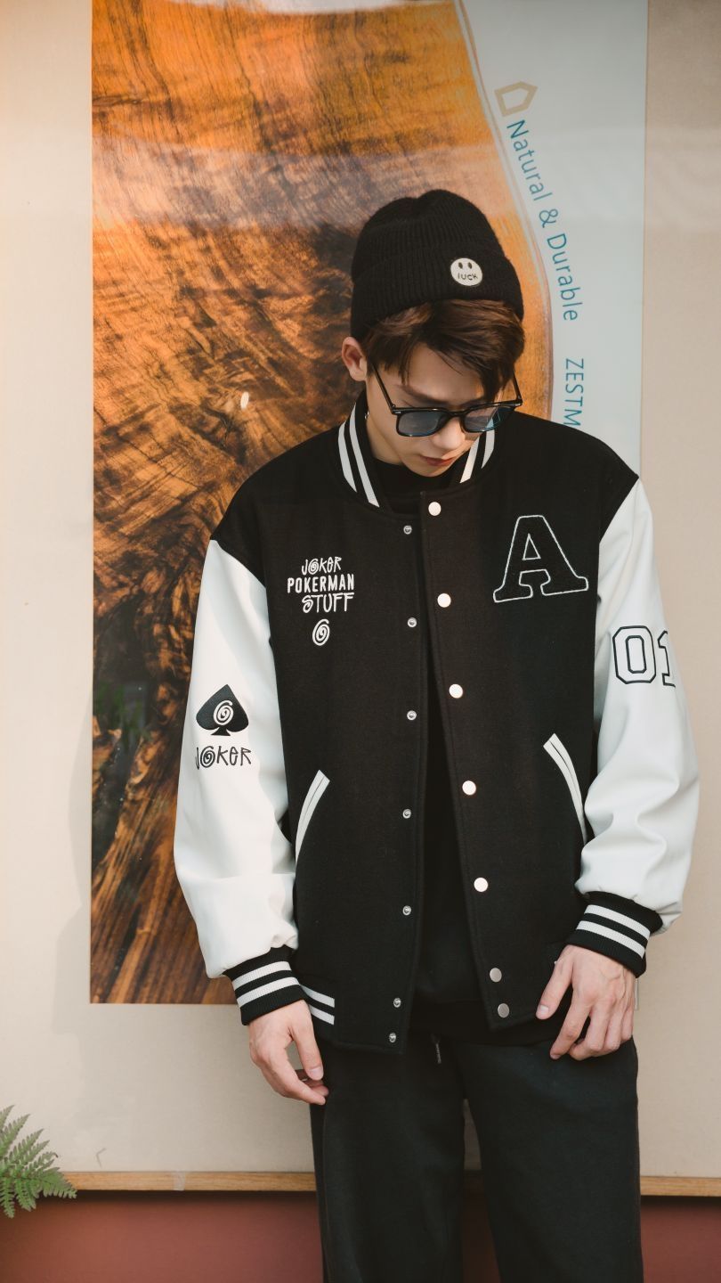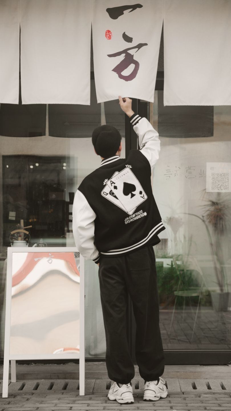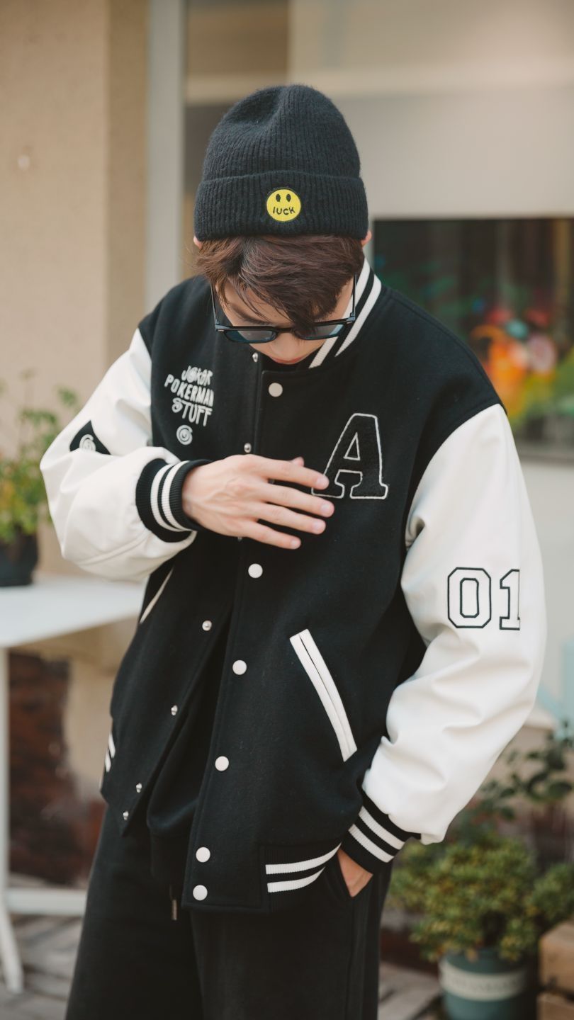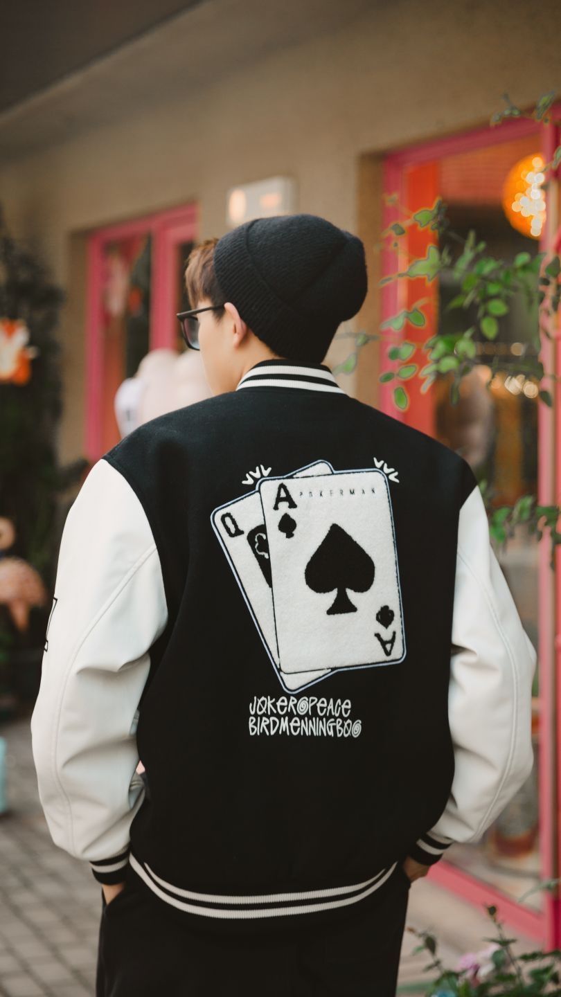 👕:PEACEBIRD 太平鸟刺绣印花拼接棒球服,主要采用羊毛和涤纶面料,保暖又舒适,而且质感十足,袖子是颗粒感的PU皮,整体是黑白两色,但是通过不同部位的刺绣印花还有材质区别,打造了丰富的层次感,衣服上的刺绣主要使用了小丑joker和扑克牌两种元素。 👟:Nike Air Monarch 4 鞋款是比较复古的老爹鞋,脚感很舒服,有一定的缓震功能但是包裹性不是特别强,比较适合日常休闲穿,整体是蓝白...