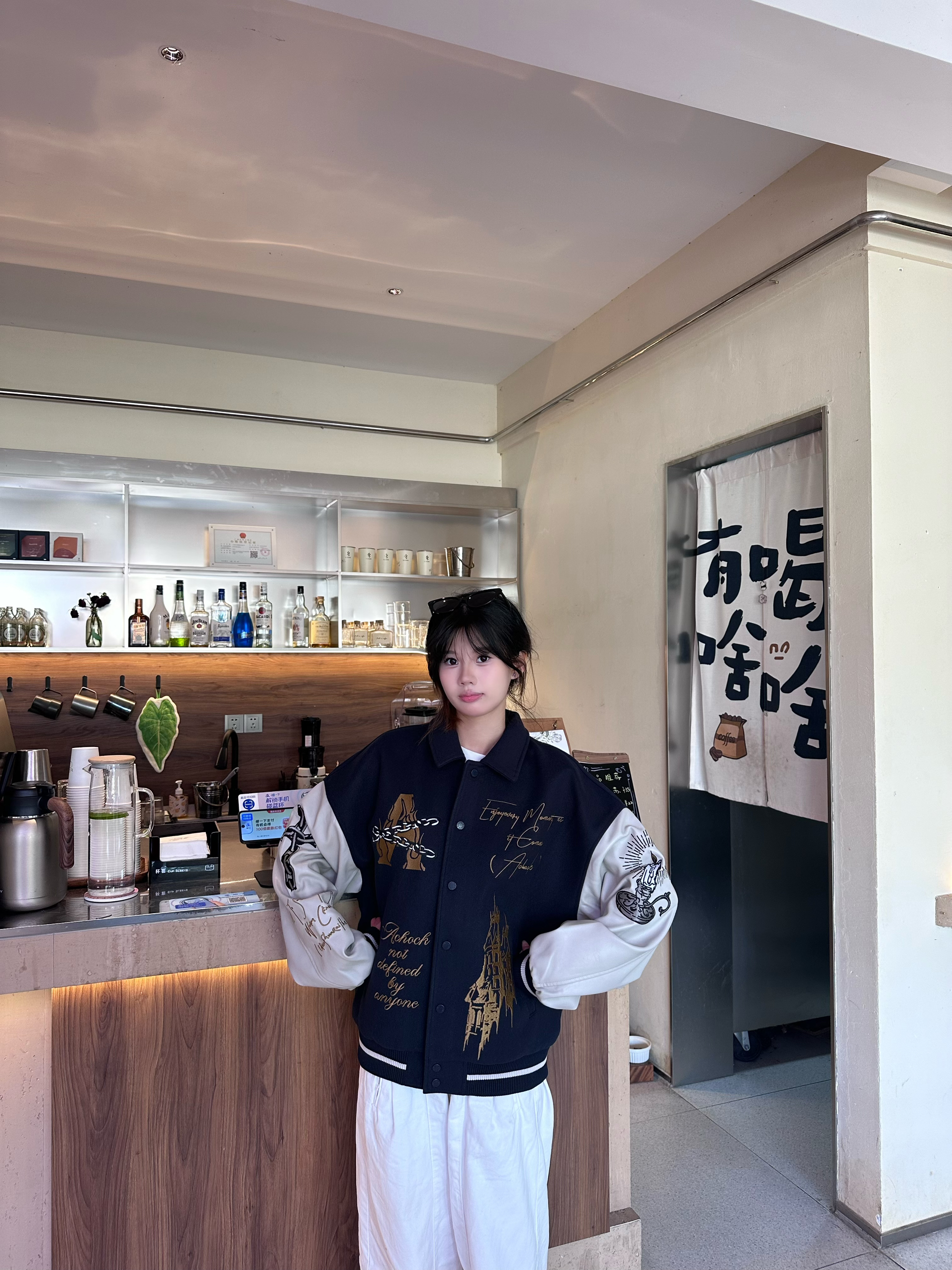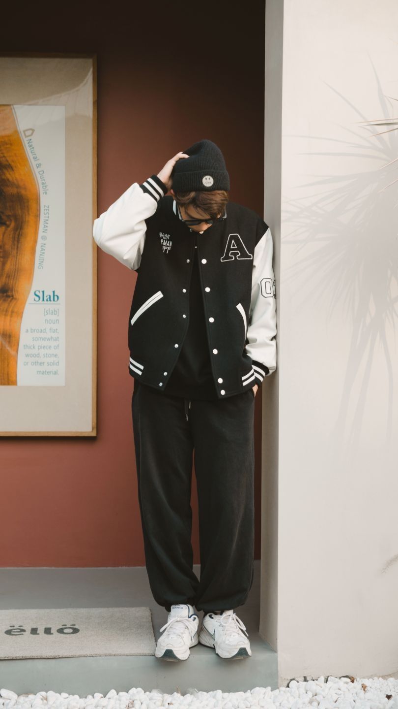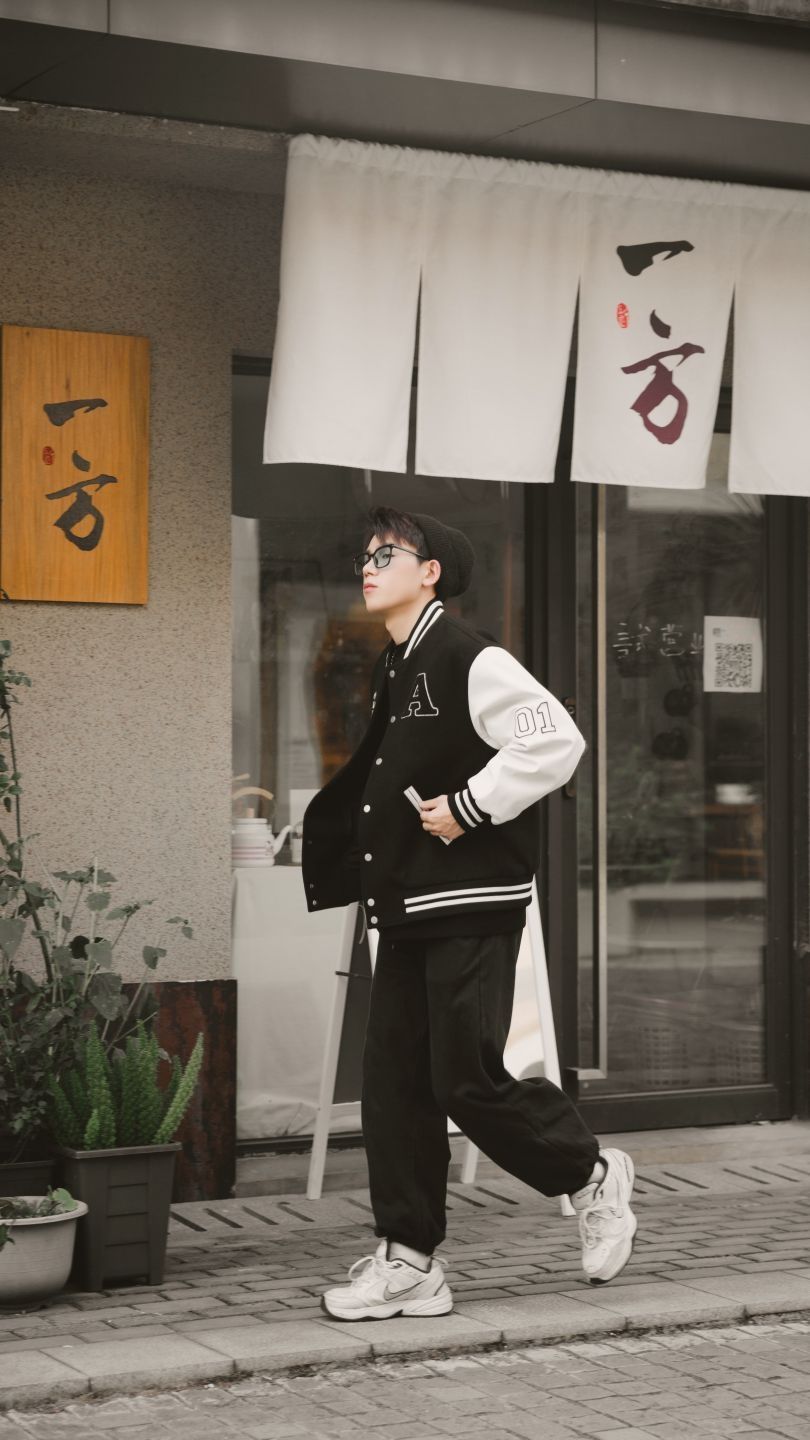 👕:PEACEBIRD 太平鸟刺绣印花拼接棒球服,主要采用羊毛和涤纶面料,保暖又舒适,而且质感十足,袖子是颗粒感的PU皮,整体是黑白两色,但是通过不同部位的刺绣印花还有材质区别,打造了丰富的层次感,衣服上的刺绣主要使用了小丑joker和扑克牌两种元素。 👟:Nike Air Monarch 4 鞋款是比较复古的老爹鞋,脚感很舒服,有一定的缓震功能但是包裹性不是特别强,比较适合日常休闲穿,整体是蓝白...