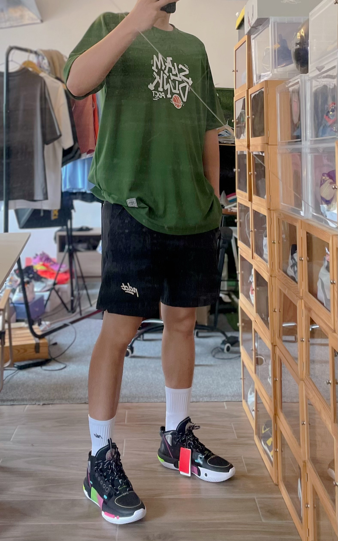 👔 上衣:纯白长T 👖 下装:PDCT 大logo网眼运动短裤 👟 鞋子:Air Jordan 1 低帮 黑白灰 今天这身搭配真的是元气满满 短裤既是网眼穿着起来舒适透气 搭上一件长袖T恤和aj1的黑白灰 今天很完美!
