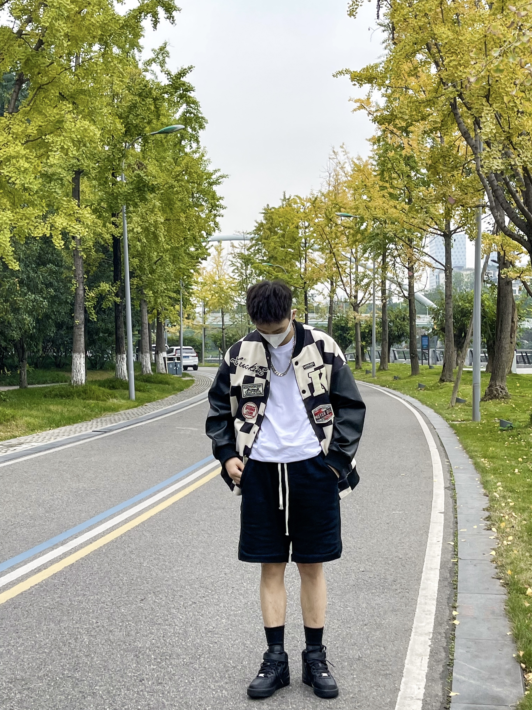 - 好久没有买新鞋了,虽然的衣服很多,但是鞋子还是比较少,今天就分享下我新入的宝藏鞋款,经典空军一号,作为一个美式街潮爱好者,真的很喜欢空军一号,因为之前就有白色低帮的,这次就买的黑色中帮,真的很百搭耐看,搭配黑色短裤和棋盘格复古外套,一秒就潮了起来! - 衣服LUCKIET - 鞋子Nike Air Foce 1 Mid(CW2289)