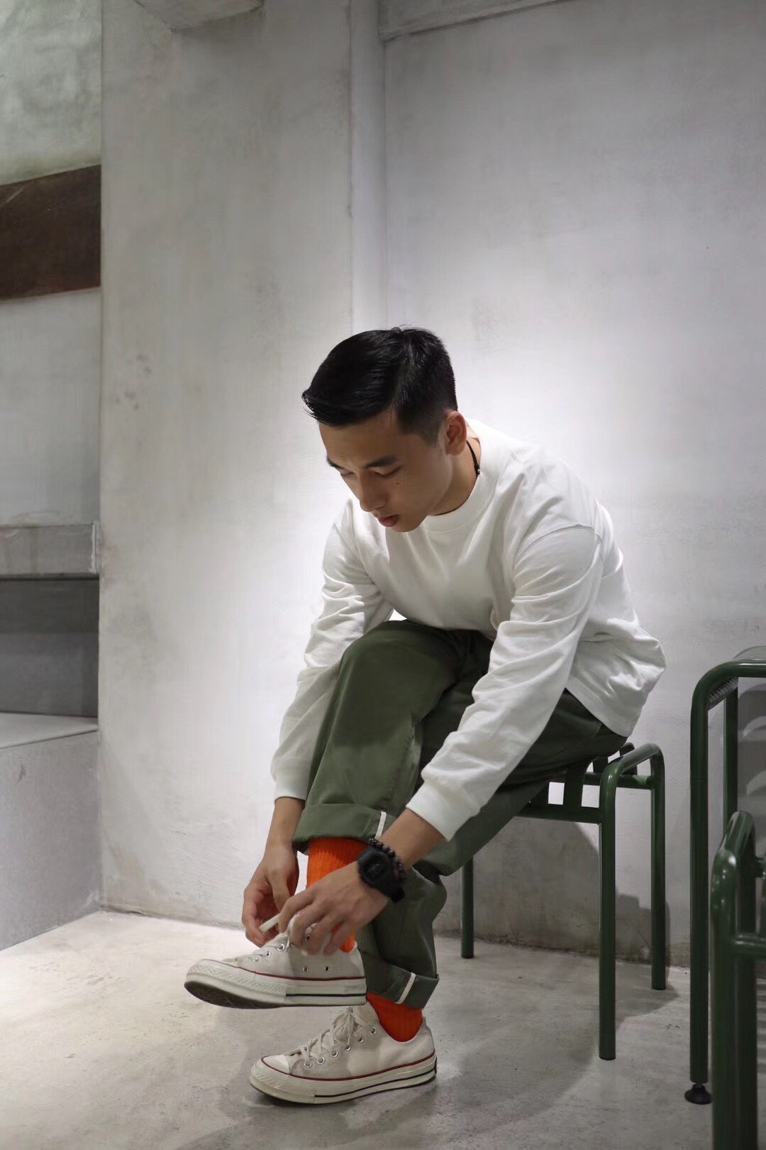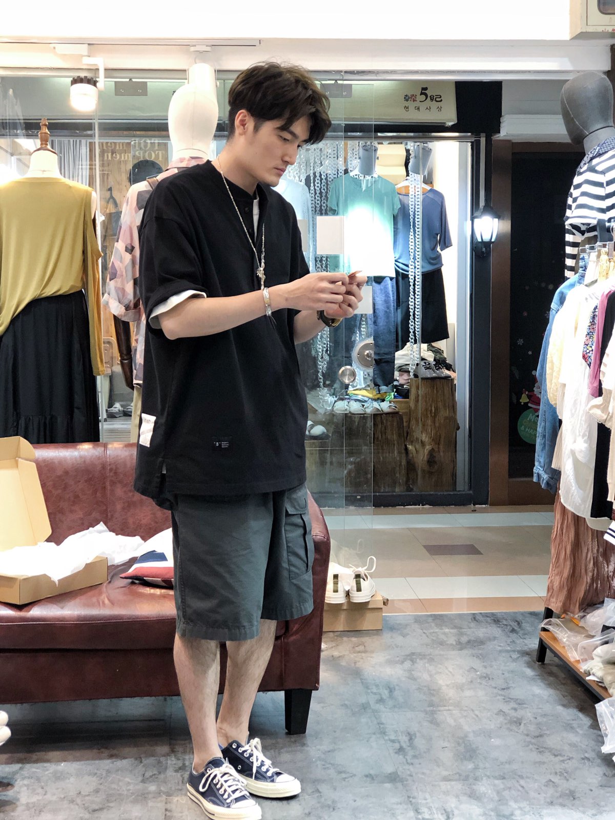 分享今天搭配 上衣是QM 亨利领T 短裤是QM 水杯短裤 鞋子1970s 藏蓝色低帮