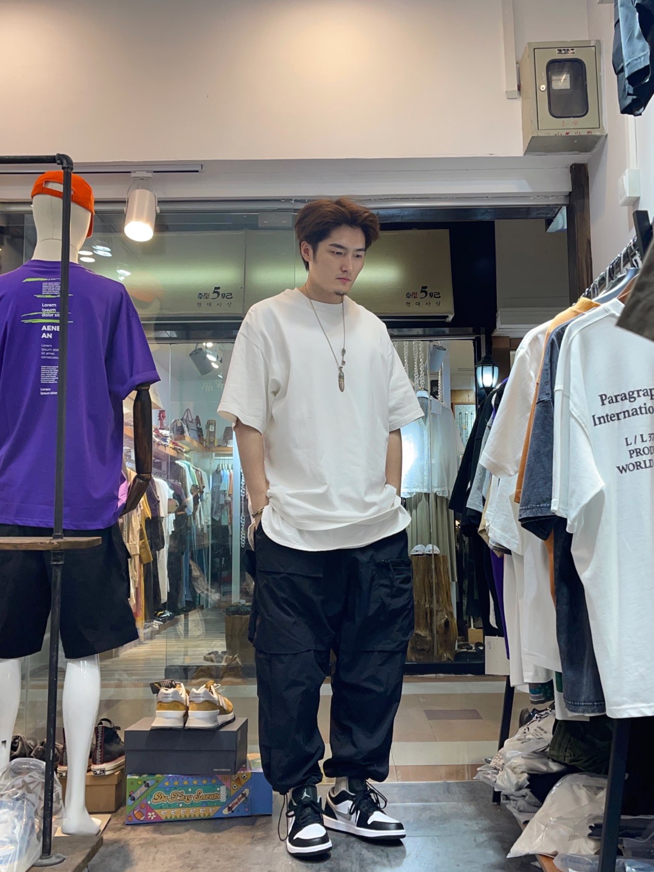 见到一个人的衣服就能感受到他的心灵和气质 今天是一件重磅T恤 搭配一条水洗拼接军裤