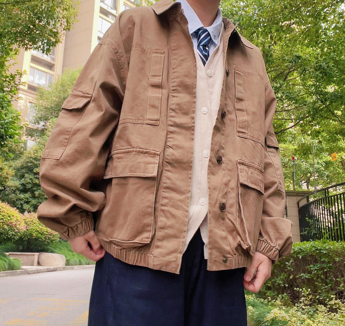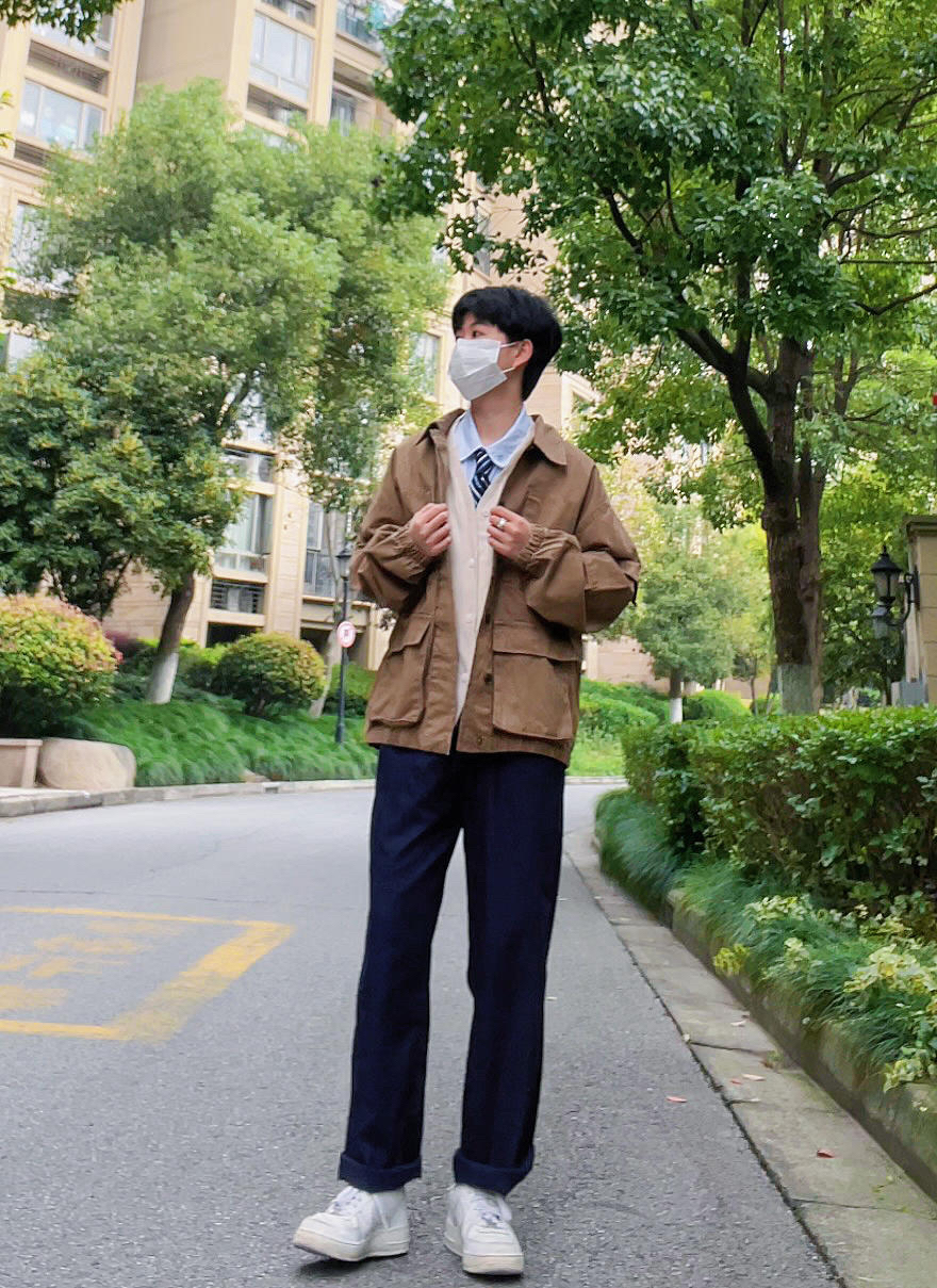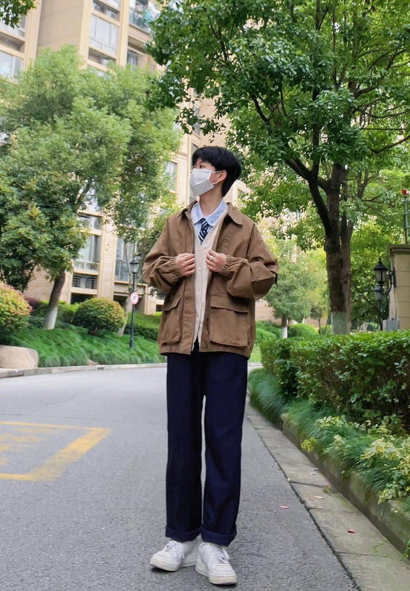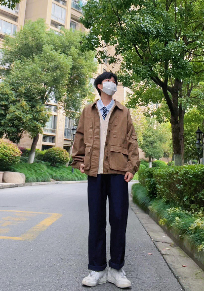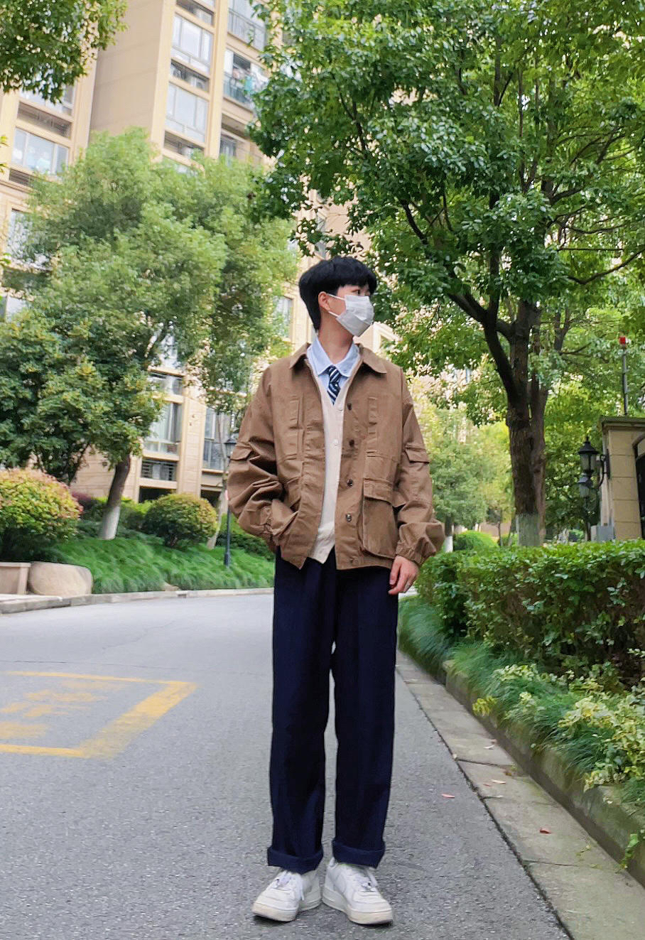 ✨今日穿搭 卡其色工装外套 绀色西裤 白色针织开衫 白衬衫 蓝色条纹领带 小白鞋 ——————————————————— ✨卡其色的工装风穿外套搭配衬衫领带会很有轻熟风 搭配卫衣或者是毛衣也会很有休闲感 很百搭的一件单品 ——————————————————— ✨每日穿搭|简单干净的男友风穿搭|卡其色工装外套穿搭|绀色西装裤穿搭|白色针织衫穿搭|衬衫秋季叠穿|
