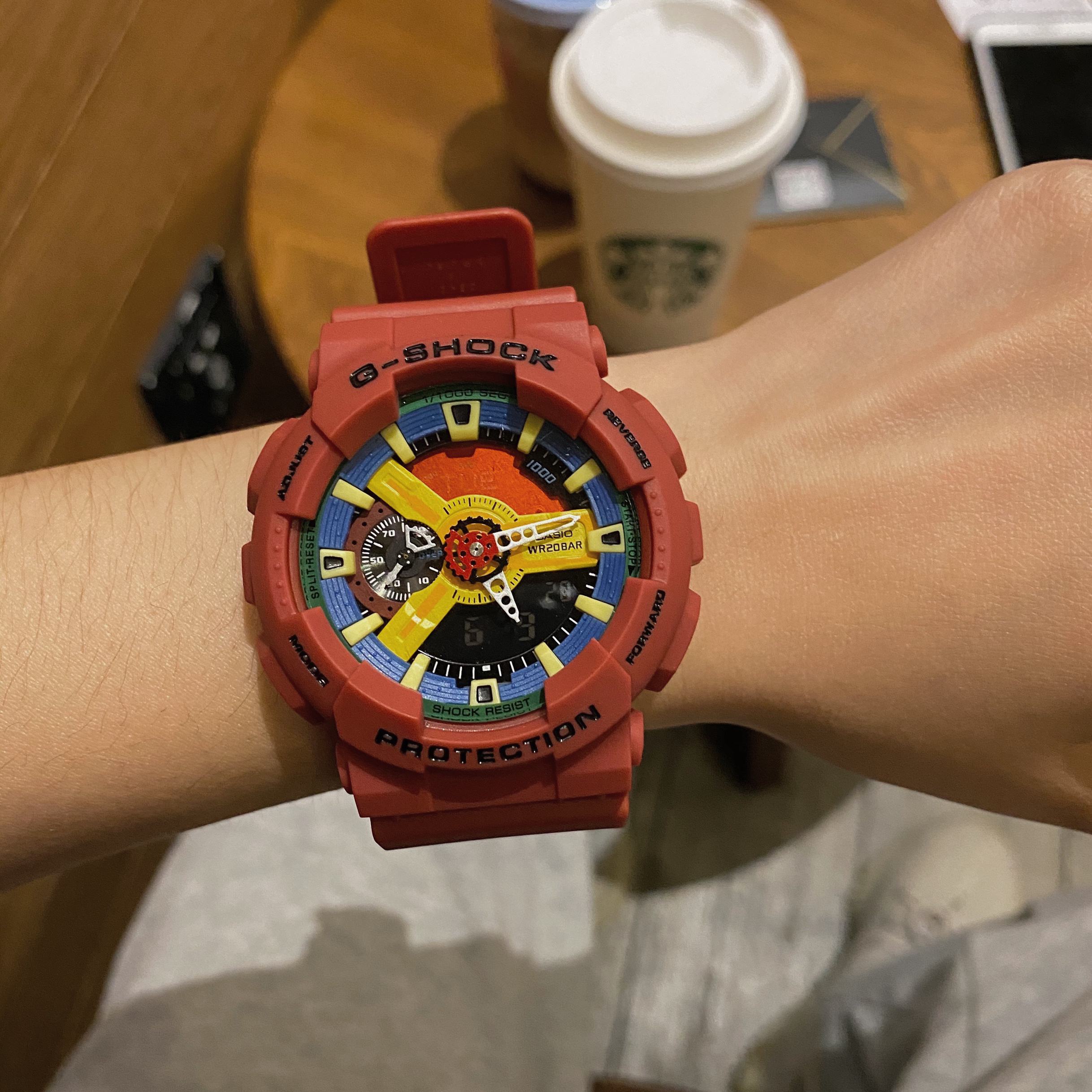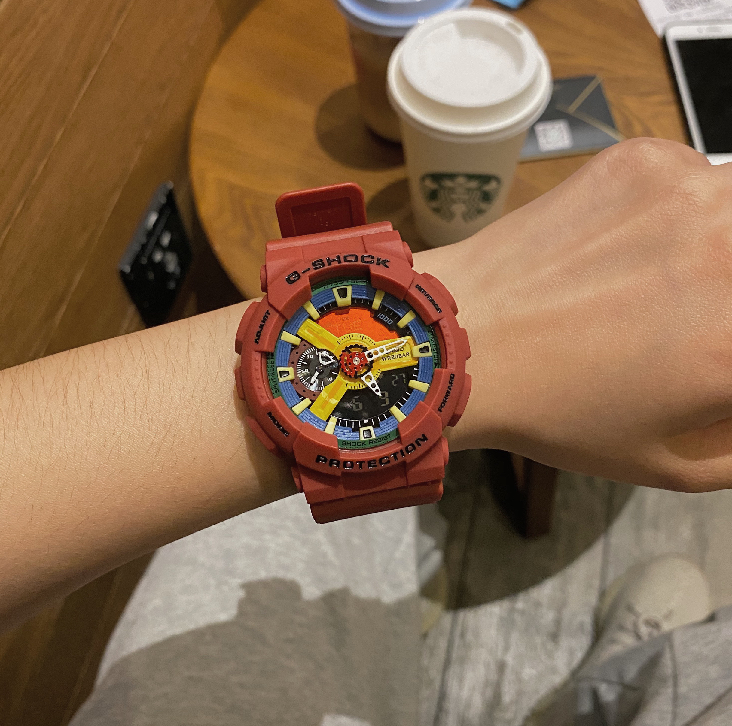 本篇笔记关联了Casio/卡西欧 G-SHOCK 树脂表带大表盘运动指针双显防水防磁防震电子石英男士手表 番茄炒蛋 GA-110FC-1A等商品,为用户提供真实的使用体验和购买参考。